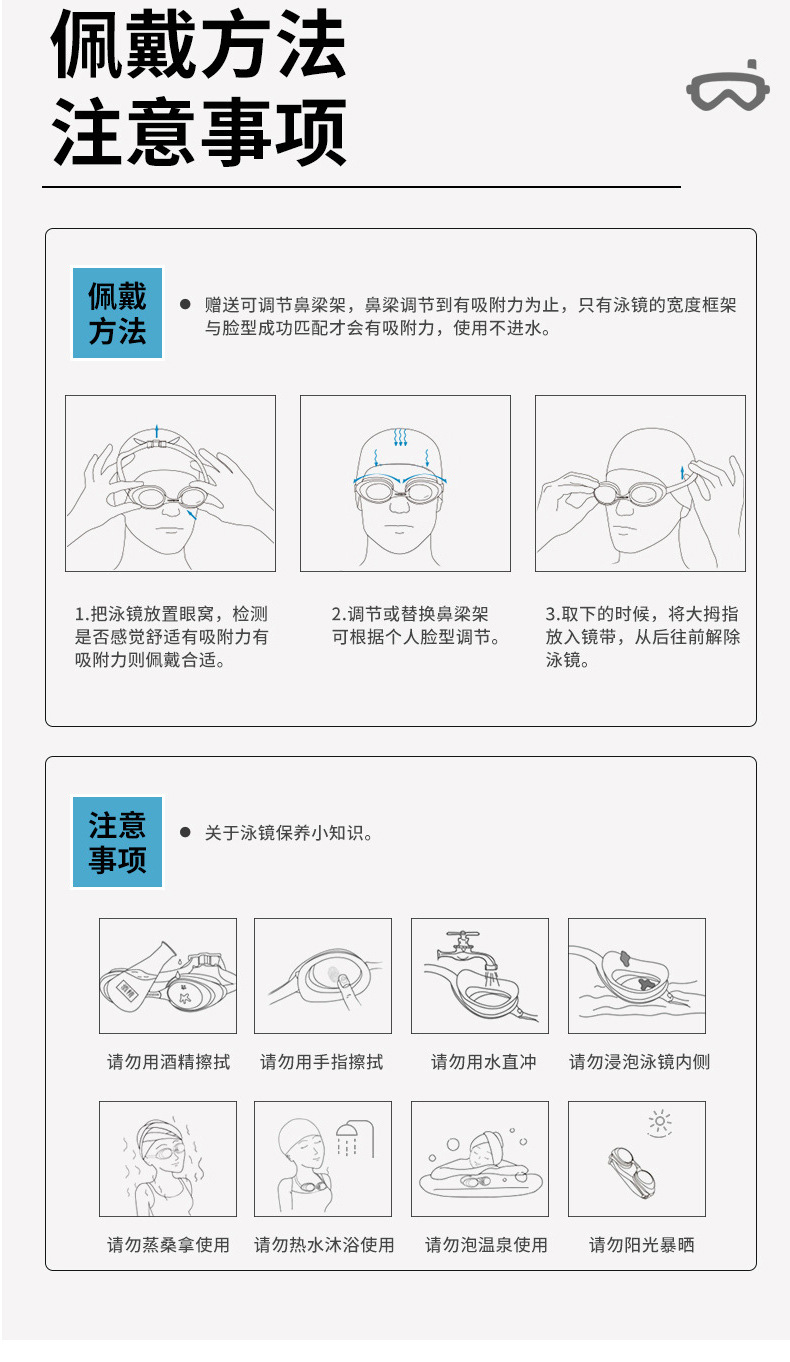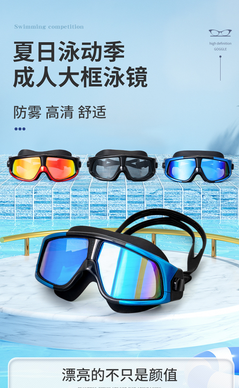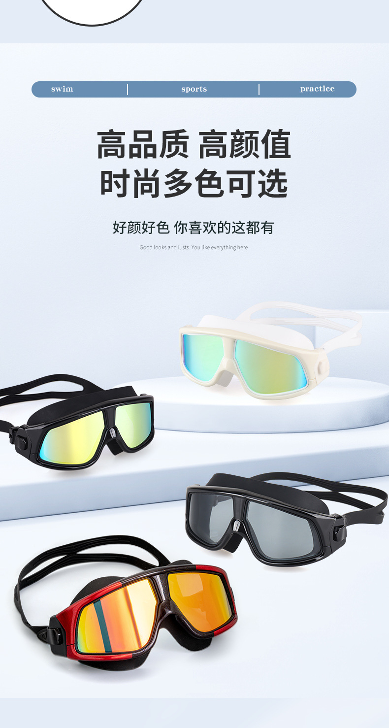 产品介绍:镜面防雾电镀,PC镜片防紫外线,镜面超强化耐磨处理,硅胶镜圈、镜带,柔软无毒无味,超广角镜面设