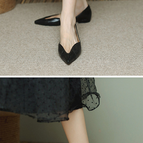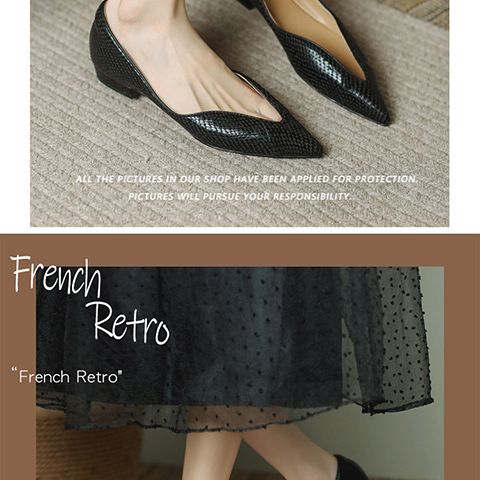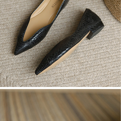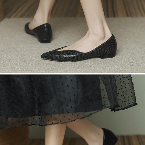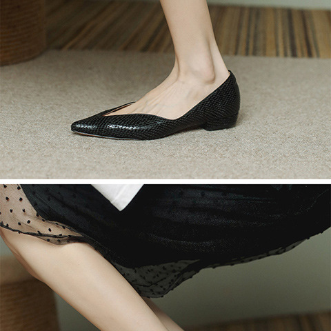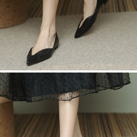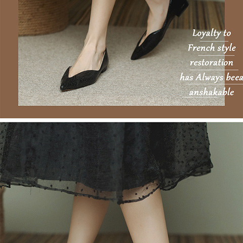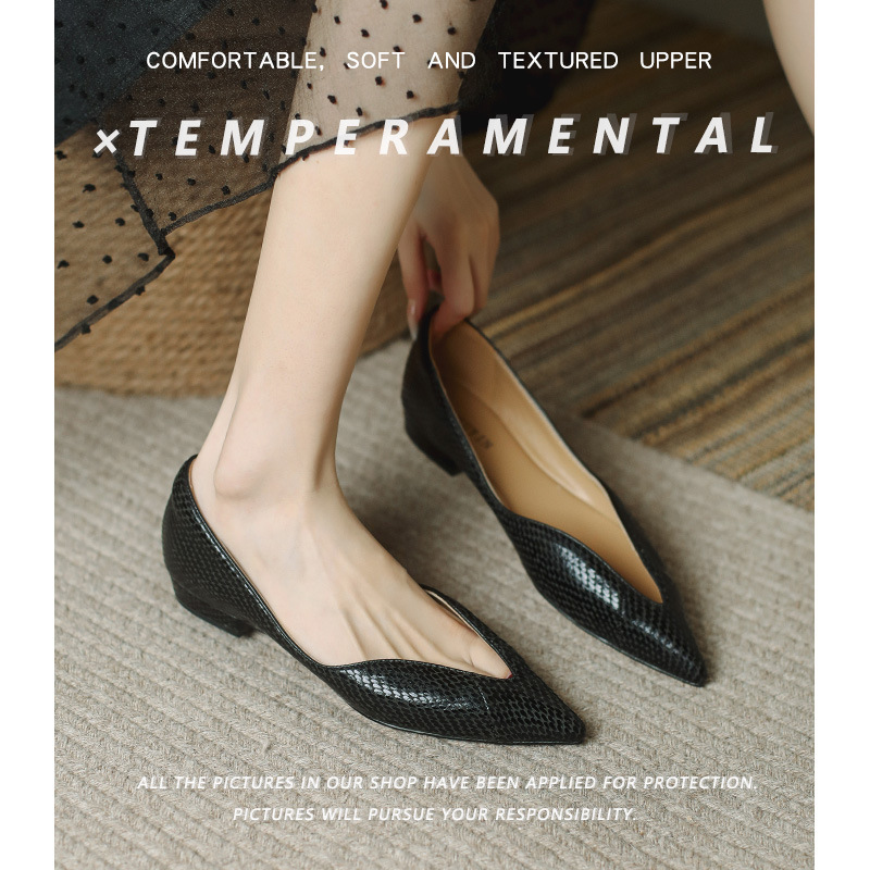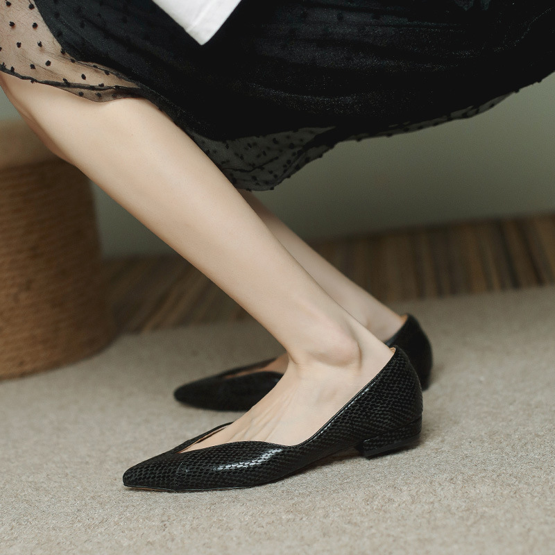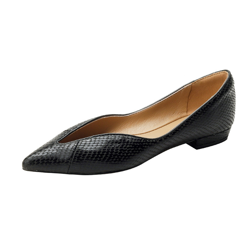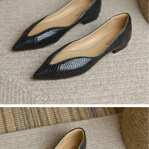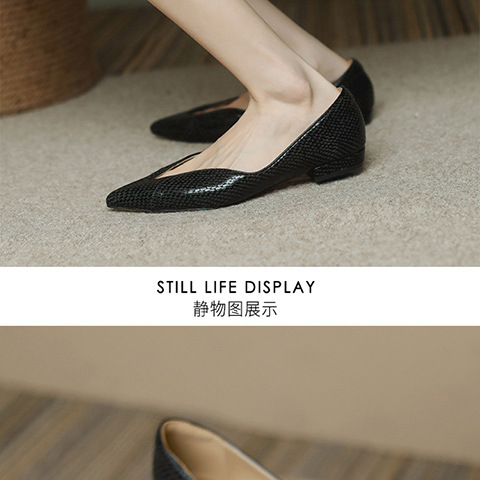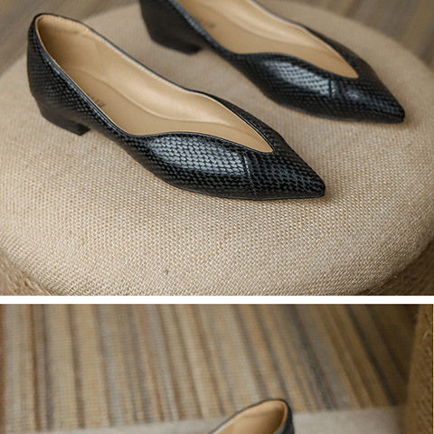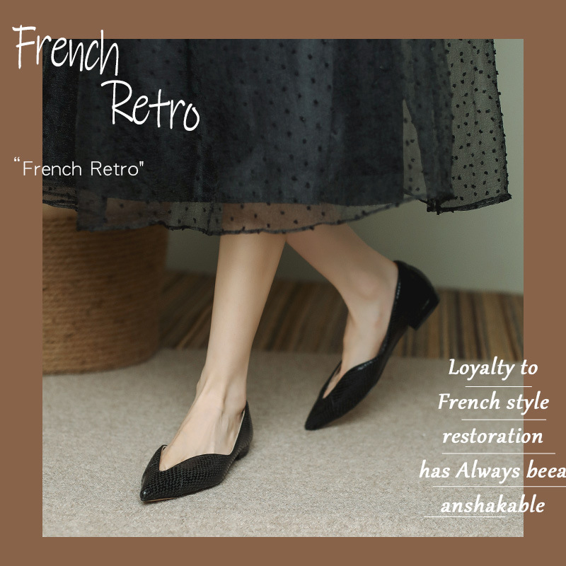 틈새 프랑스 V 얕은 입 뾰족한 발가락 플랫 슈즈 2023 봄과 가을 새 여성 신발 여성용 양가죽 부드러운 바닥 플랫 힐 싱글 레이어 슈즈
