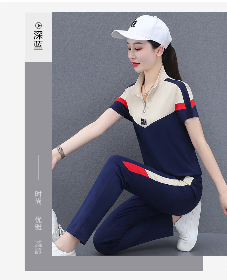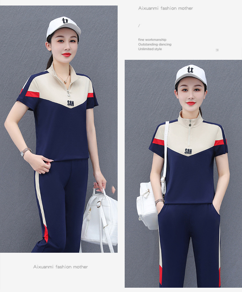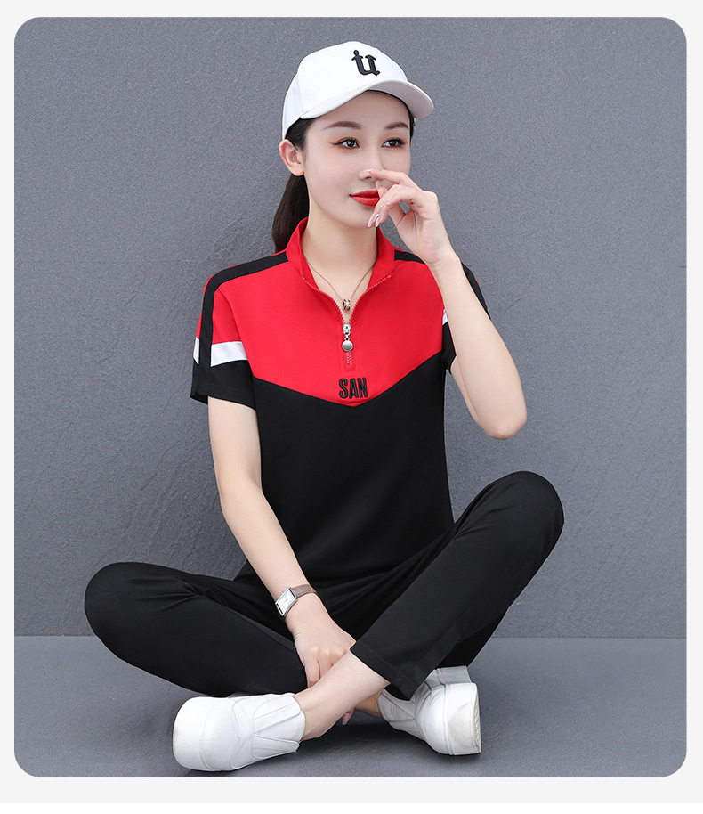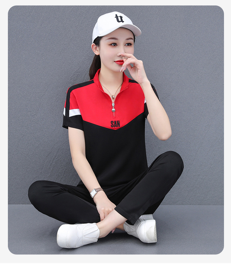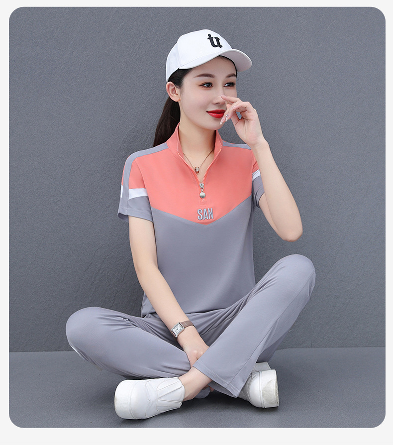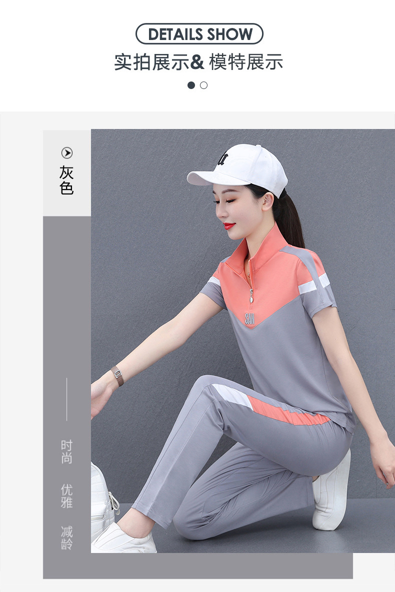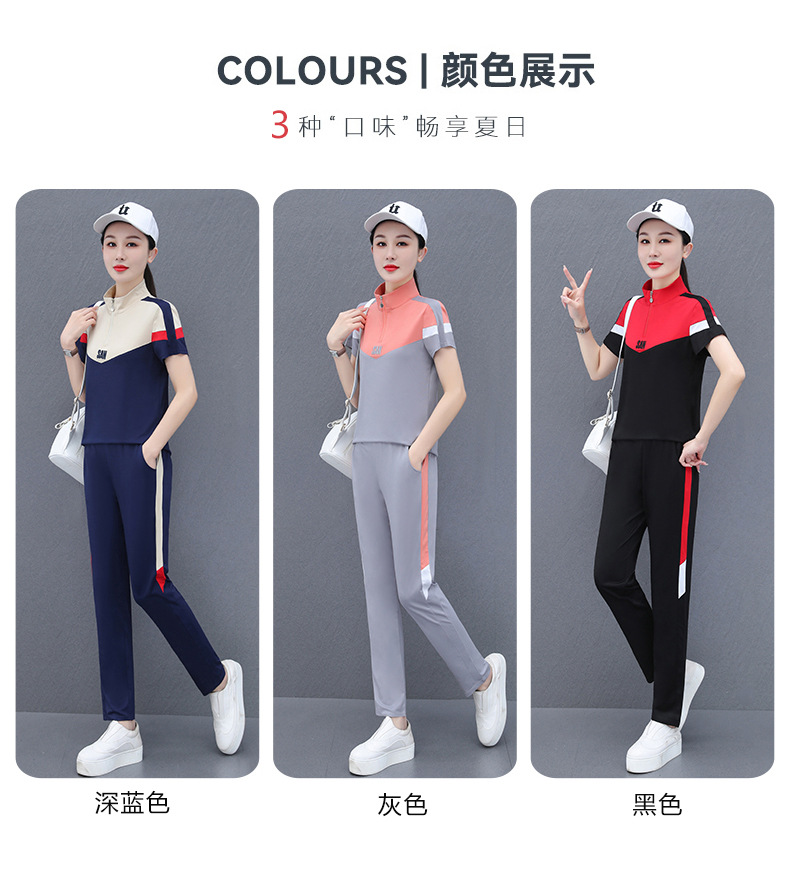 운동복 세트 여자의 여름 2023 새로운 얇은 유행 느슨한 짧은 소매 실행 캐주얼 얇은 우아한 두 조각