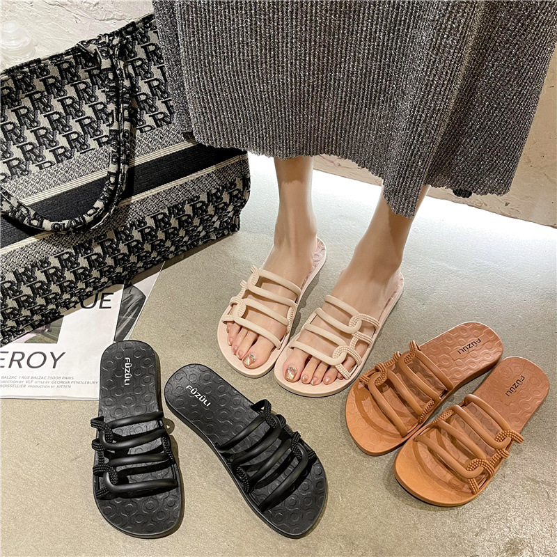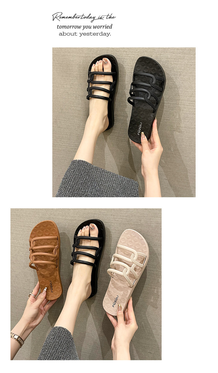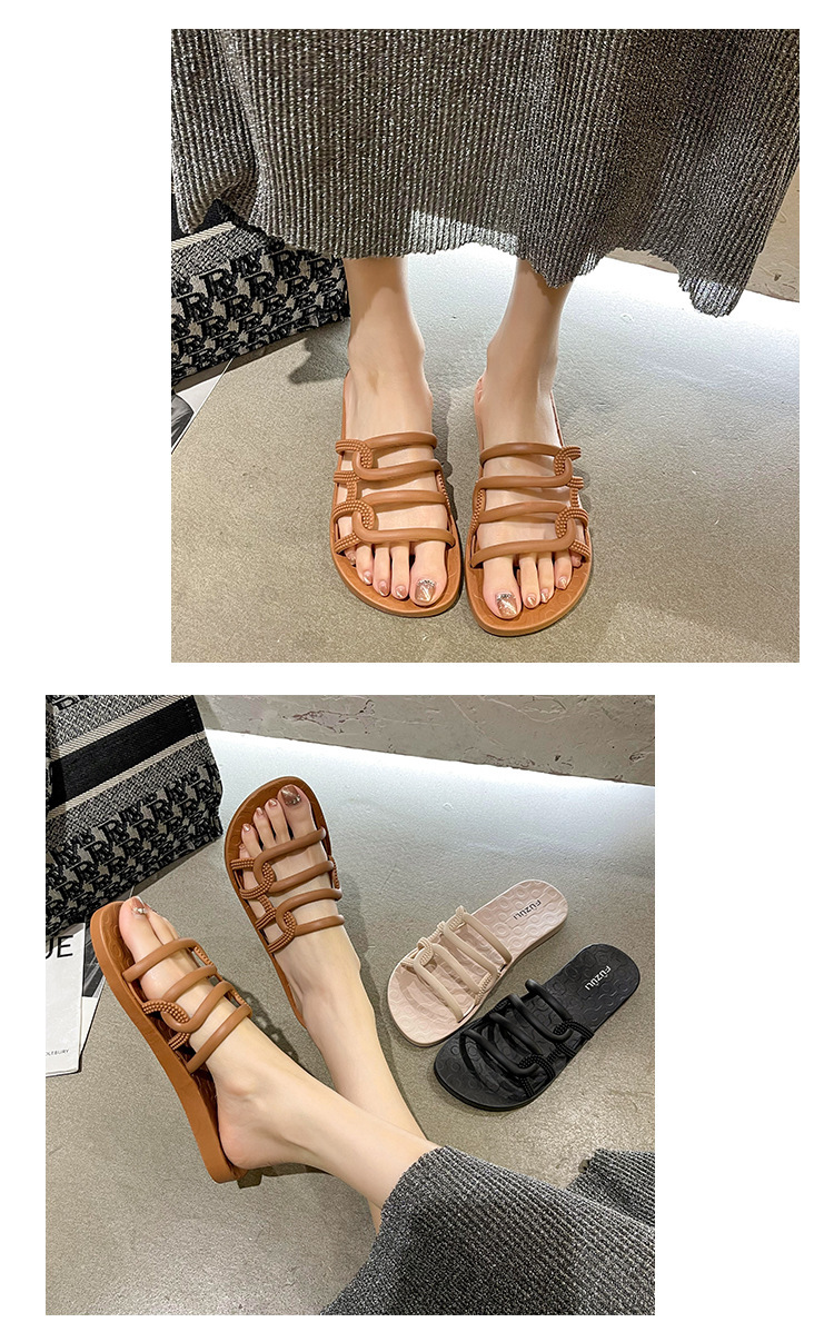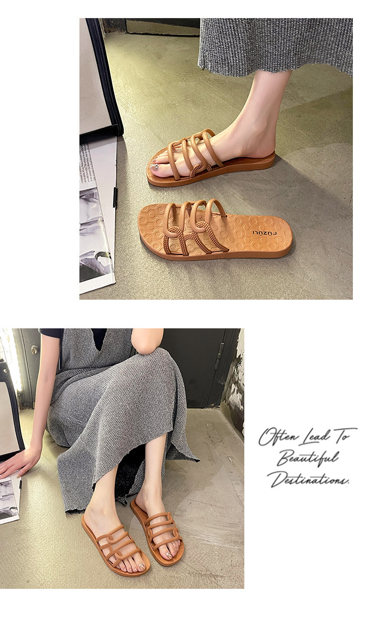 한국식 중공 슬리퍼 여성용 겉옷 페어리 스타일 홈 심플 플랫 슬리퍼 캐주얼 오픈 토 샌들