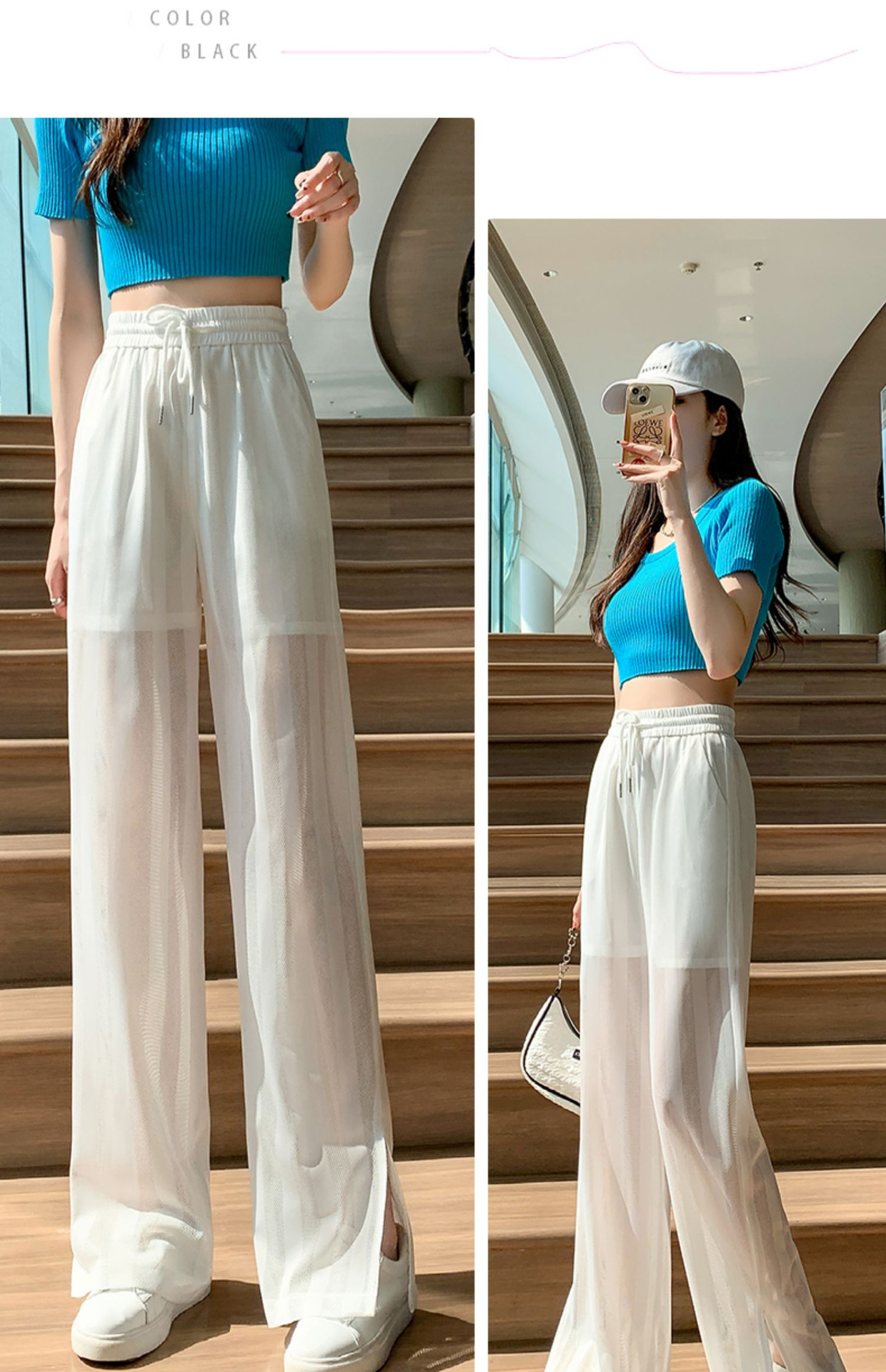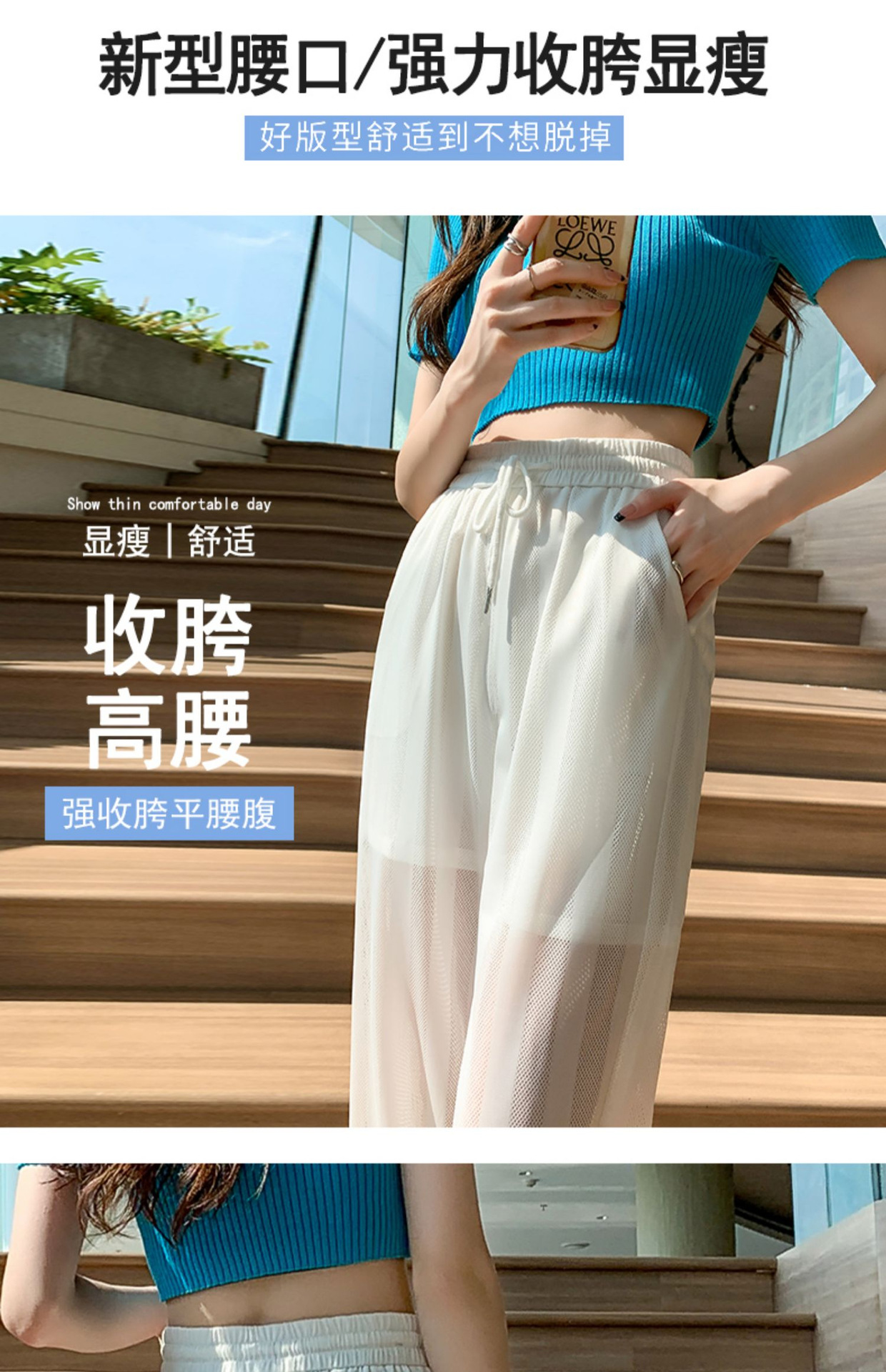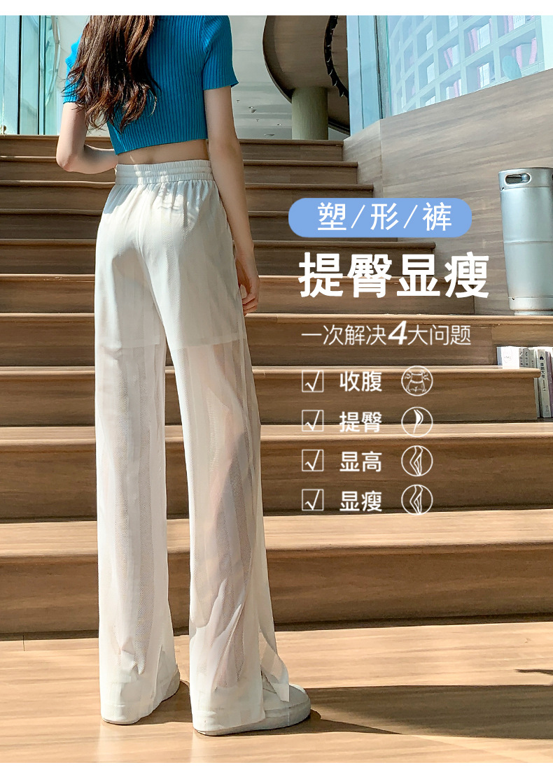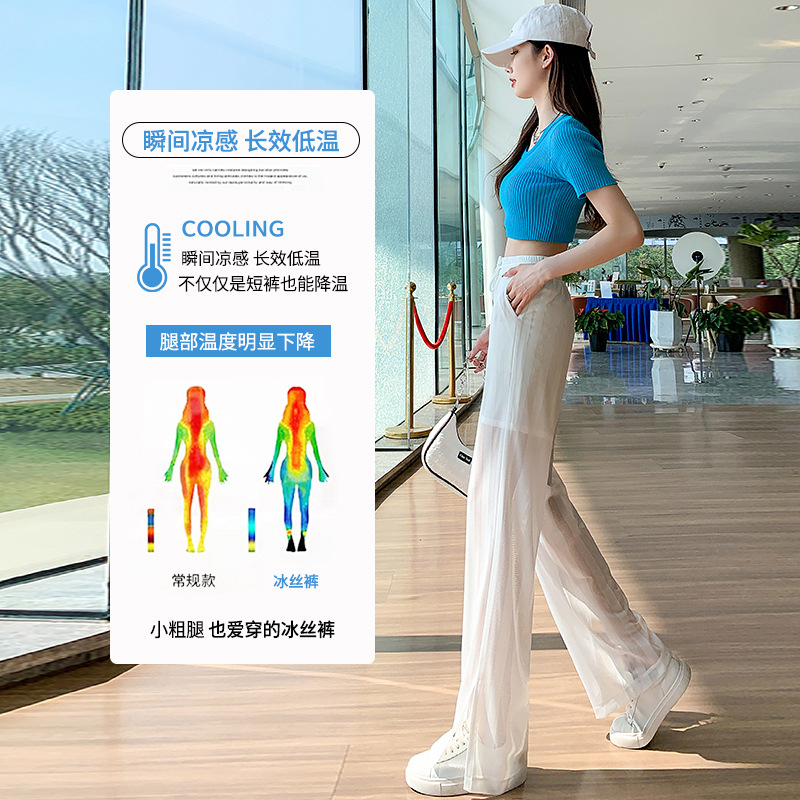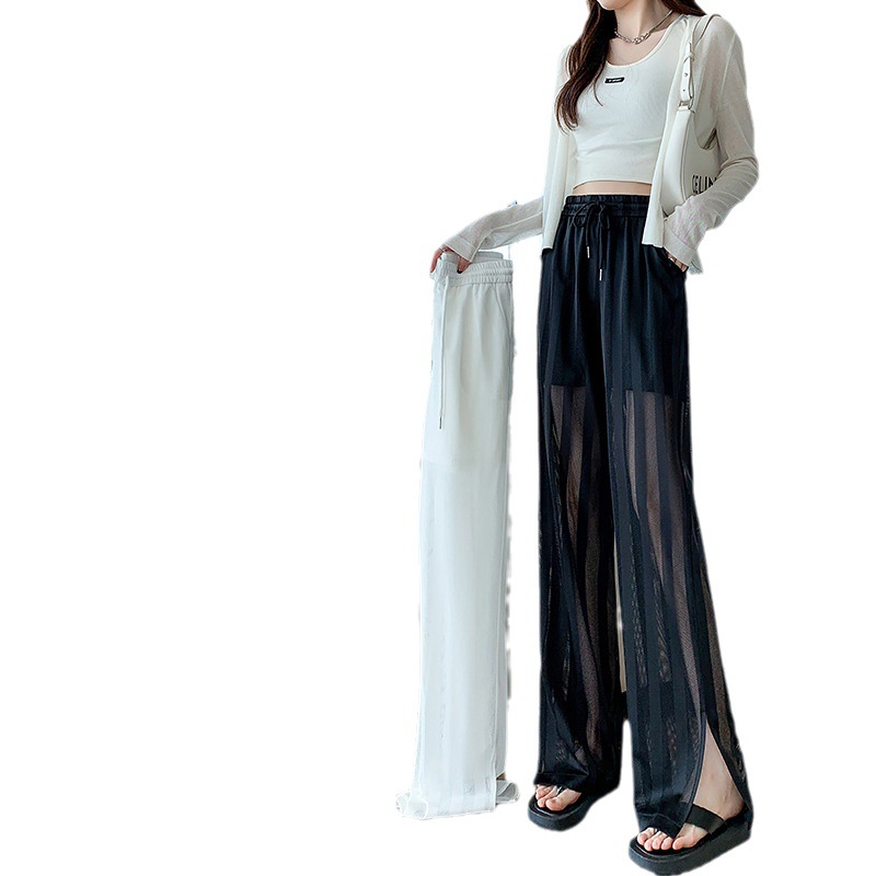 화이트 와이드 레그 팬츠 여성용 여름 초박형 느슨한 에어컨 바지 슬리밍 모기 방지 캐주얼 바지 아이스 실크 메쉬 스트레이트 팬츠