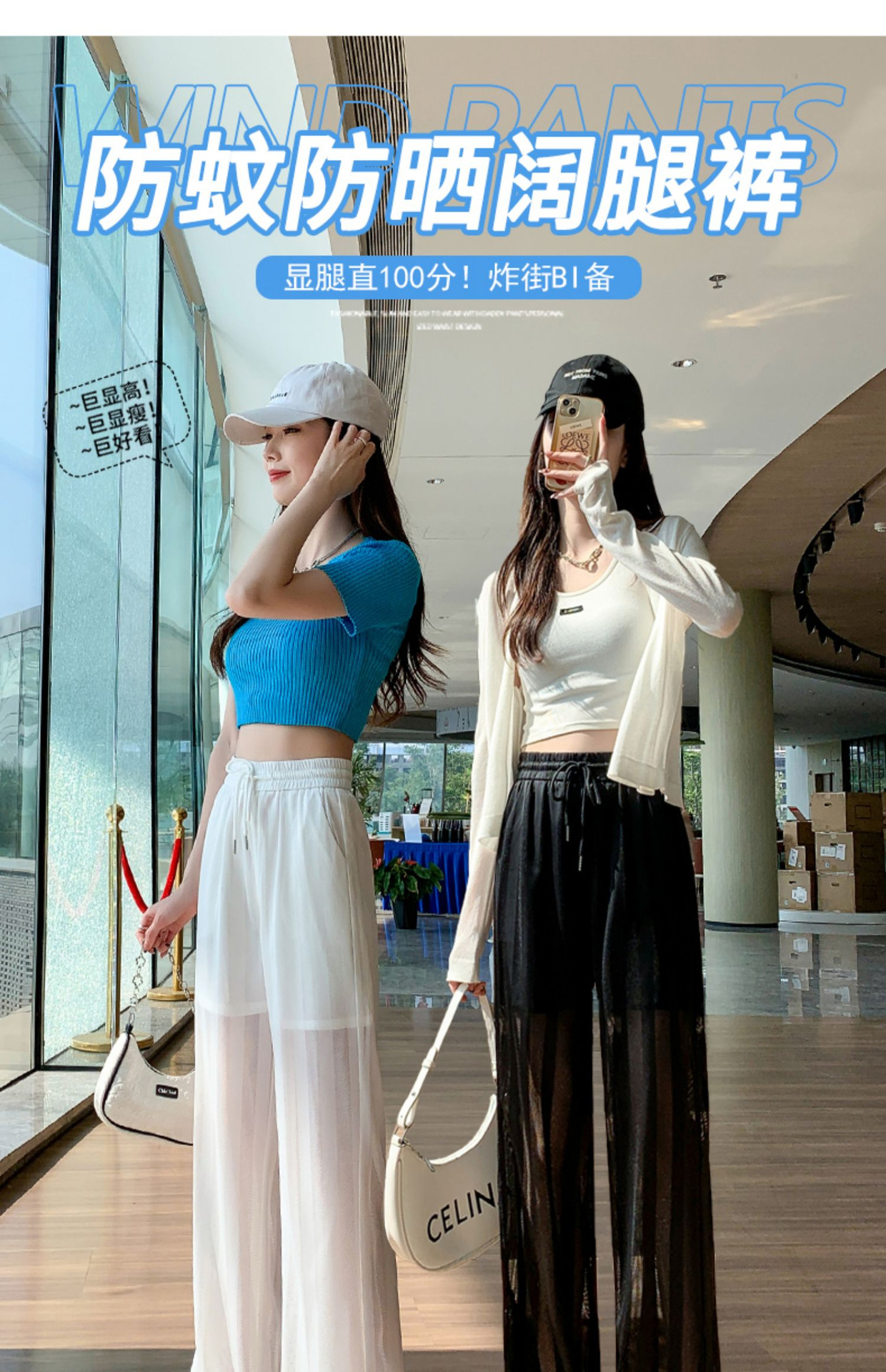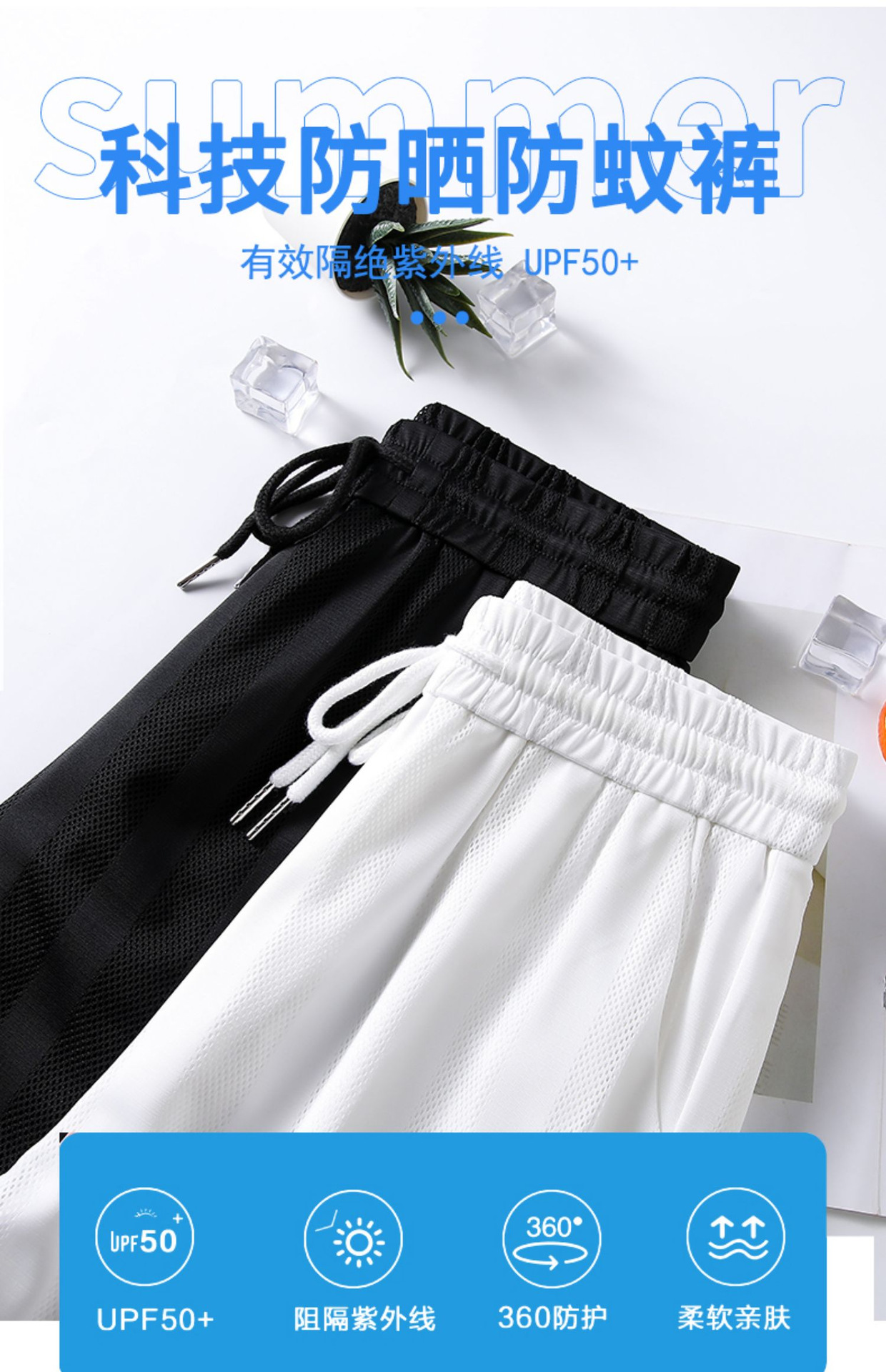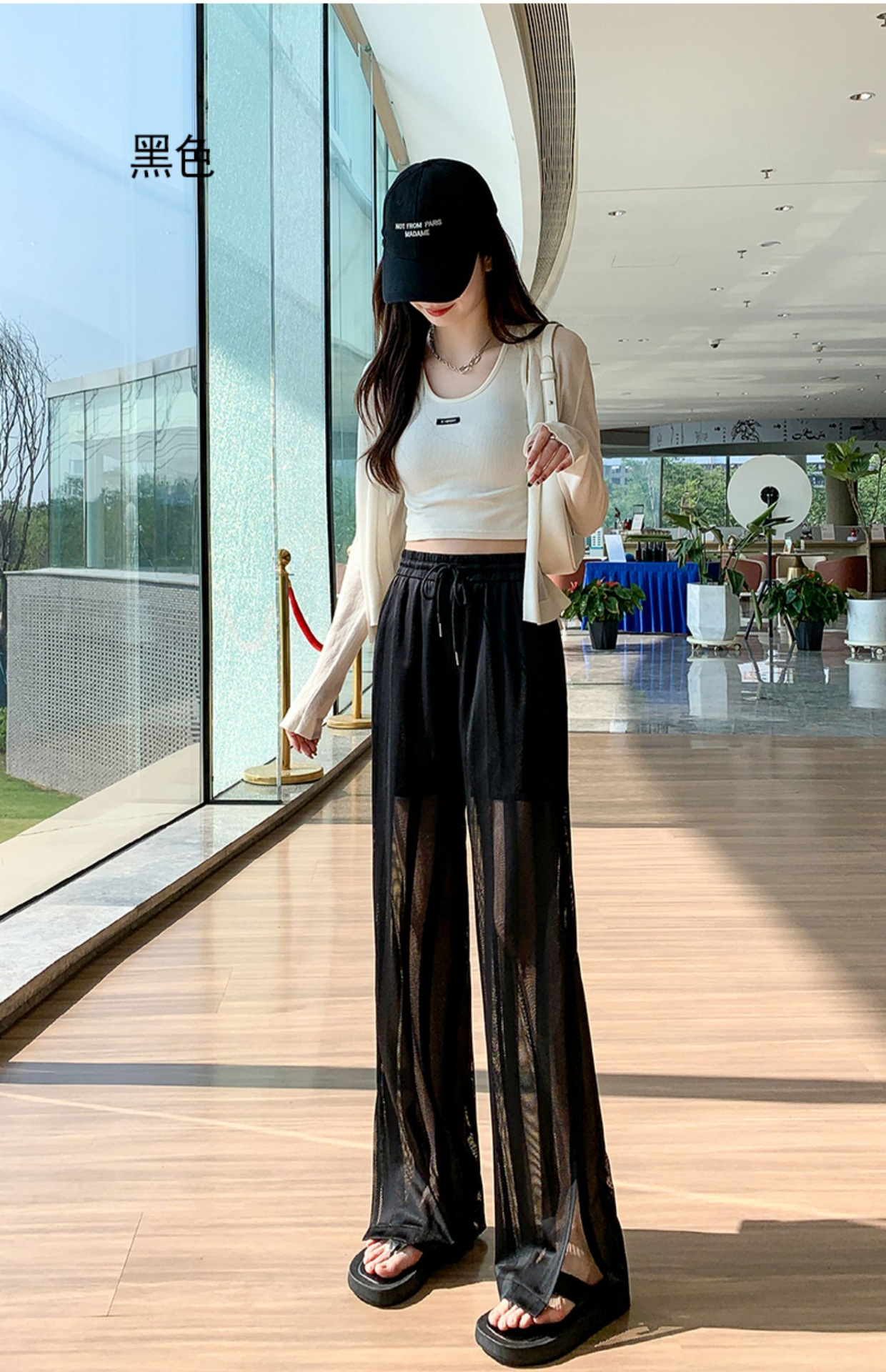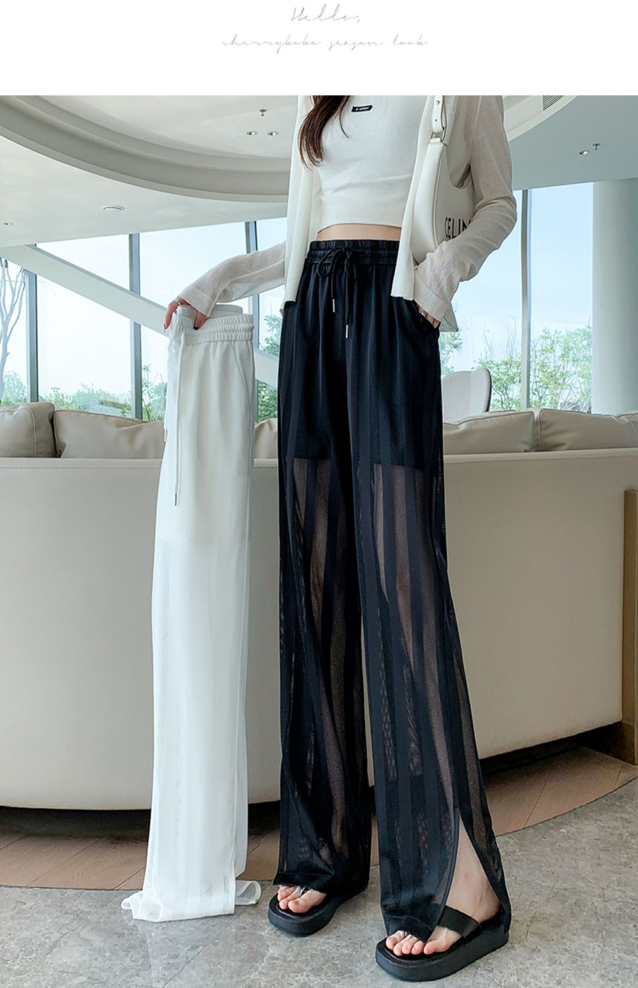 화이트 와이드 레그 팬츠 여성용 여름 초박형 느슨한 에어컨 바지 슬리밍 모기 방지 캐주얼 바지 아이스 실크 메쉬 스트레이트 팬츠
