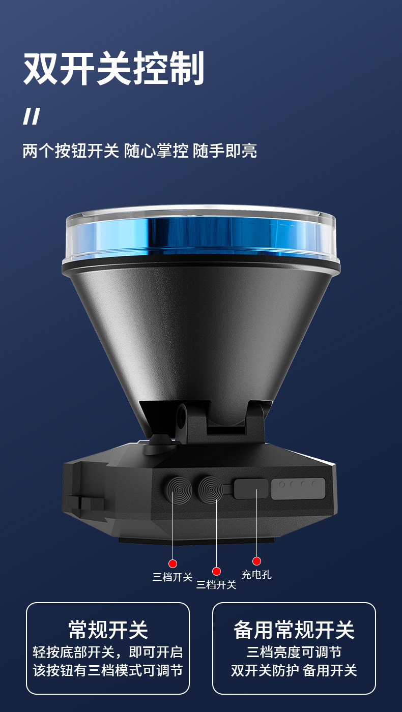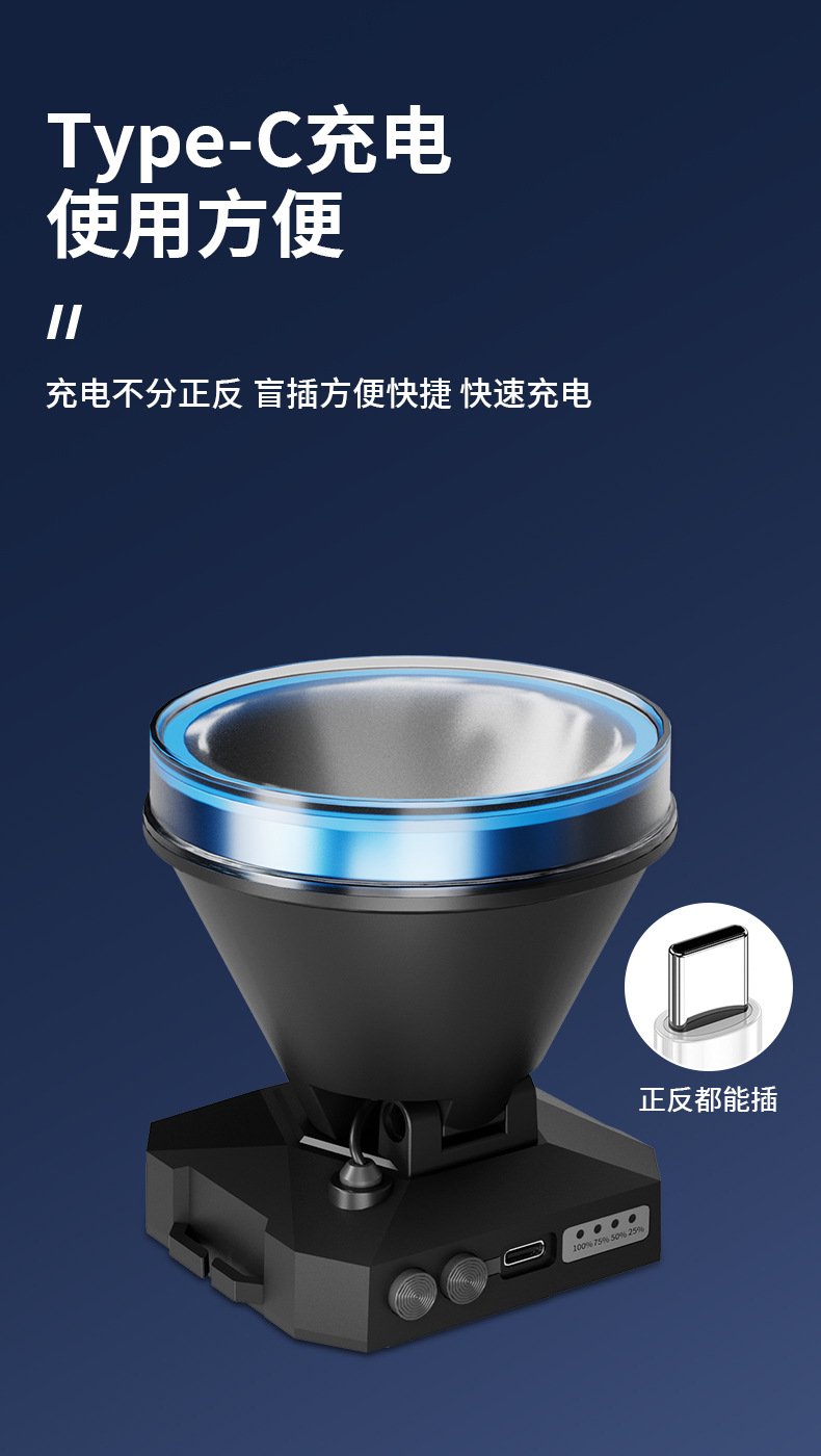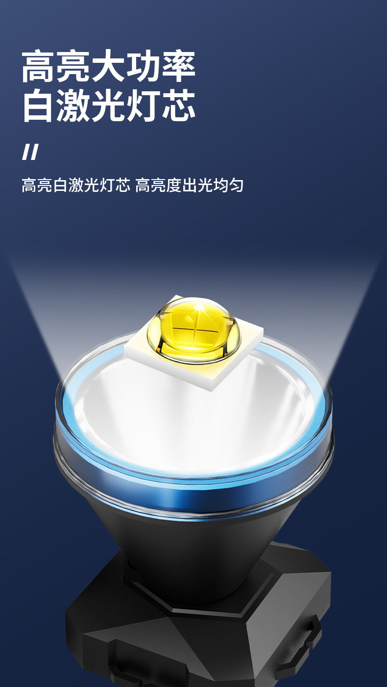 고출력 리튬 이온 헤드라이트 USB 충전식 초고휘도 장시간 사용 가능 야외 야간 낚시등 산업용 및 광산용 헤드형 손전등