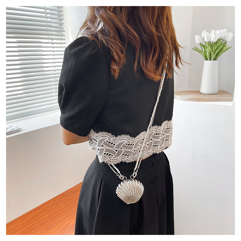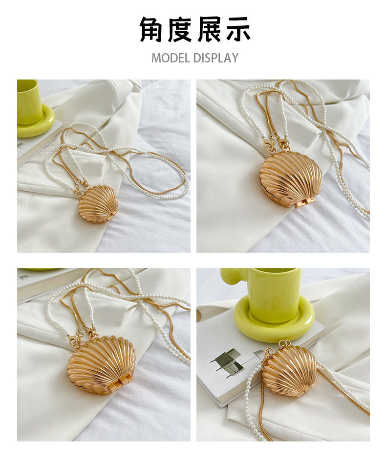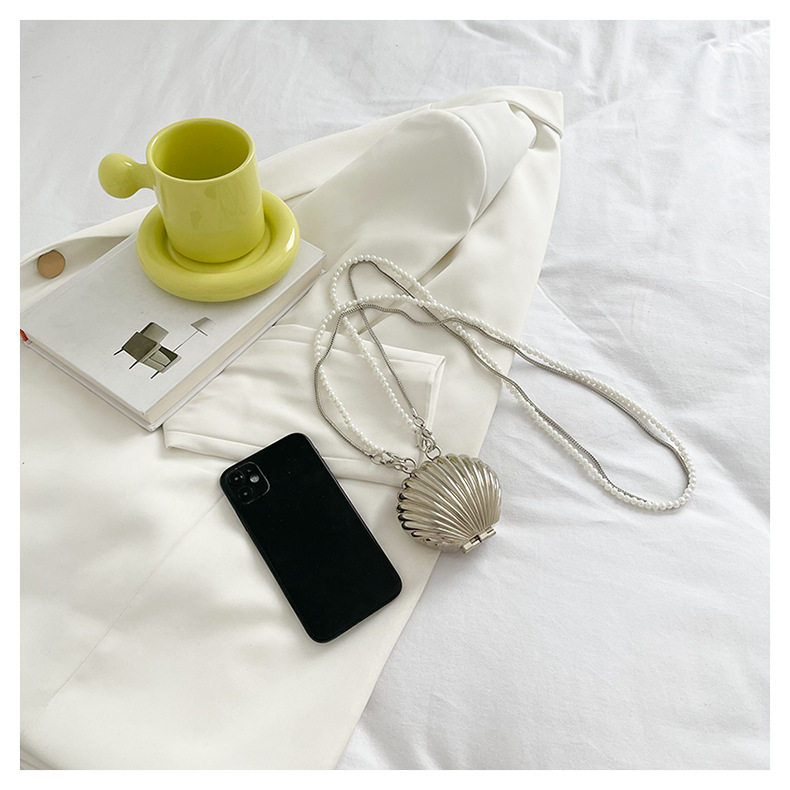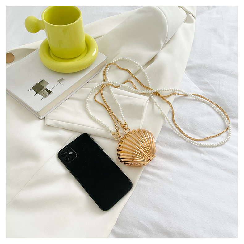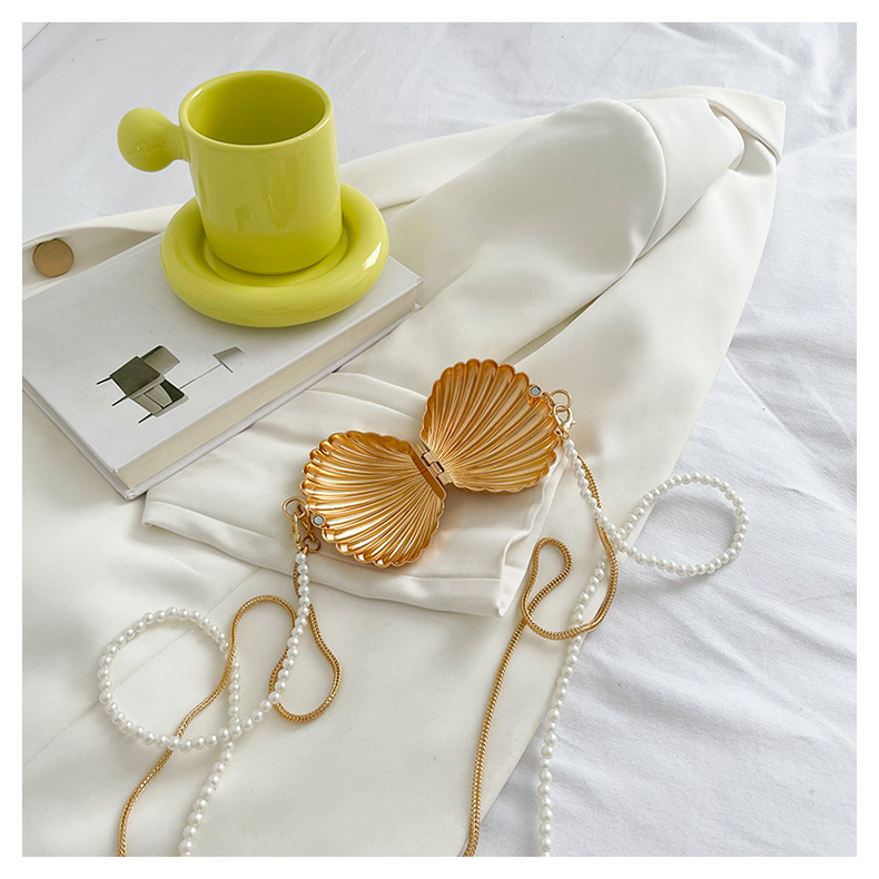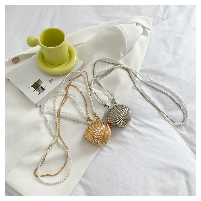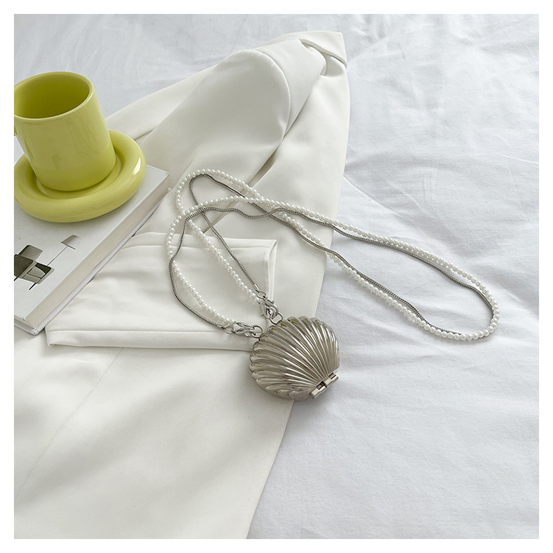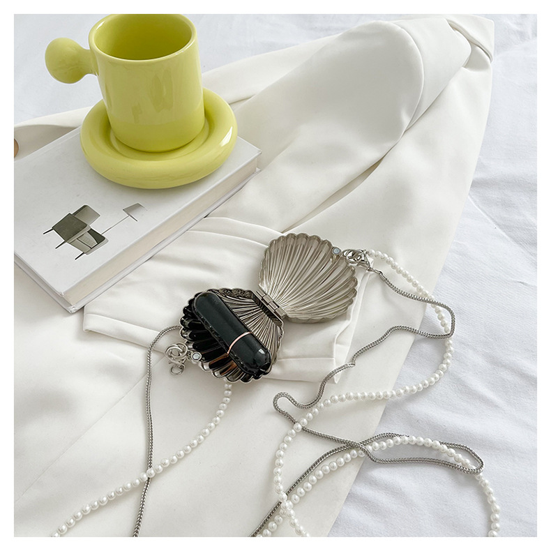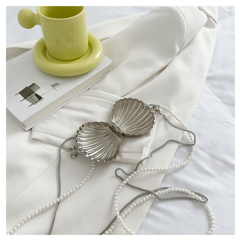쉘 모양의 작은 가방 여성용 이브닝 백 2026 신상 진주 체인 패션 핸드백 숄더백 한국 스타일 메탈 크로스백