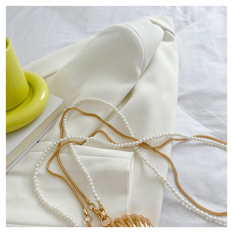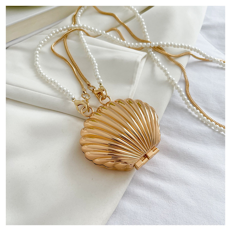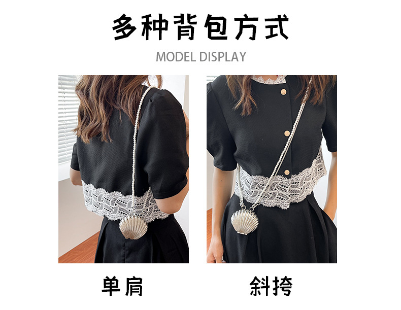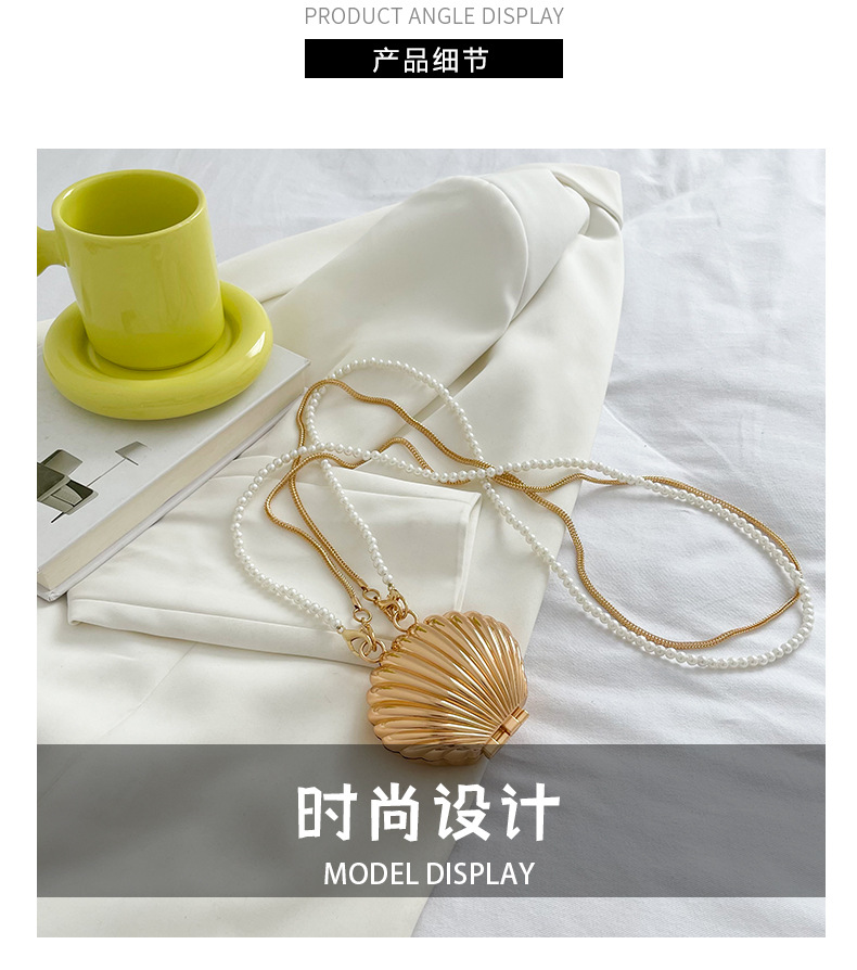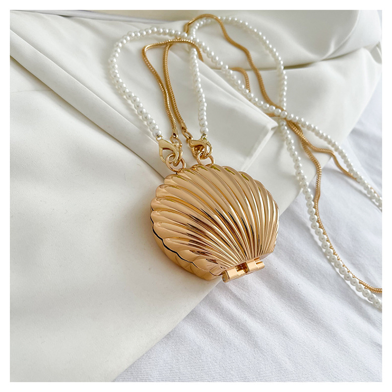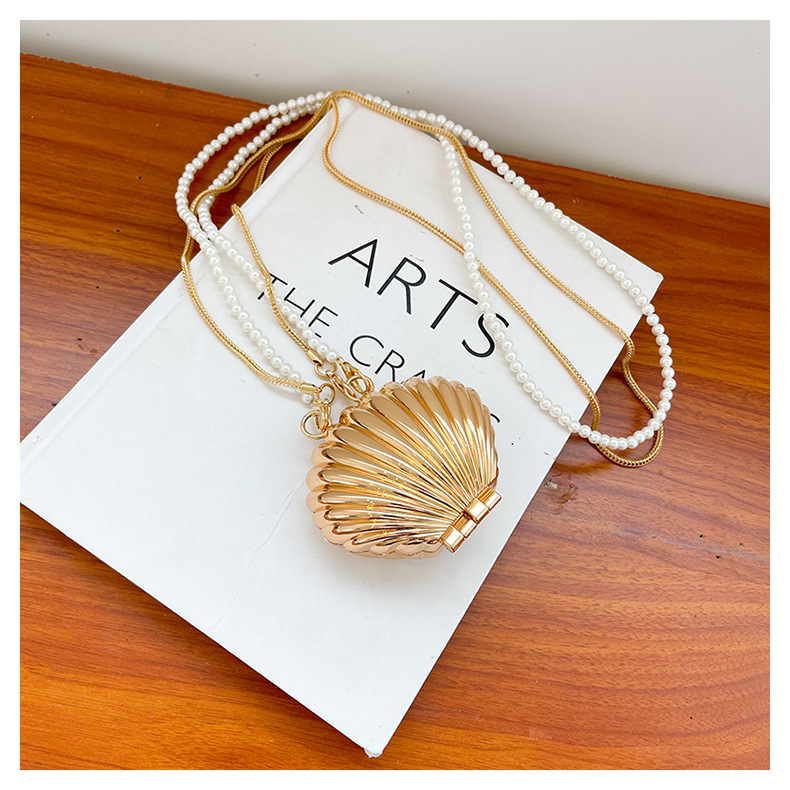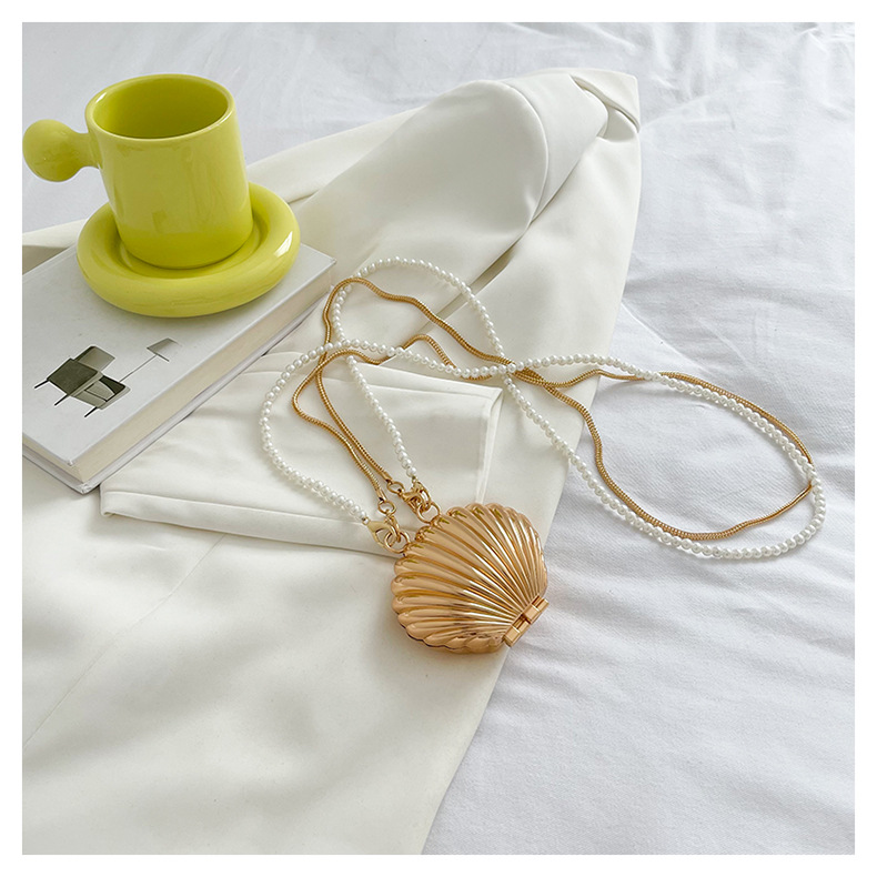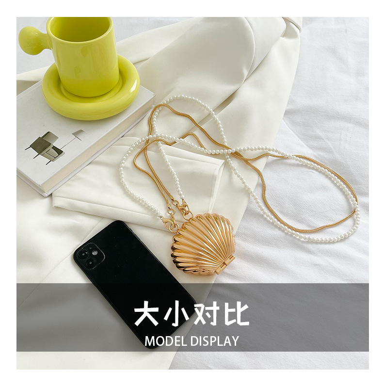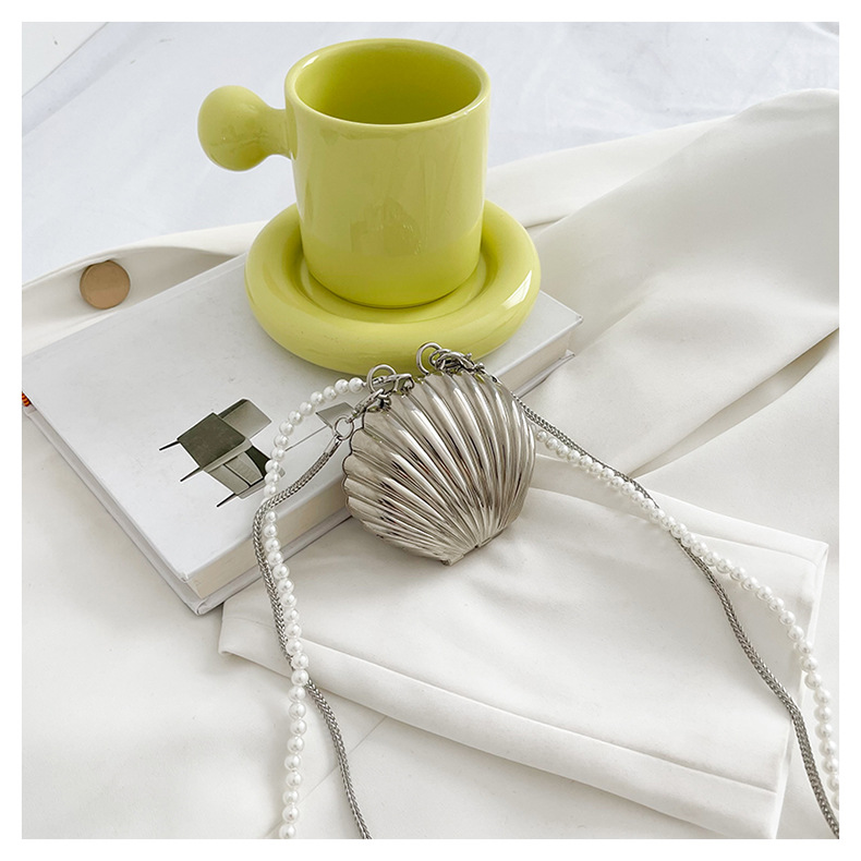 쉘 모양의 작은 가방 여성용 이브닝 백 2026 신상 진주 체인 패션 핸드백 숄더백 한국 스타일 메탈 크로스백
