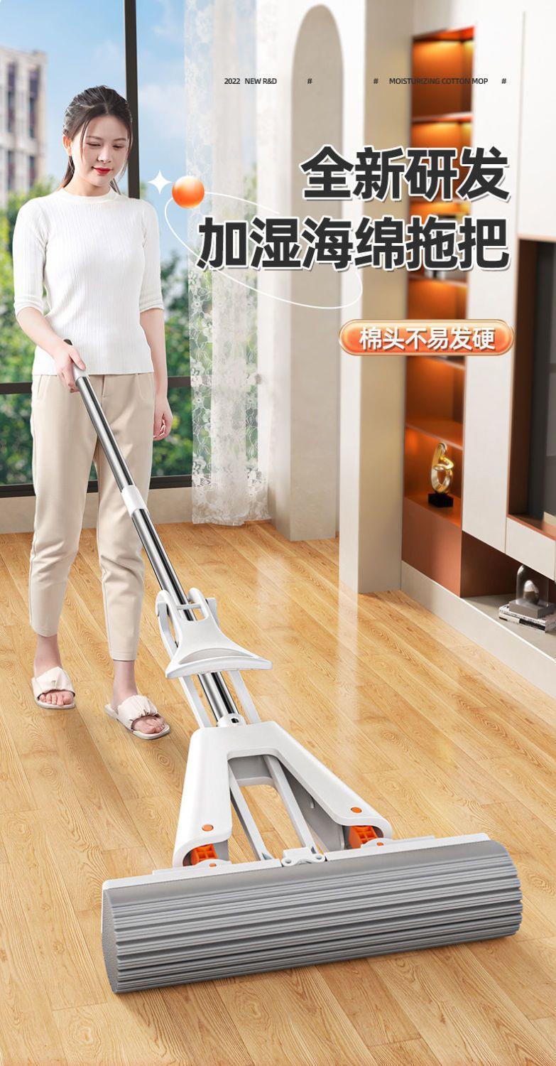 스폰지 걸레 핸즈프리 세척 가정용 게으른 걸레 고무 면 스폰지 접힌 물 추출 스테인레스 스틸 막대 걸레
