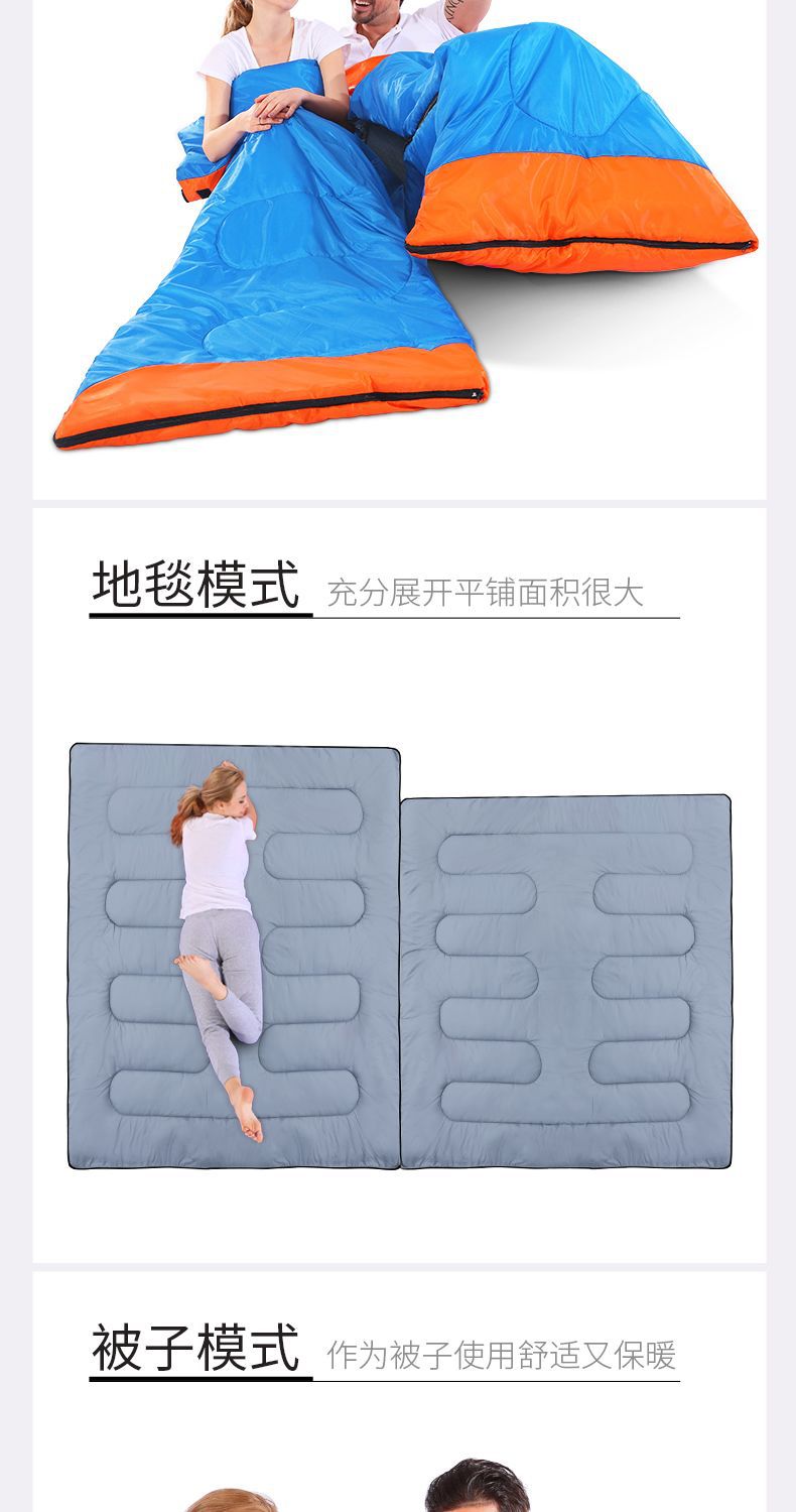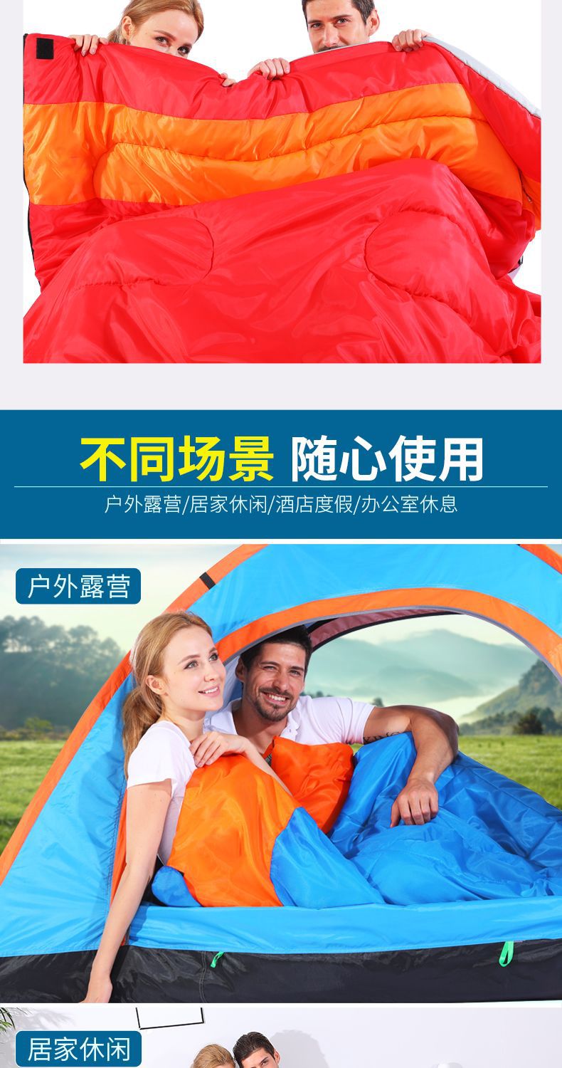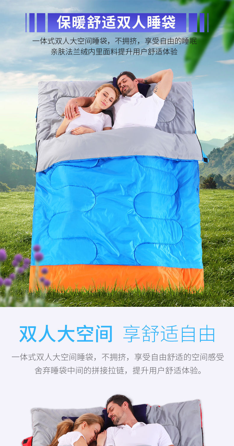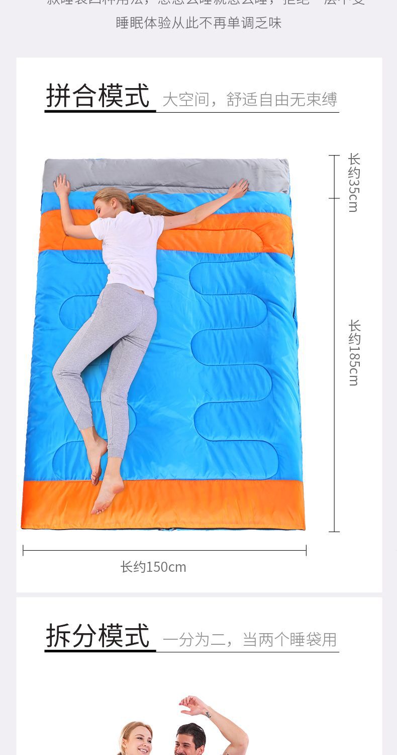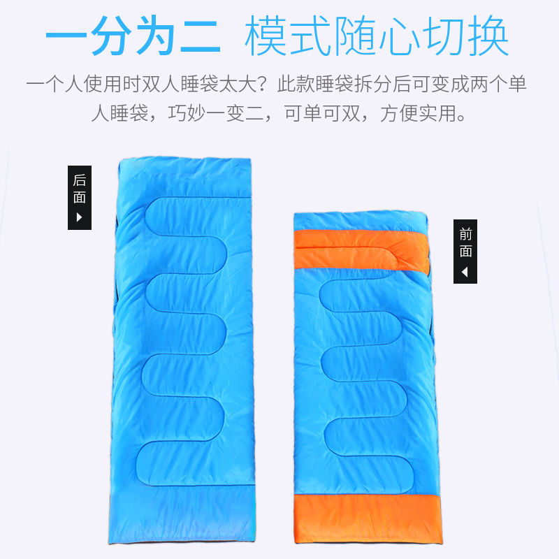 야외 캠핑 휴대용 2인용 침낭, 따뜻하고 방진 기능이 있는 커플용 분리형 성인용 두꺼운 보온 침낭