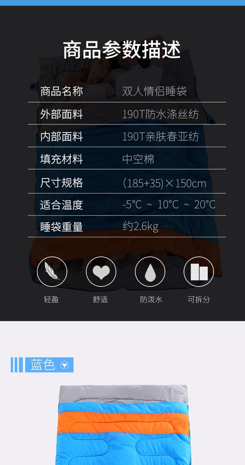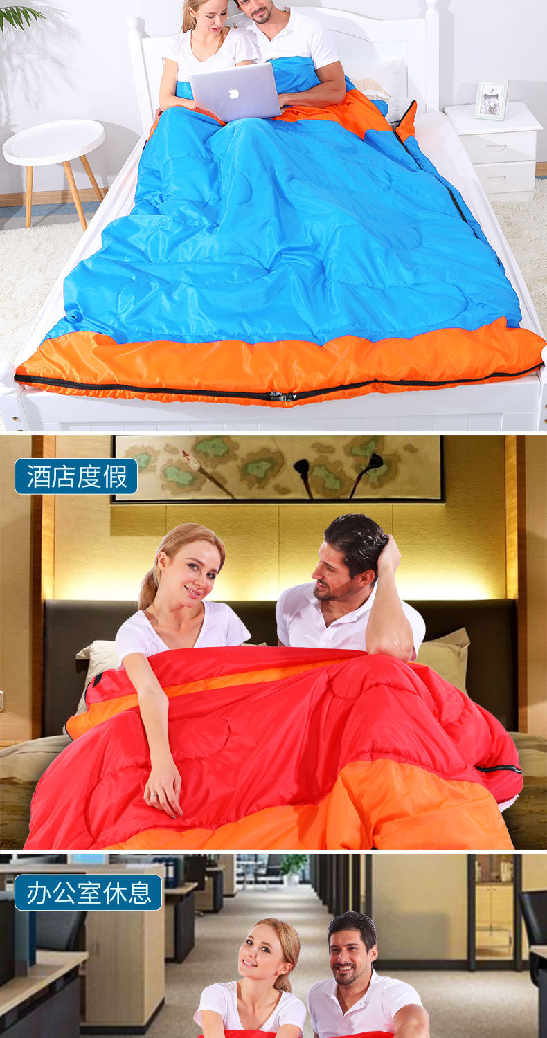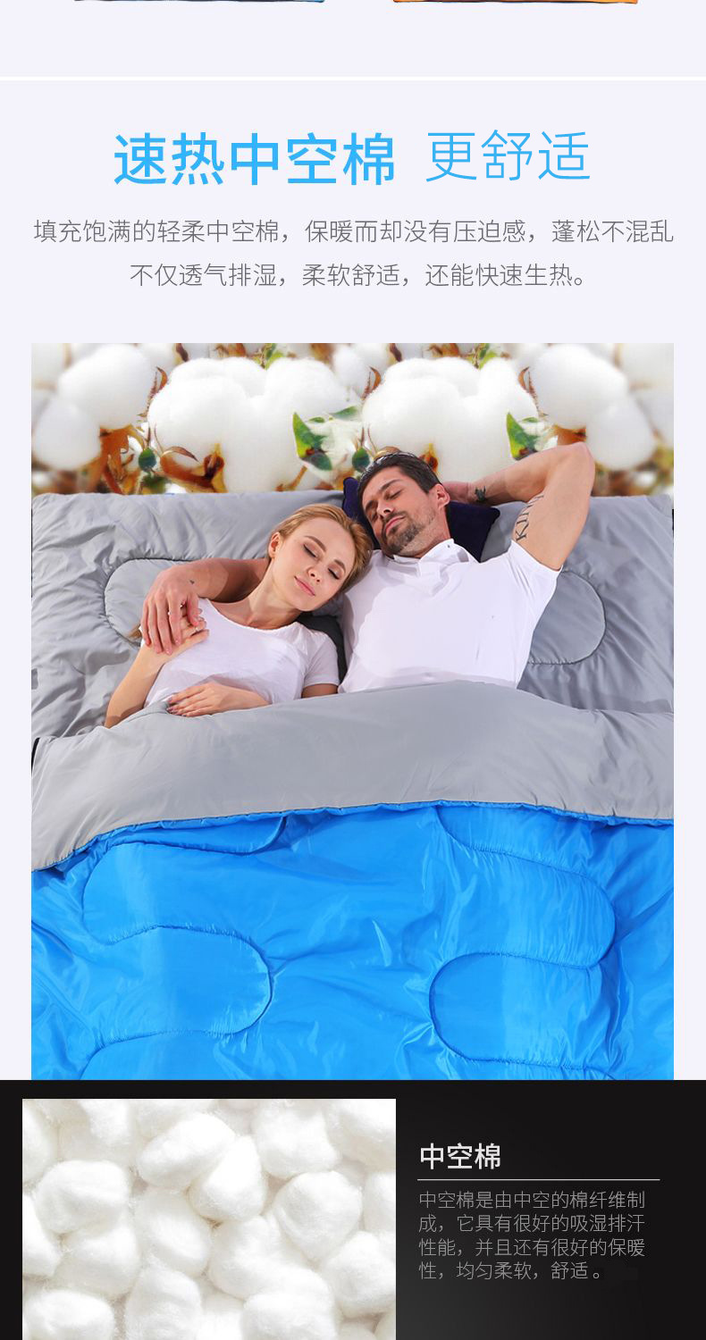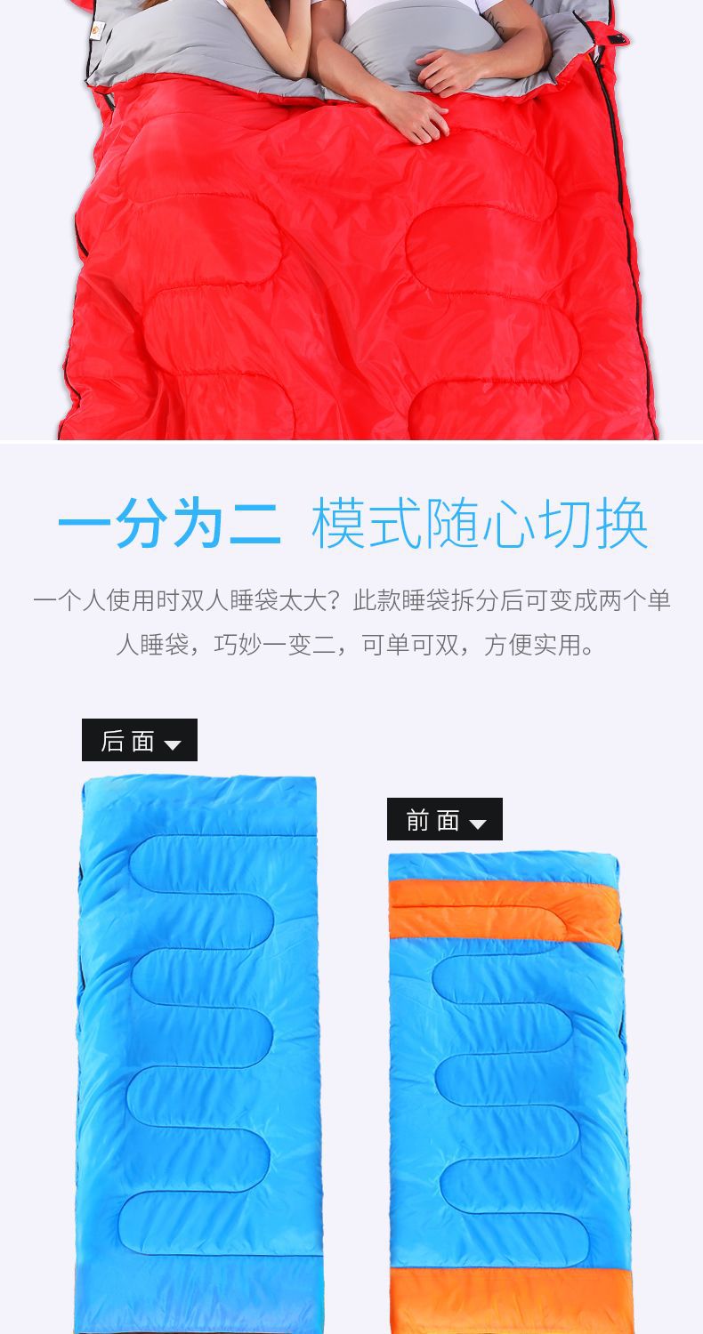 야외 캠핑 휴대용 2인용 침낭, 따뜻하고 방진 기능이 있는 커플용 분리형 성인용 두꺼운 보온 침낭
