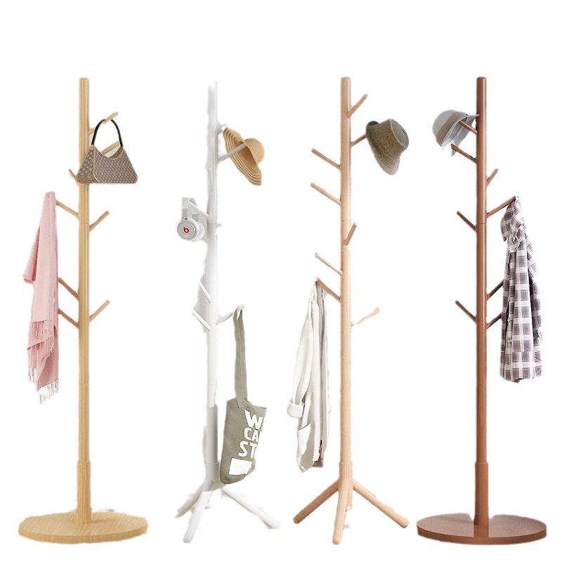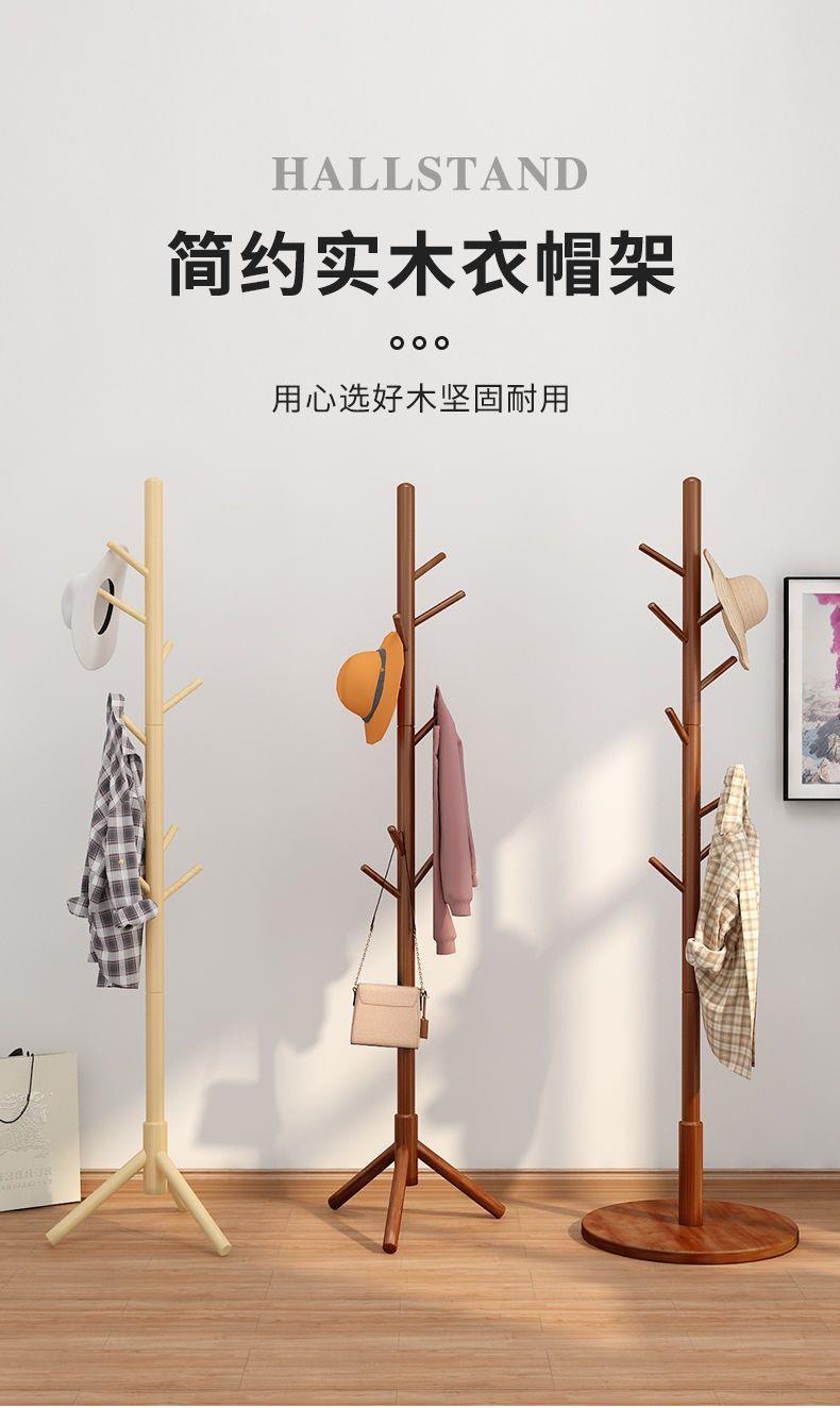 단단한 나무 코트 랙 바닥 침실 거실 기숙사 가정용 수직 행거 막대 간단한 옷 가방 보관 랙
