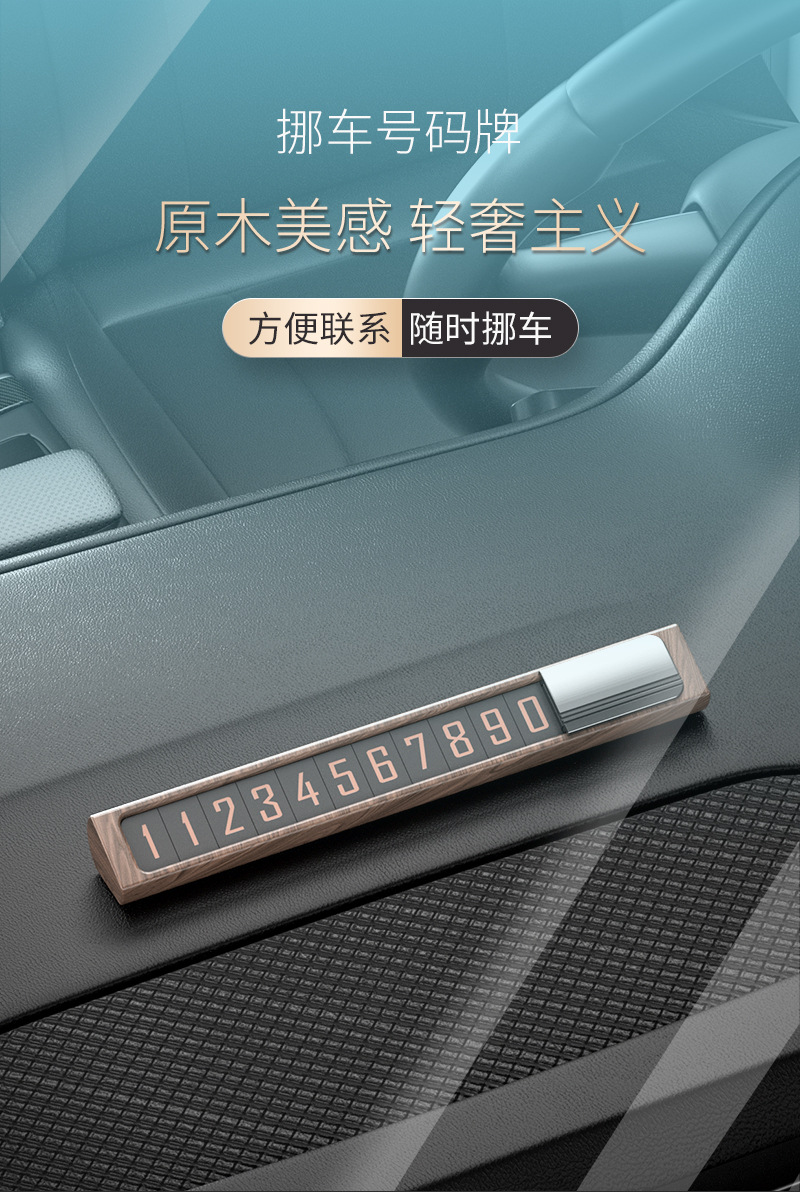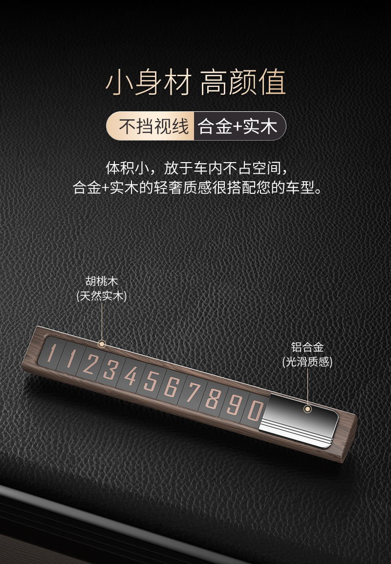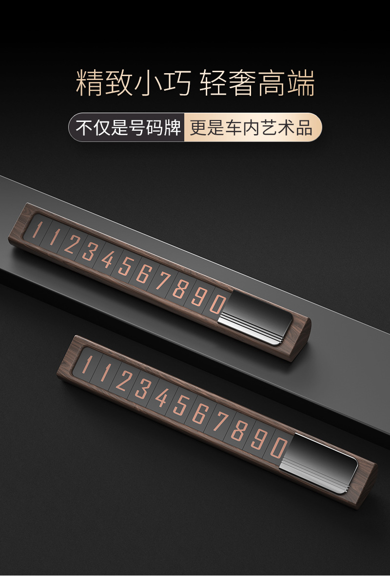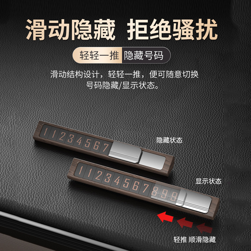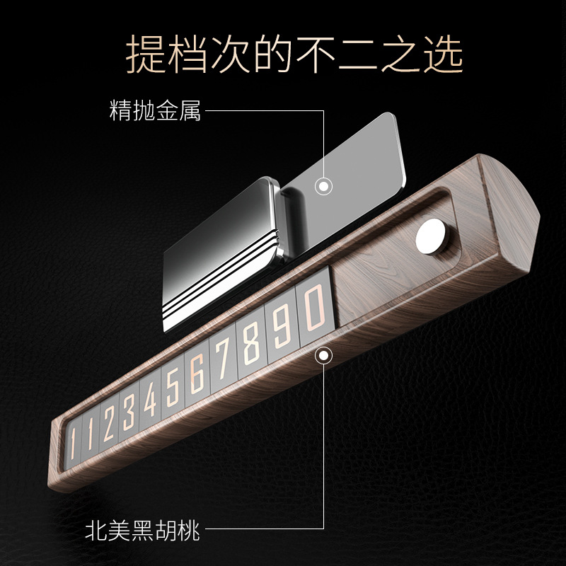 자동차 용품 고급 호두 이동식 차 번호판 야간등 슬라이딩 숨겨진 임시 주차 플레이트 도매