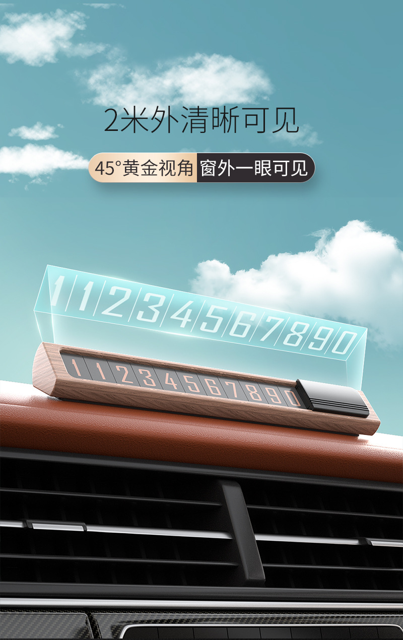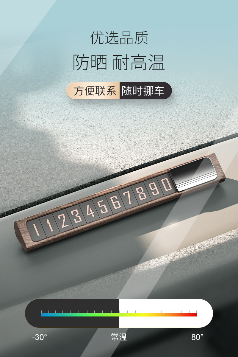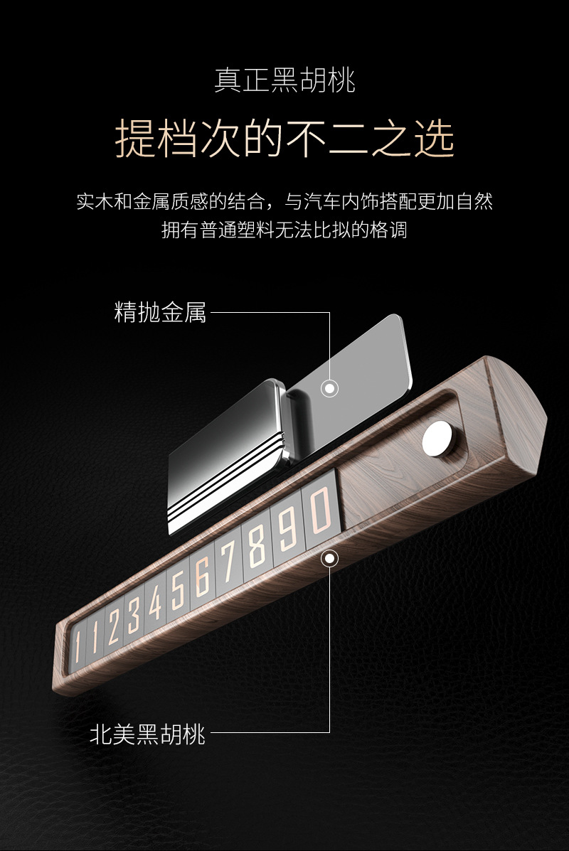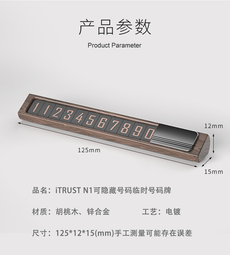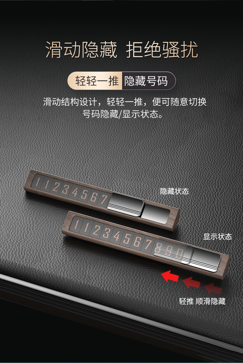 자동차 용품 고급 호두 이동식 차 번호판 야간등 슬라이딩 숨겨진 임시 주차 플레이트 도매