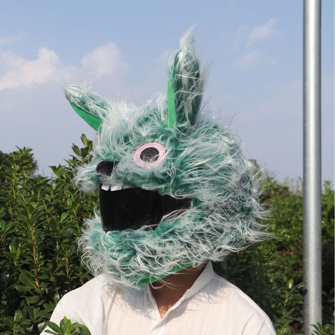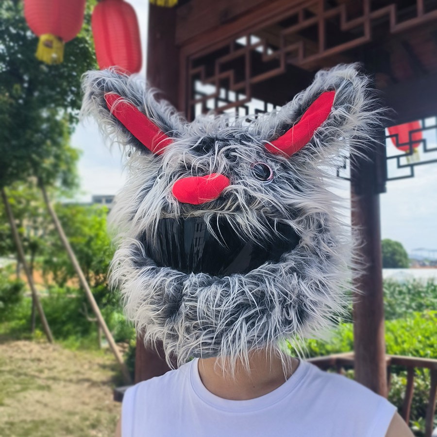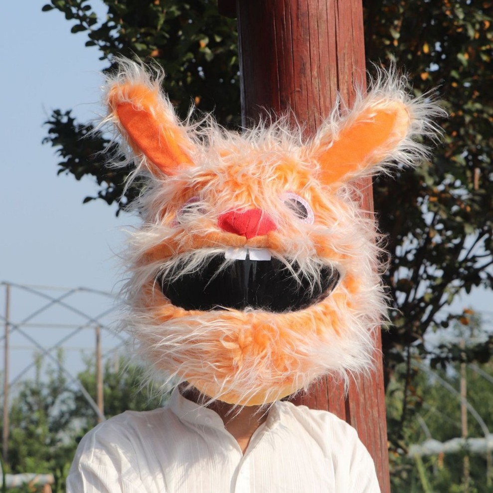 니치 토끼 캐릭터 라이딩 만화 플러시 헬멧 후드 오토바이 마스크 긴털 모자 장식 스트리트 스타일