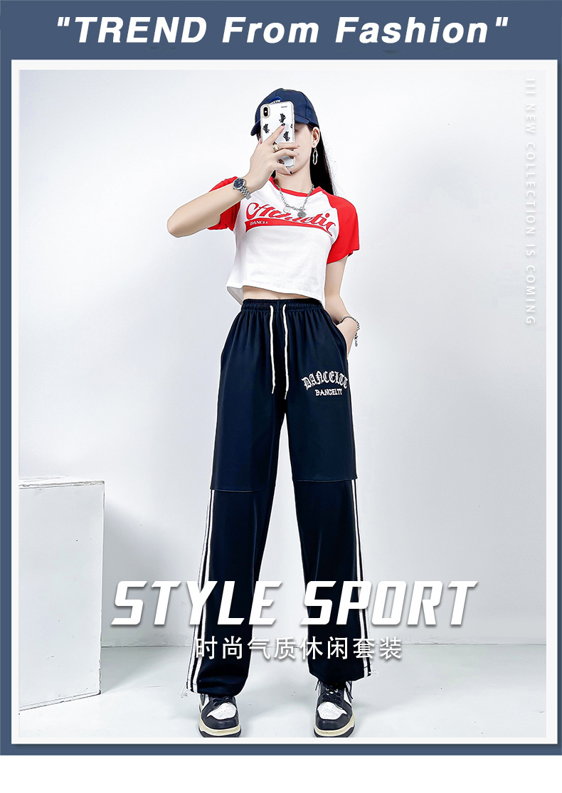 스포츠 세트 여성 여름 2023 새로운 한국 스타일 스트리트 프라이 에이지 감소 유행 슬리밍 캐주얼 투피스 세트 인 트렌디