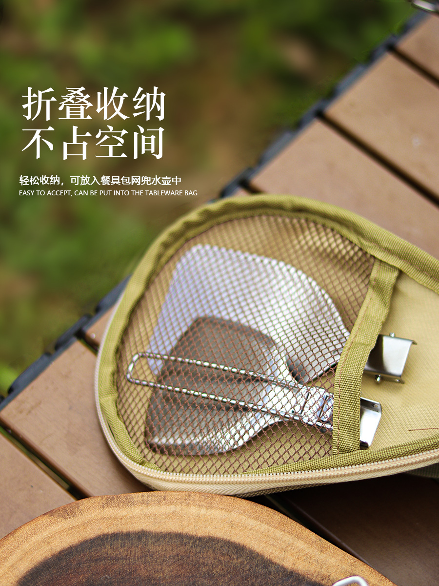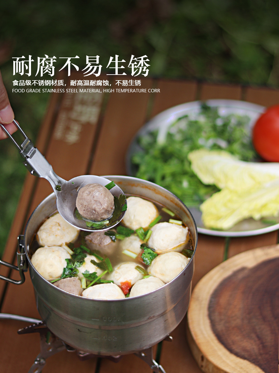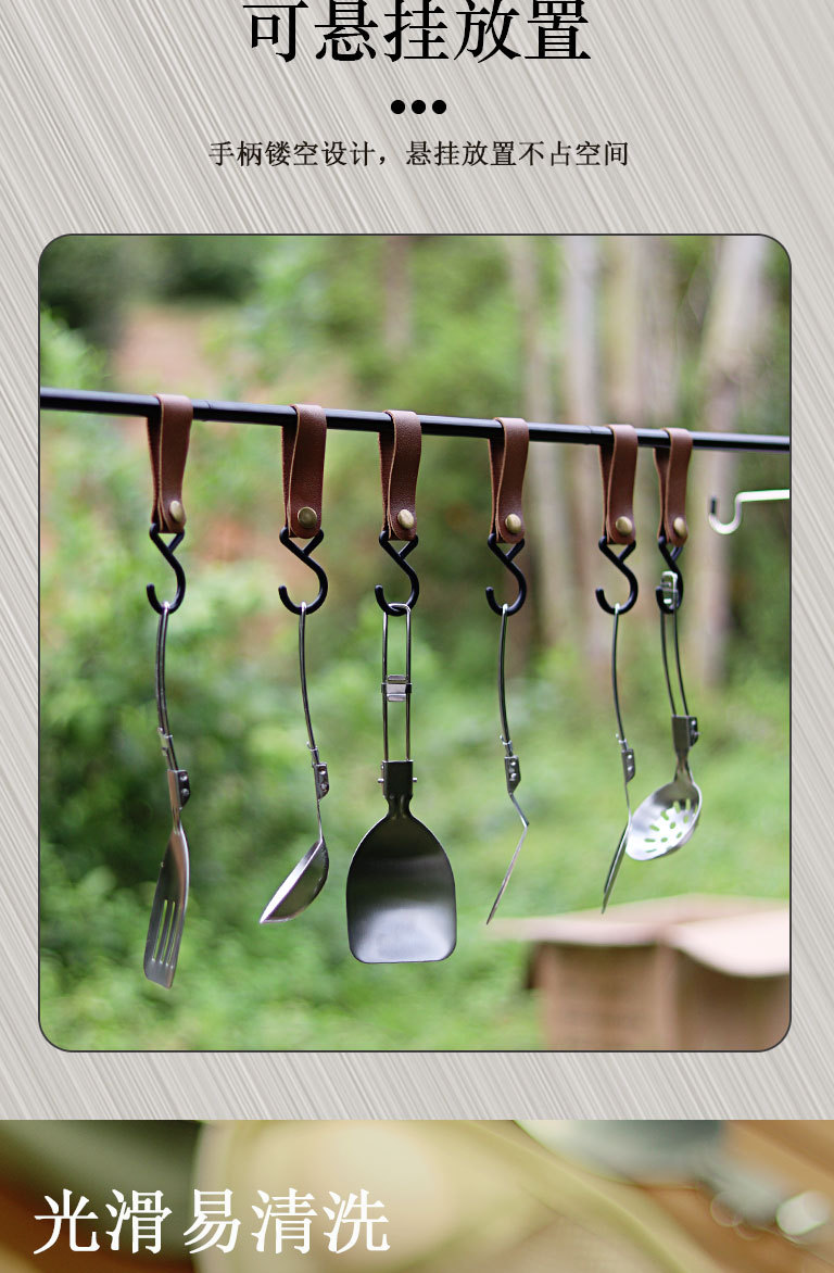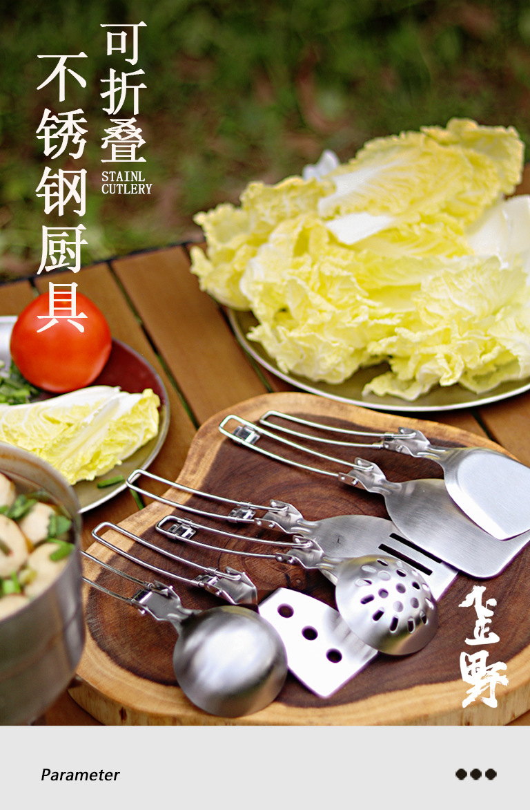 야외 304 스테인레스 스틸 식기 세트 휴대용 접이식 튀김 삽 캠핑 관광 다기능 식기 주방 용품