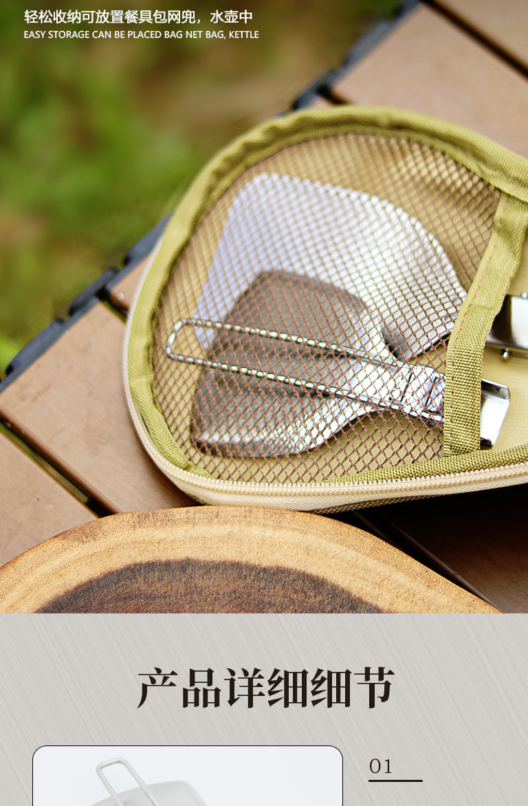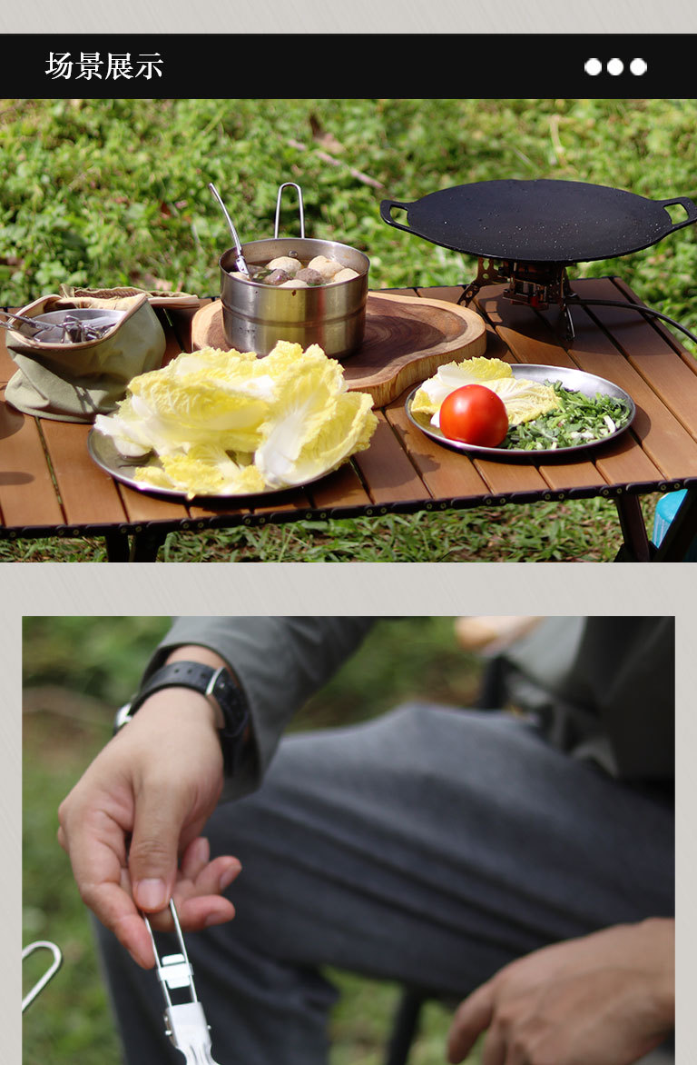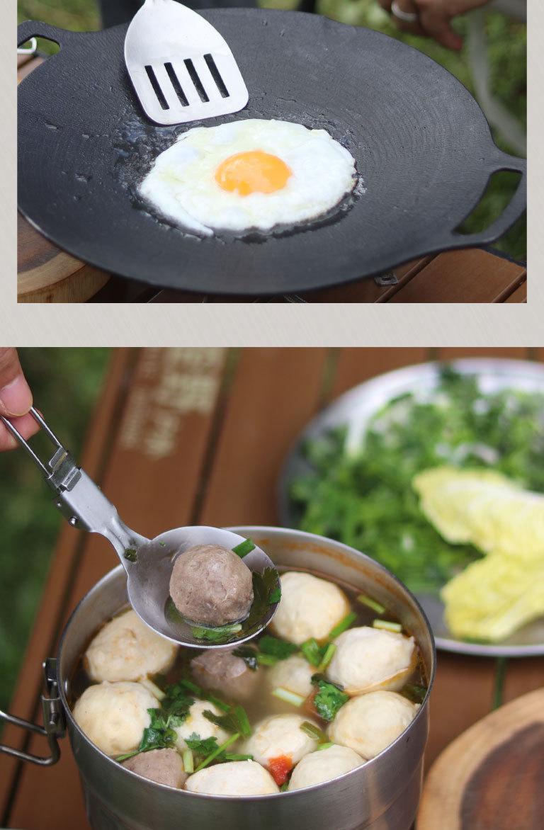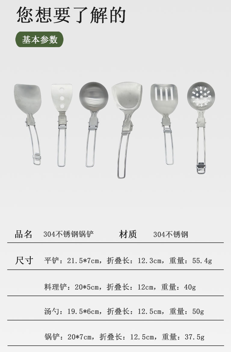 야외 304 스테인레스 스틸 식기 세트 휴대용 접이식 튀김 삽 캠핑 관광 다기능 식기 주방 용품