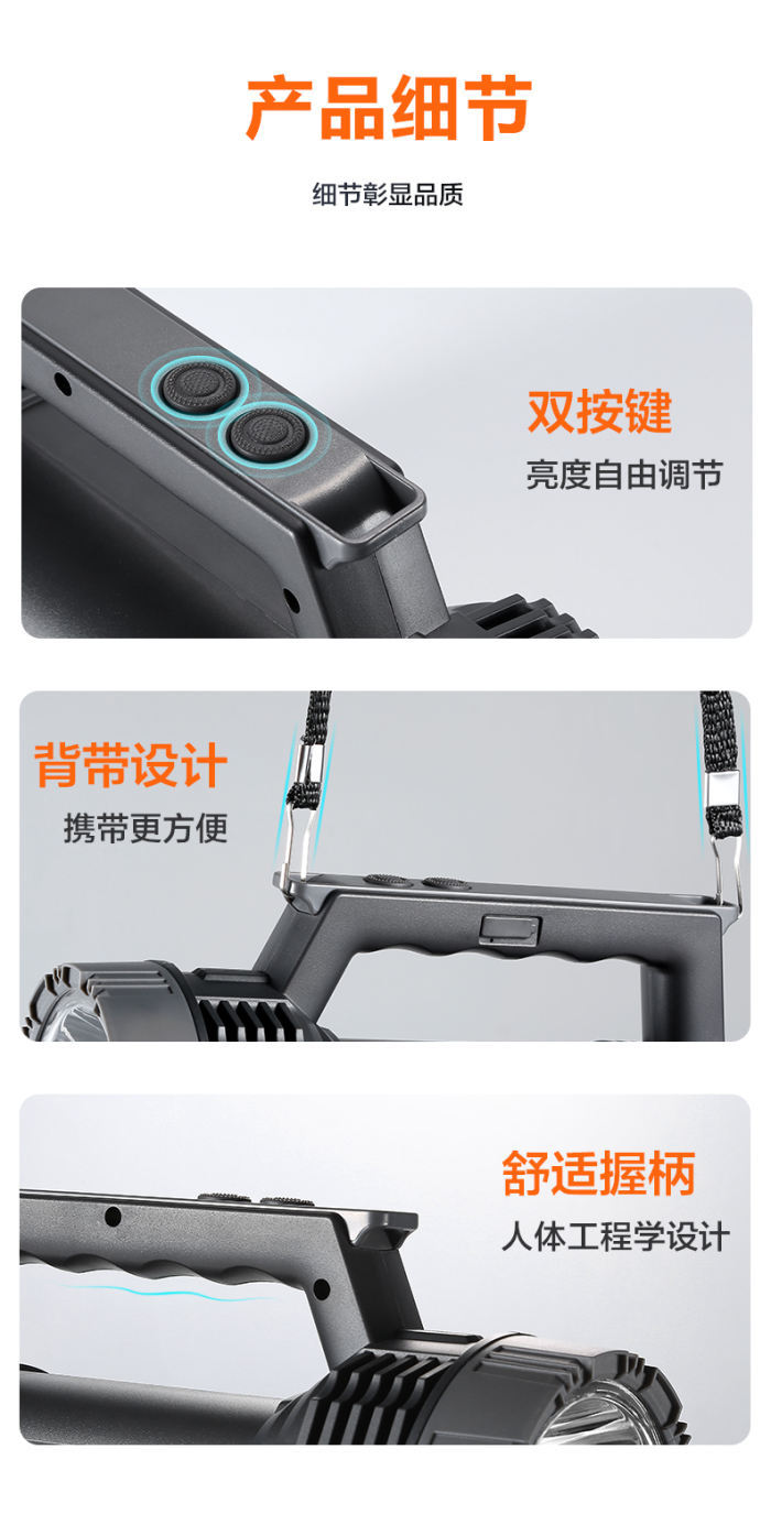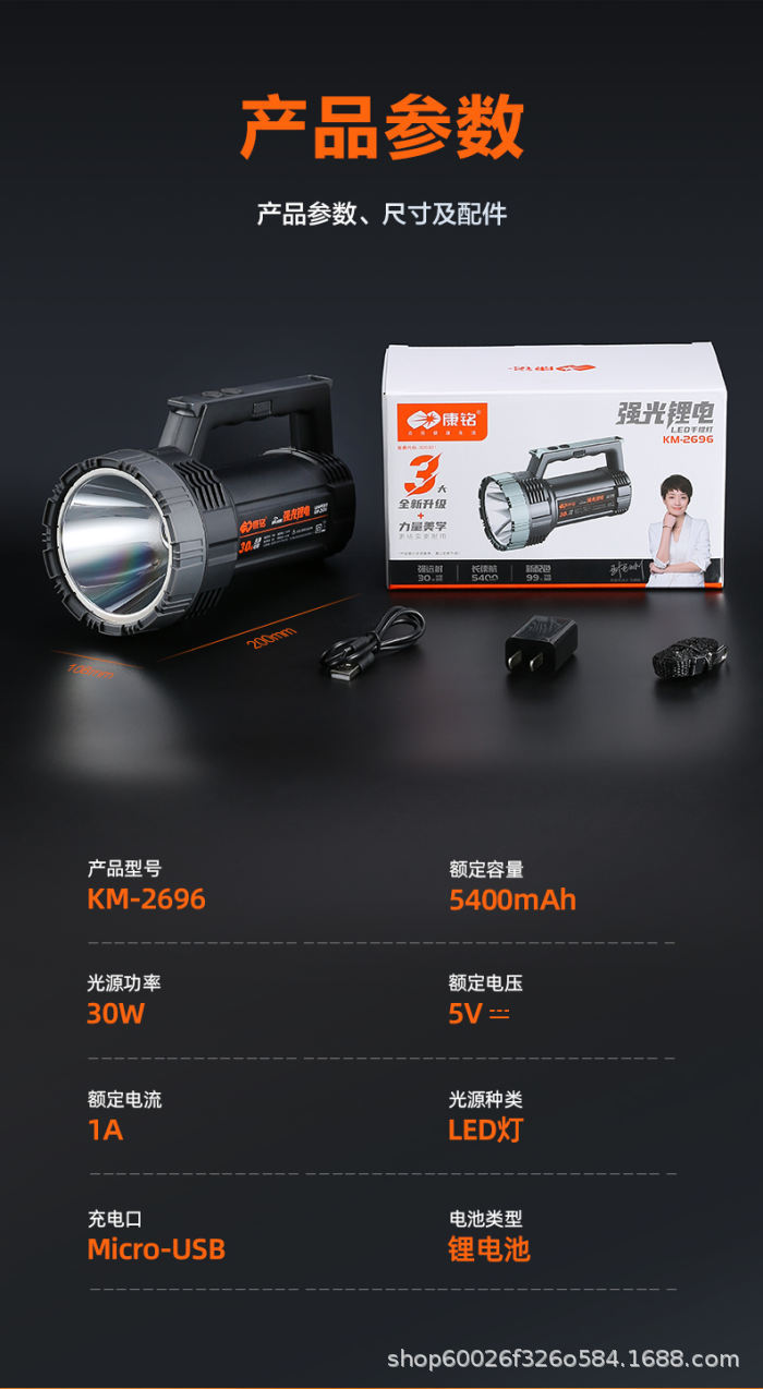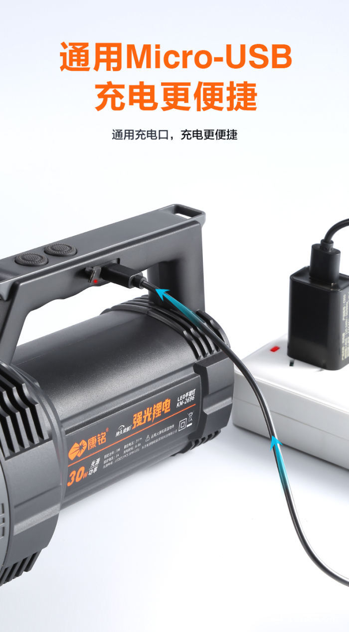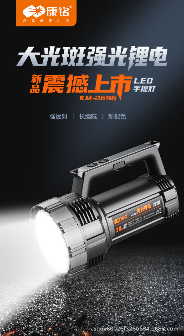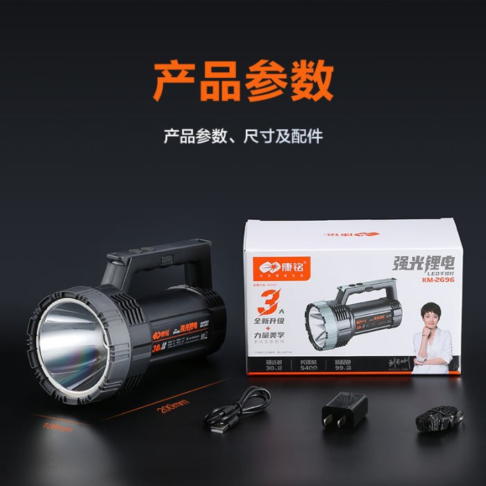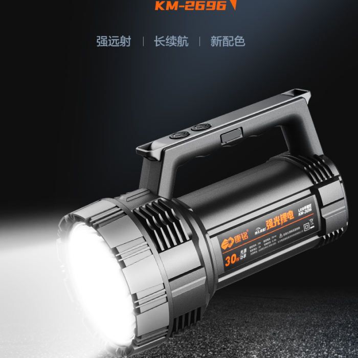 Kangming KM-2696 리튬 배터리 손전등 강력한 조명 충전식 초다기능 방수 야외 가정용 장거리 LED