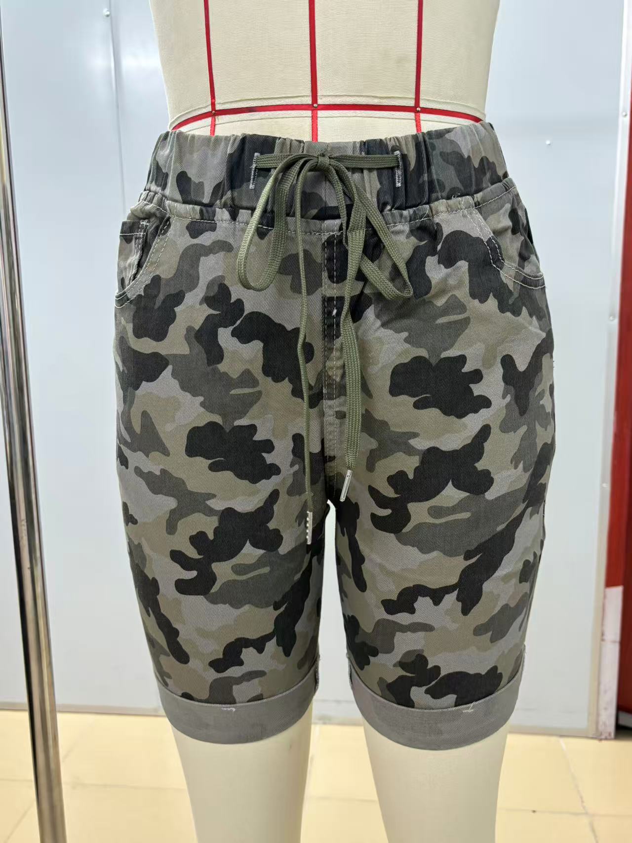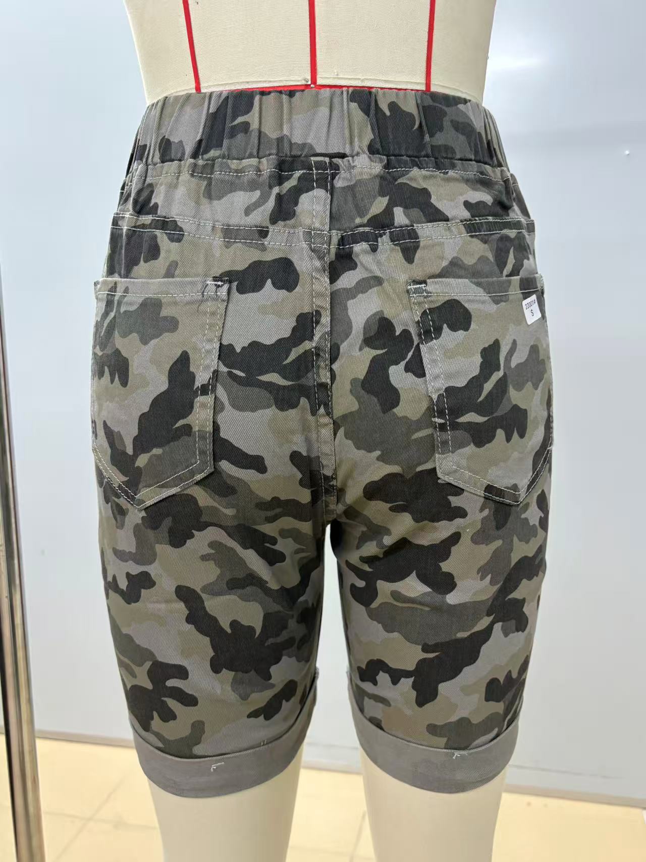 2025 국경 간 핫 판매 대외 무역 소원 AliExpress Amazon 유럽과 미국의 위장 반바지 신축성있는 허리 데님 여성 핫 바지