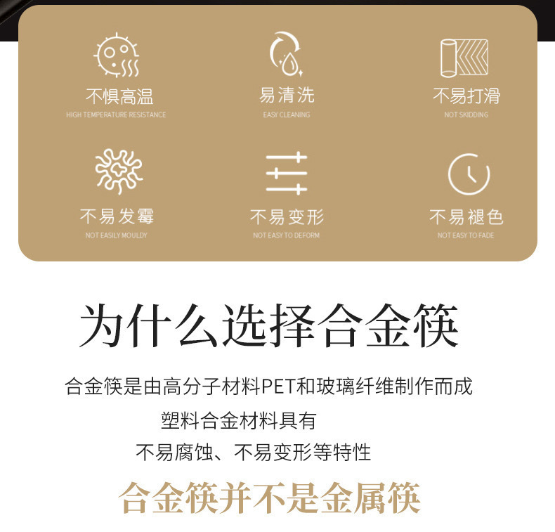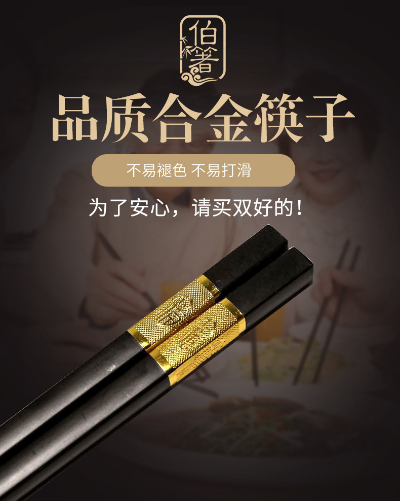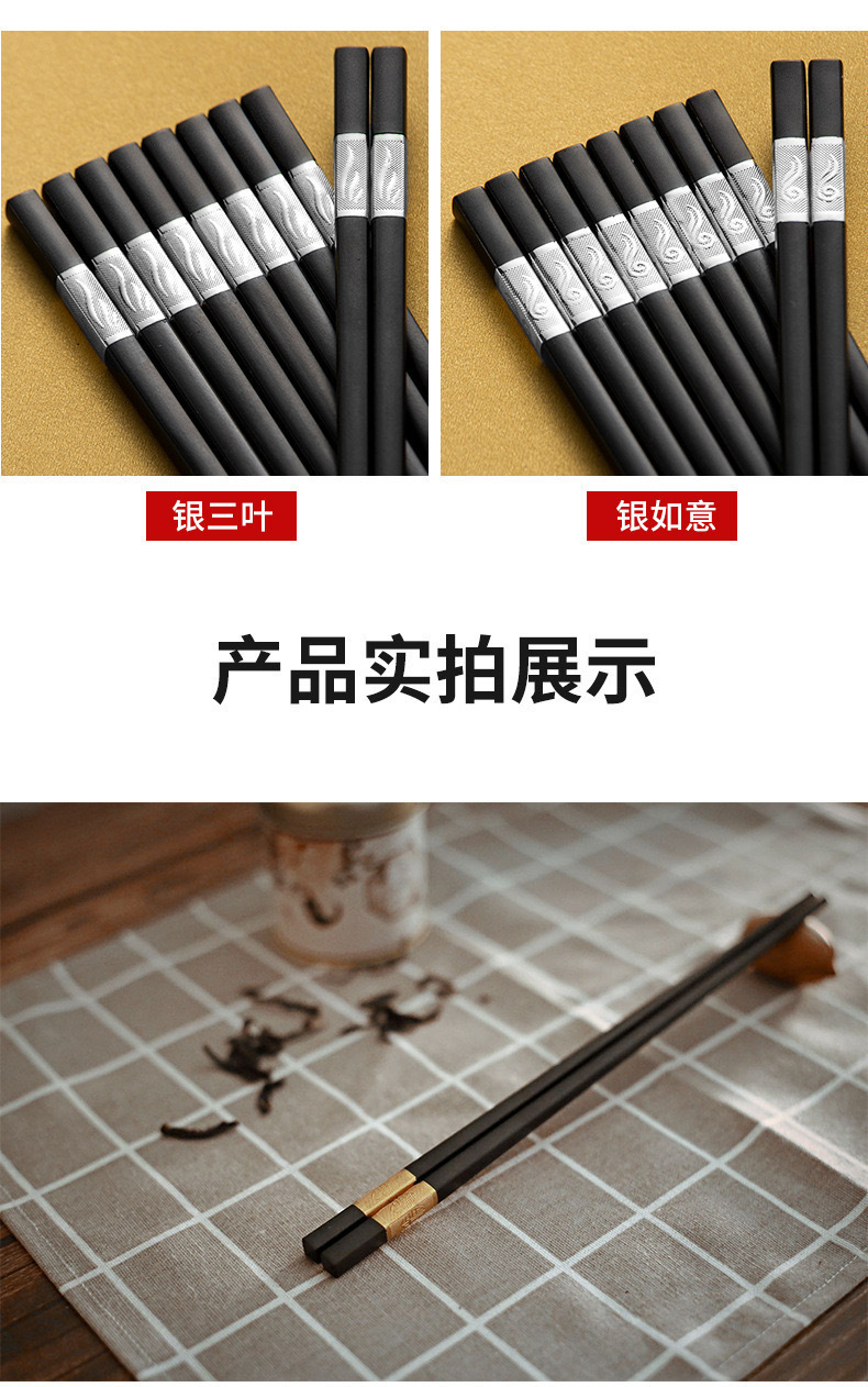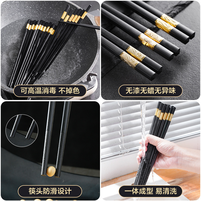 도매 젓가락 가정용 고온 저항성 및 곰팡이가 쉽지 않은 10 쌍 항균 합금 젓가락 식기