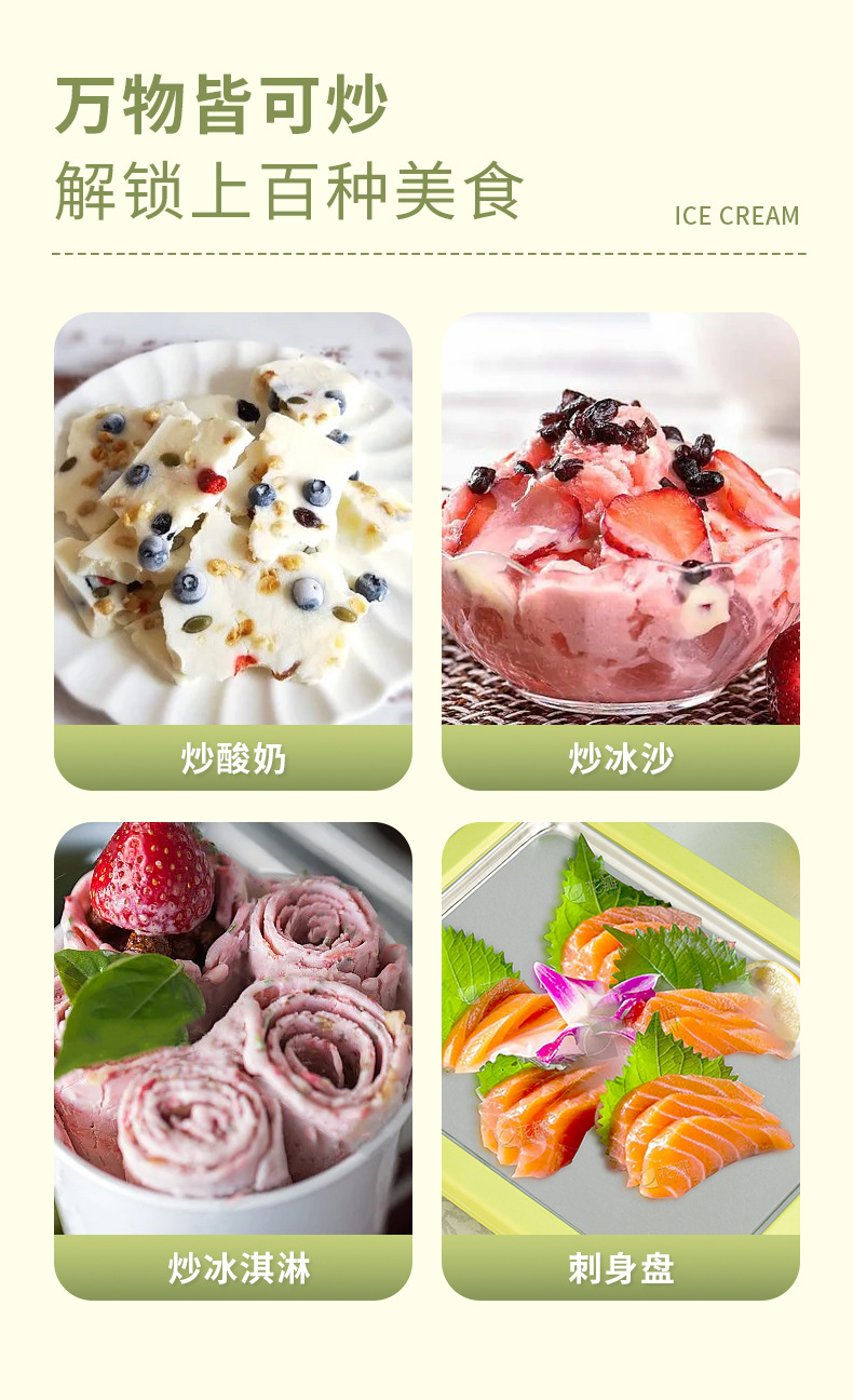 튀긴 얼음 기계 수제 과일 플러그인 무료 아이스크림 튀긴 요구르트 기계 작은 가정 어린이 미니 아이스크림 기계