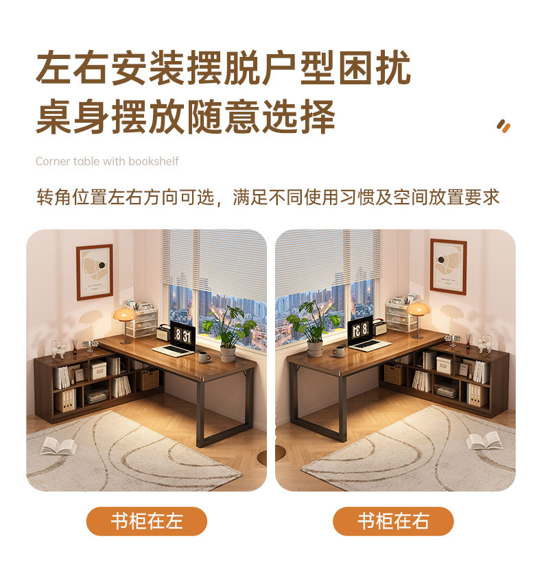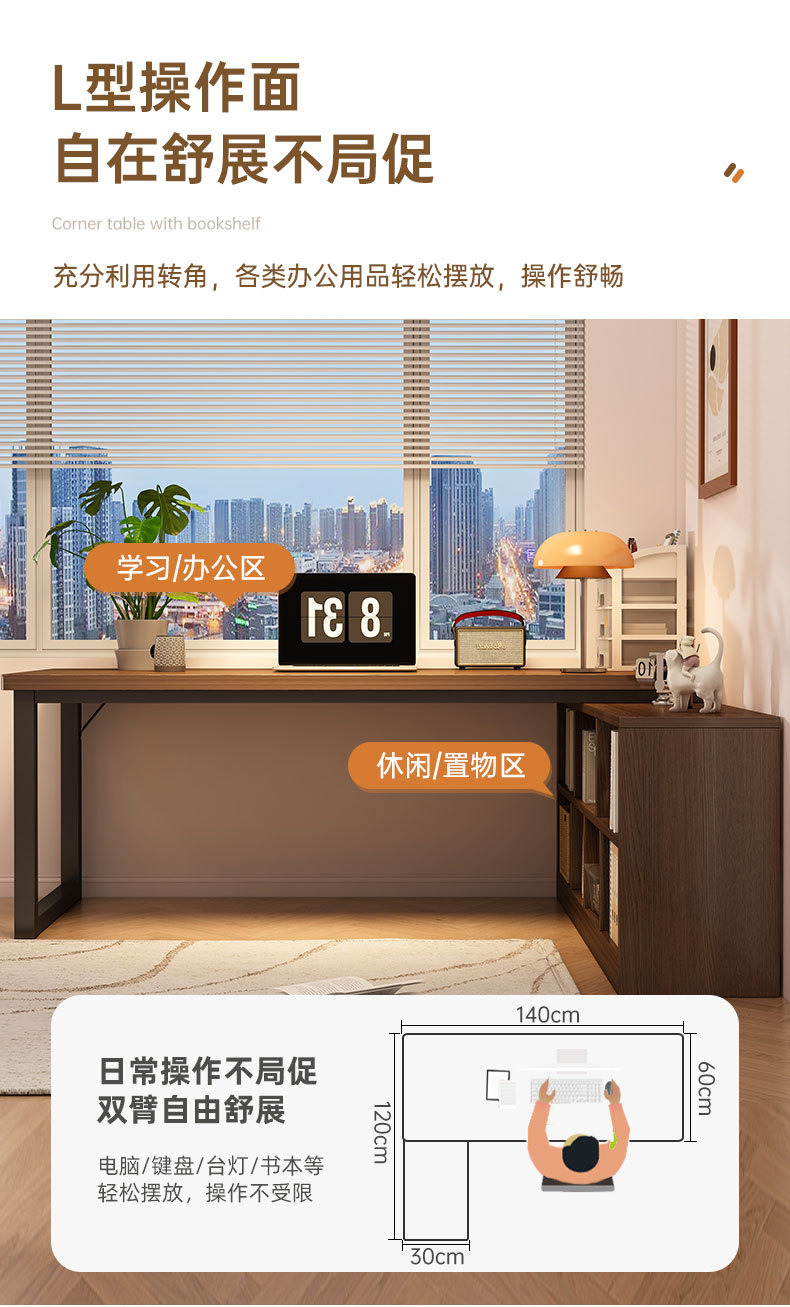 코너 책상 책장 일체형 테이블 학생용 공부 책상 침실 가정용 책상 중세풍 L자형 컴퓨터 책상
