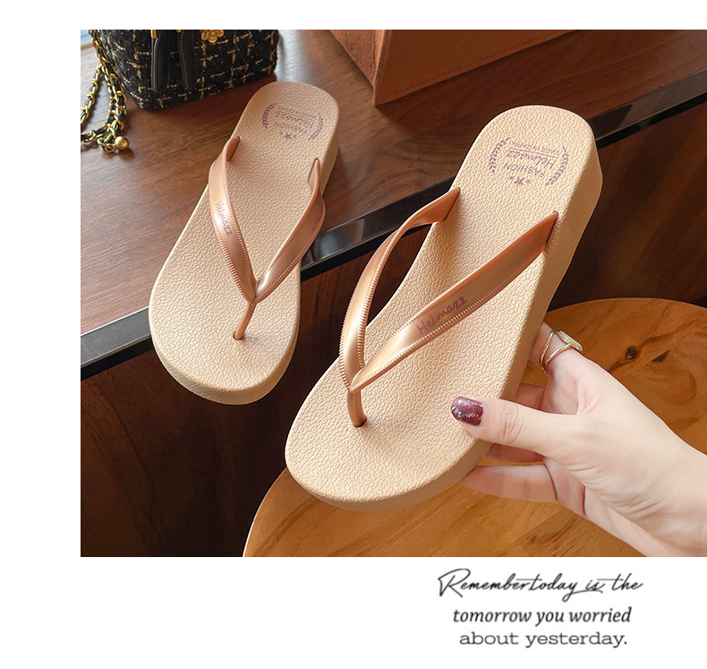 새로운 비치 플립 플롭 여성용 여름 아우터 유행 해변 미끄럼 방지 한국 스타일 클립 웨지 샌들 여성용 헤어