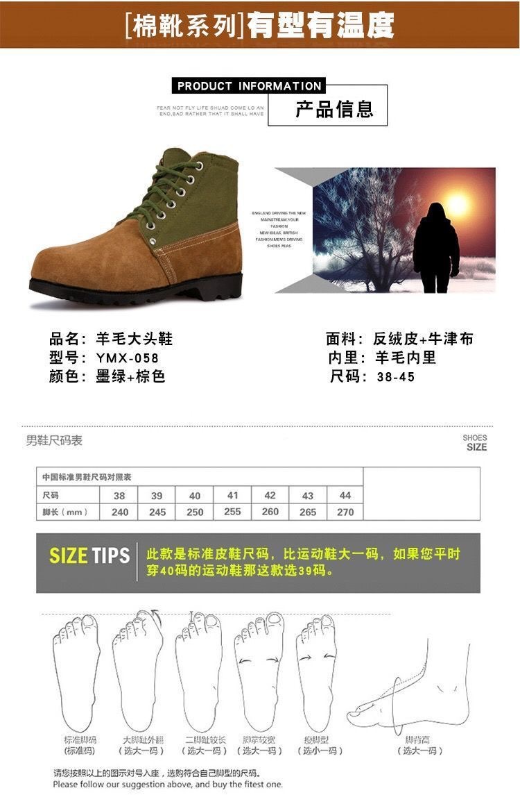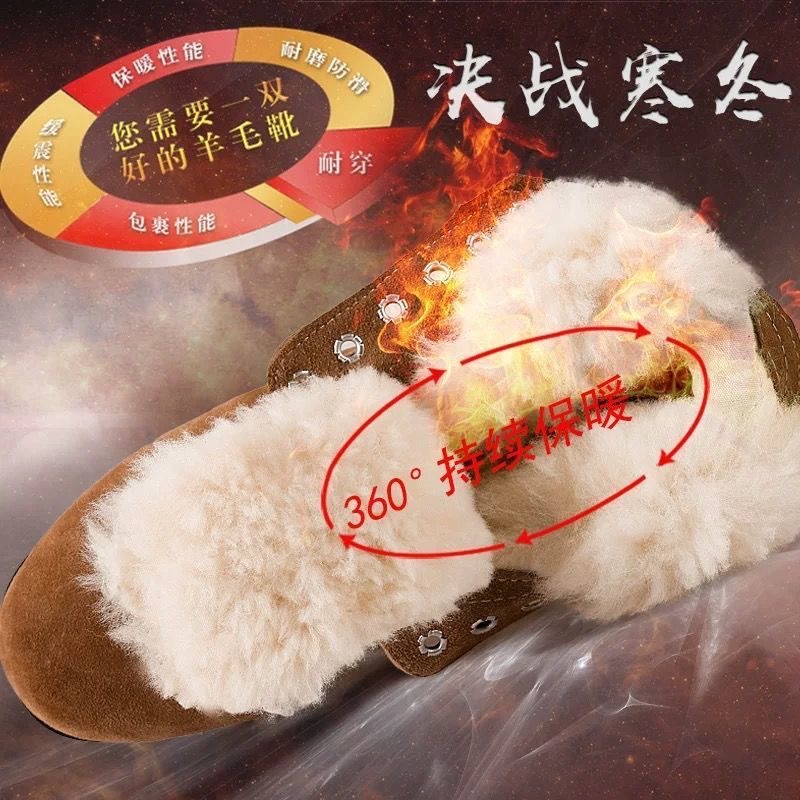 겨울 양모 면화 부츠 남성용 동북 구식 큰 머리 면화 신발 노동 보험 신발 양모 가죽 신발 남성용 두꺼운 따뜻한 스노우 부츠