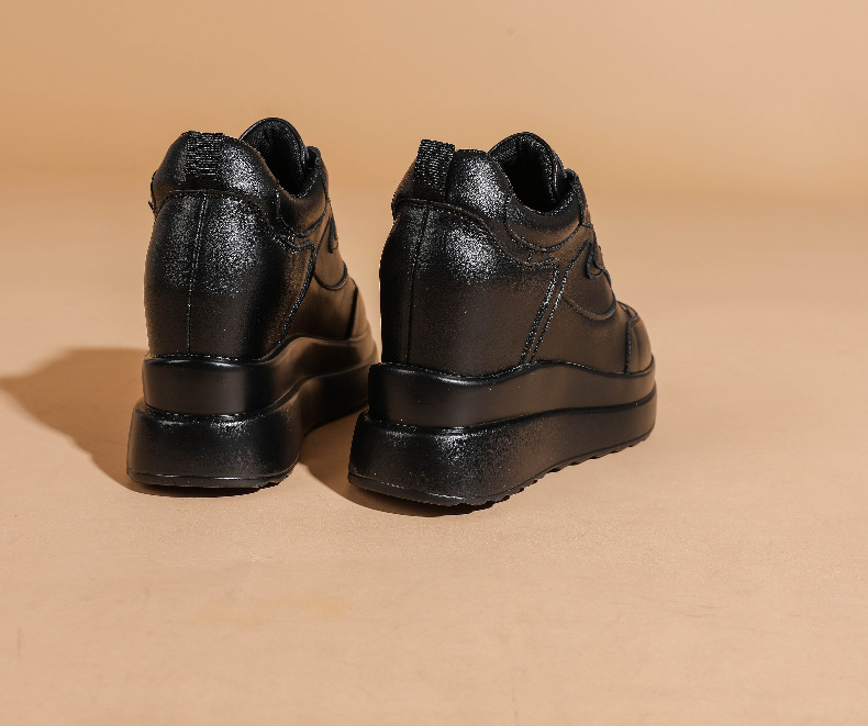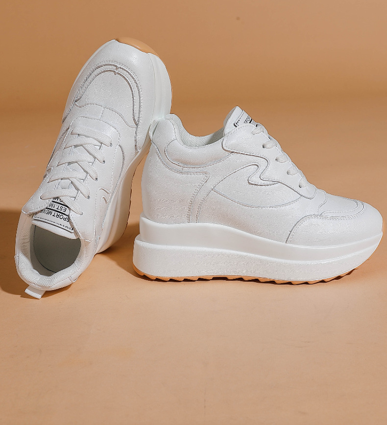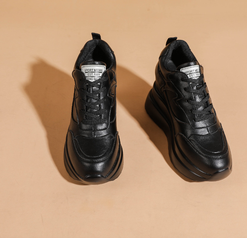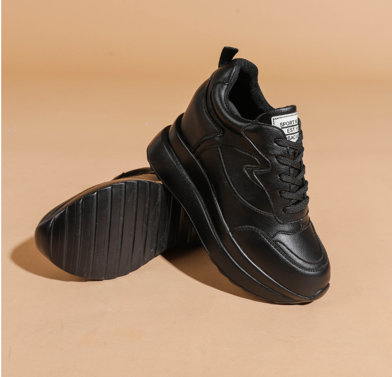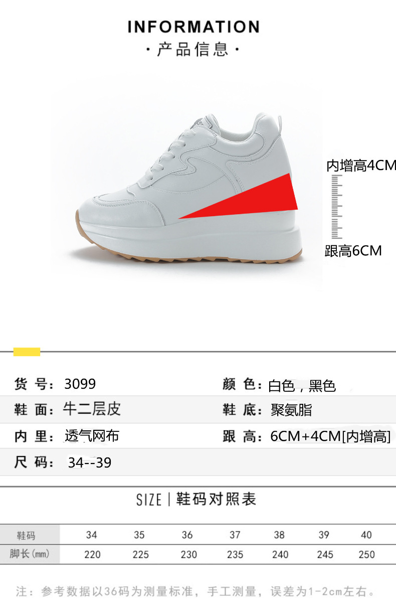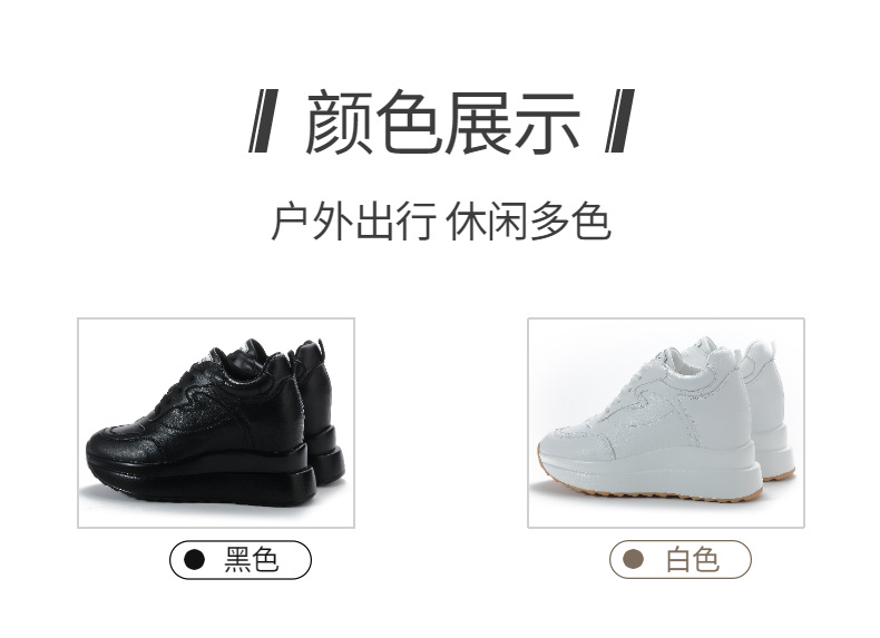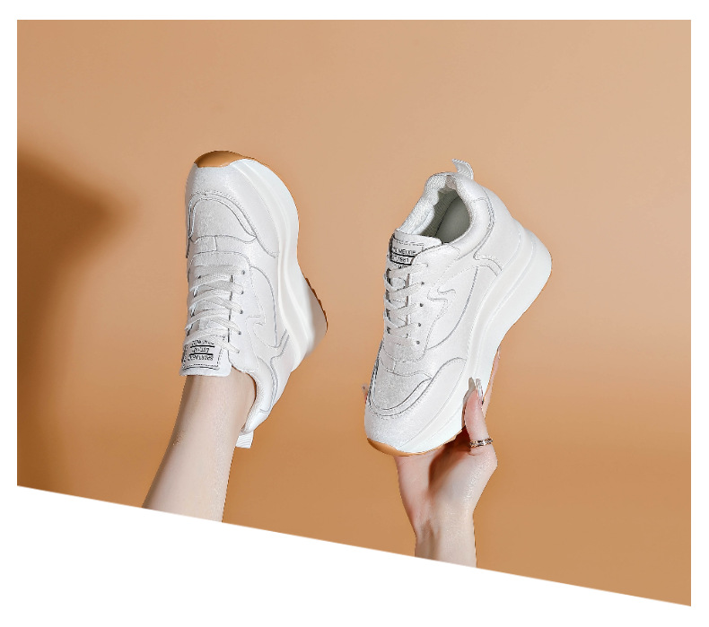 10cm 내부 높이 여성용 싱글 레이어 신발 두꺼운 밑창 머핀 작은 4 계절 신발 가을과 겨울을 위한 천연 가죽 모든 매치 캐주얼 흰색 신발