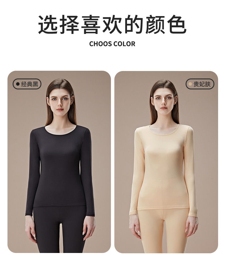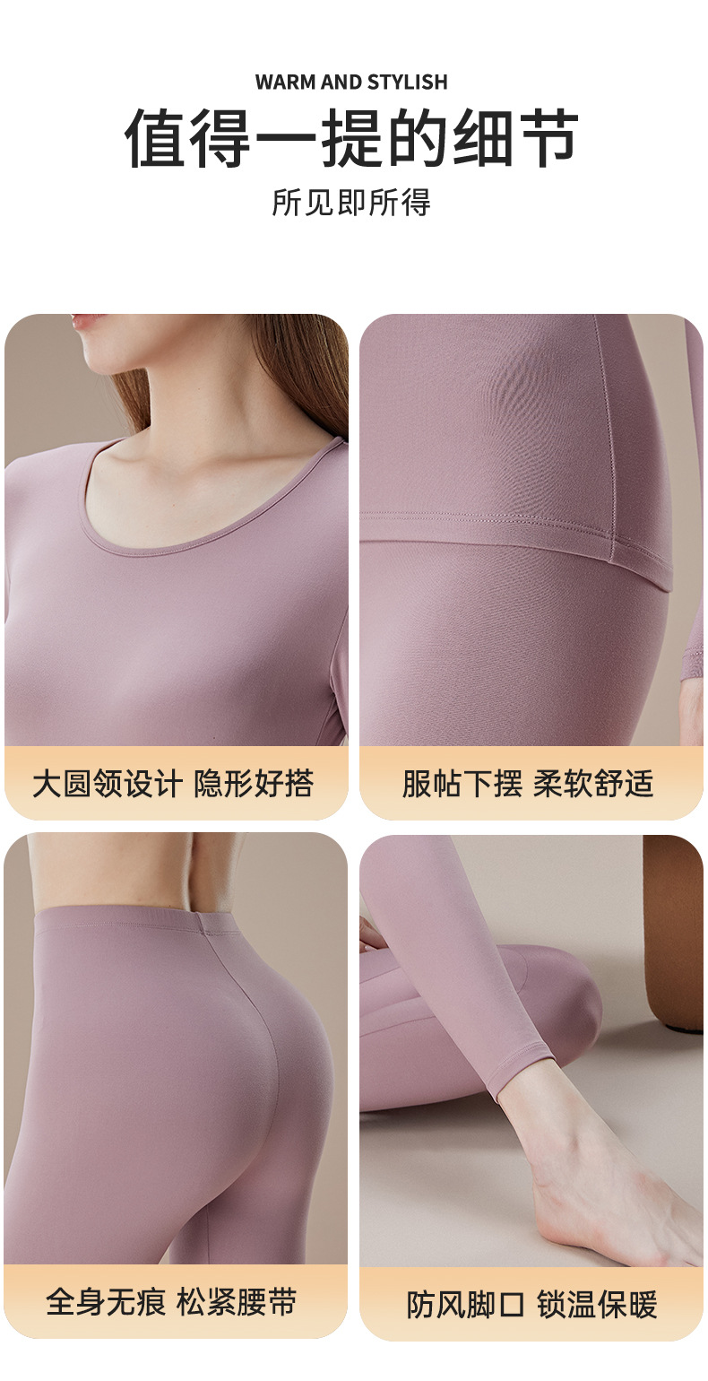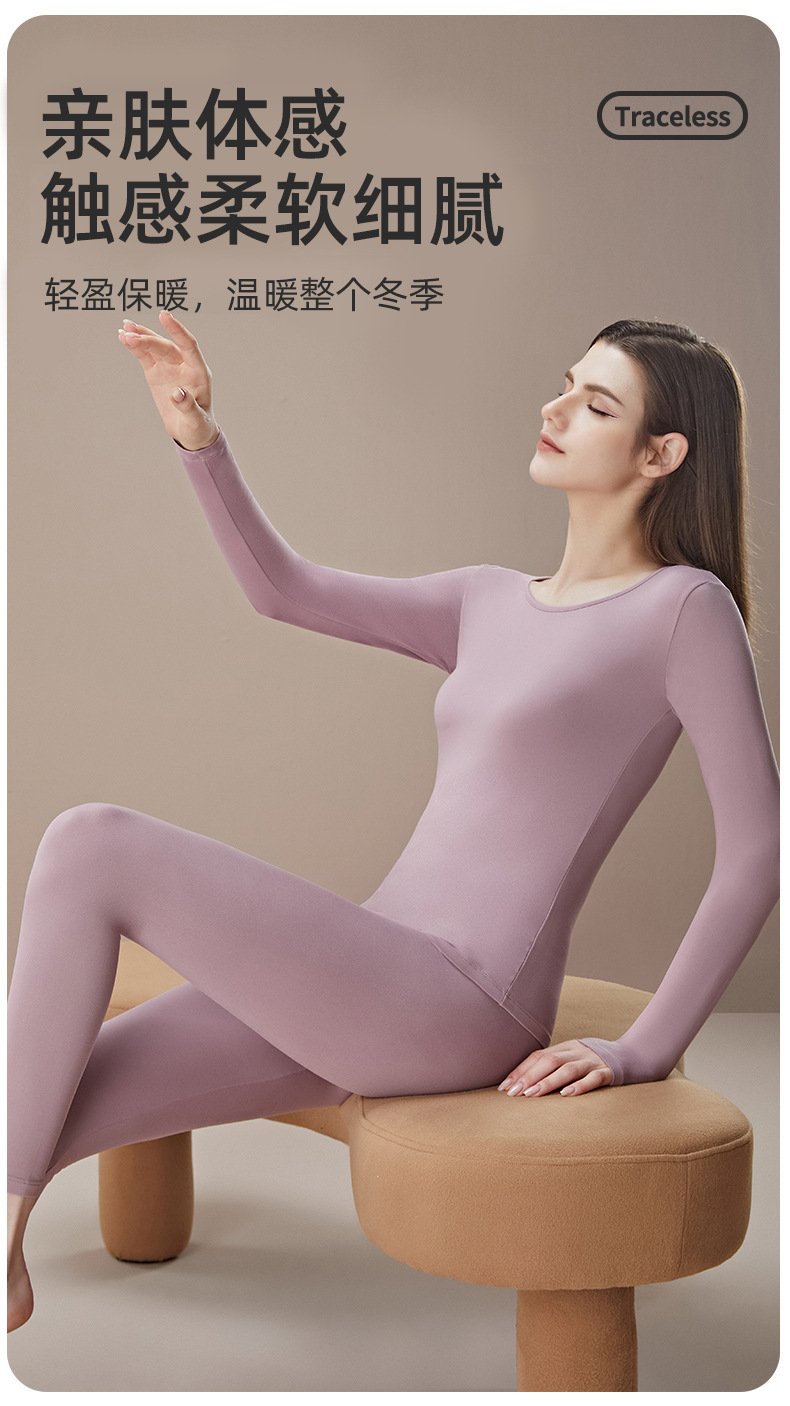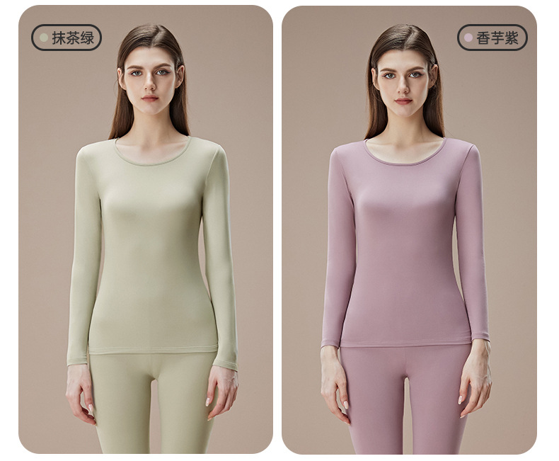 피부 미화 의류 샌딩 베이스 열 속옷 여성의 몸을 아름답게하는 가을 옷과 바지 얇은 세트 원활한 우유 벨벳 둥근 목