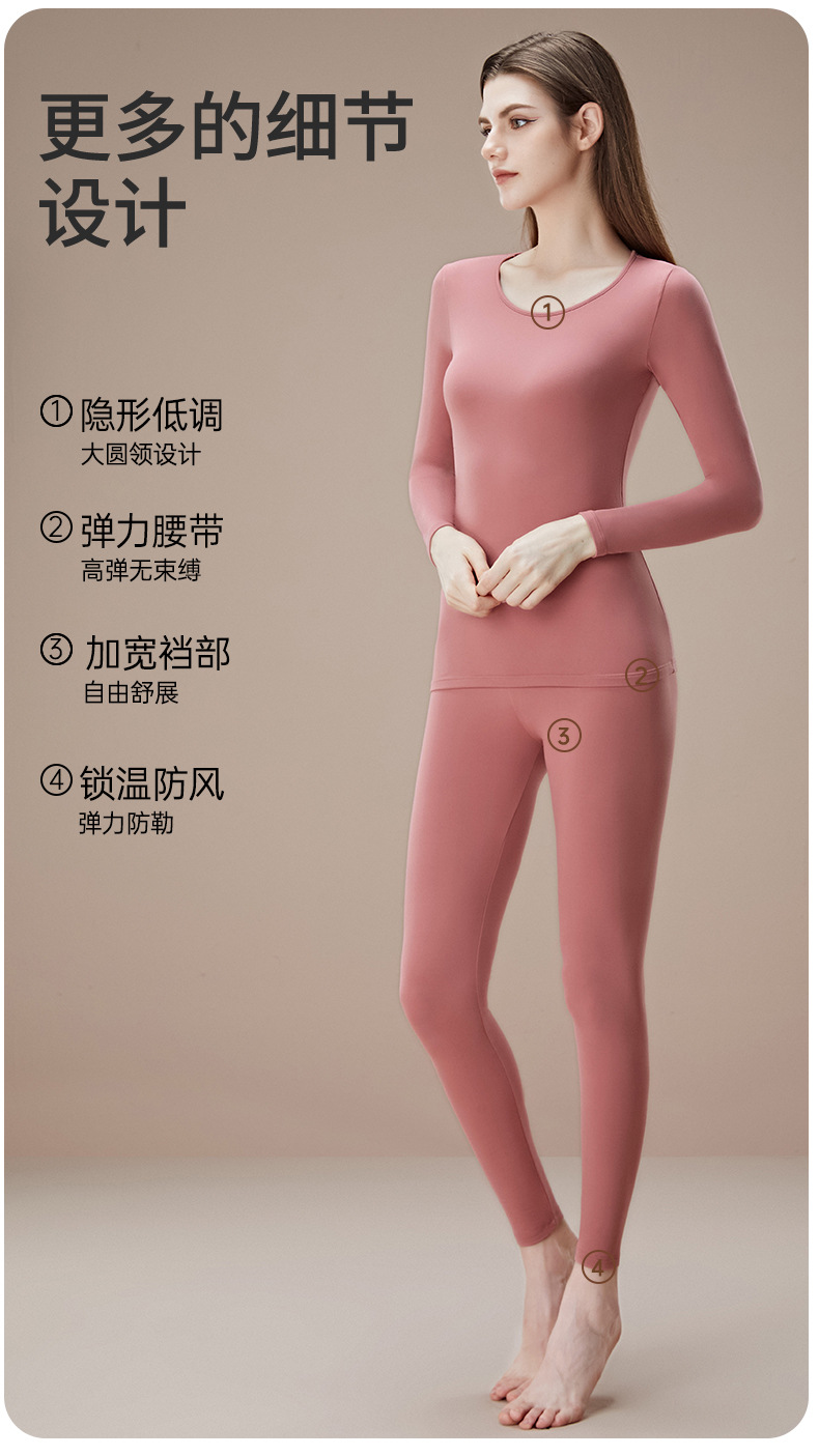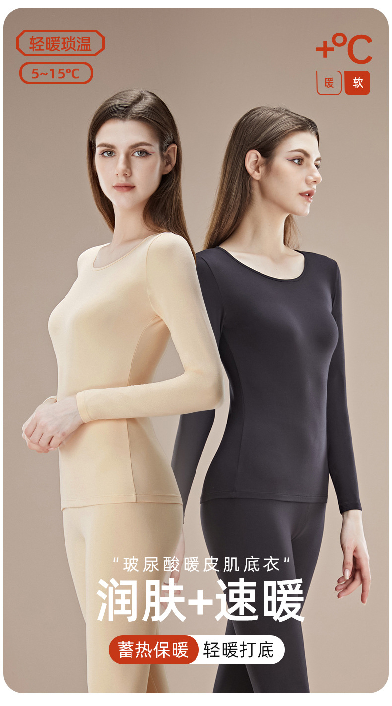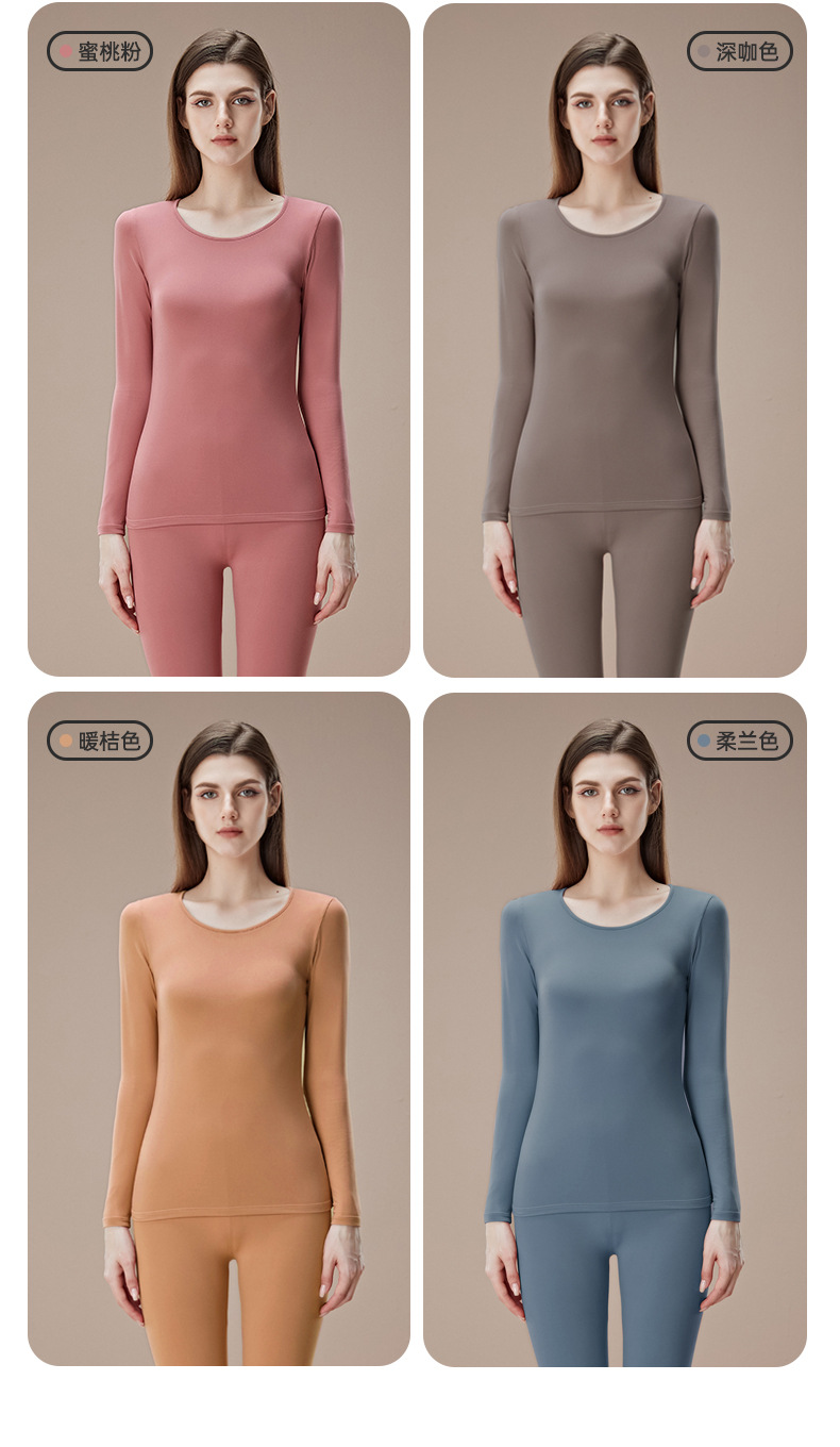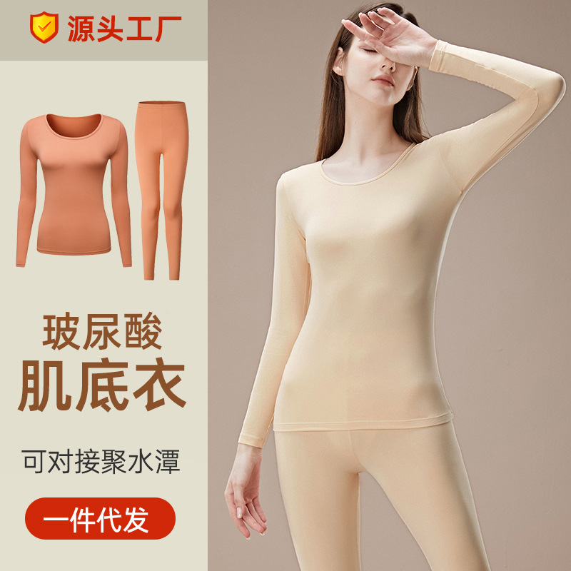 피부 미화 의류 샌딩 베이스 열 속옷 여성의 몸을 아름답게하는 가을 옷과 바지 얇은 세트 원활한 우유 벨벳 둥근 목