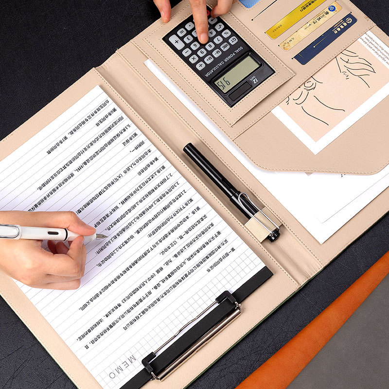A4 가죽 폴더 맞춤형 비즈니스 다기능 4s 판매 관리자는 계산기 보드 클립이 있는 단일 볼륨 룸 폴더에 대해 이야기합니다.