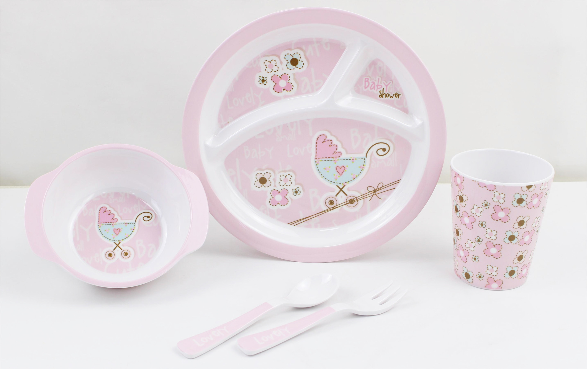 亚马逊热销创意卡通萌趣儿童辅食餐具密胺美耐皿婴儿五件套套装