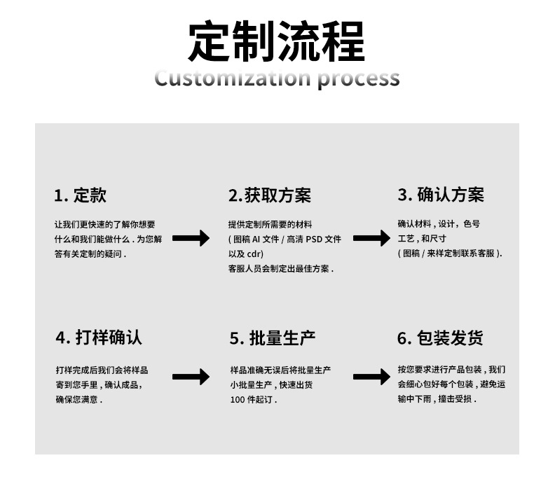 • 库存预警机制,爆款货源不断货,支持大批量现货代发。