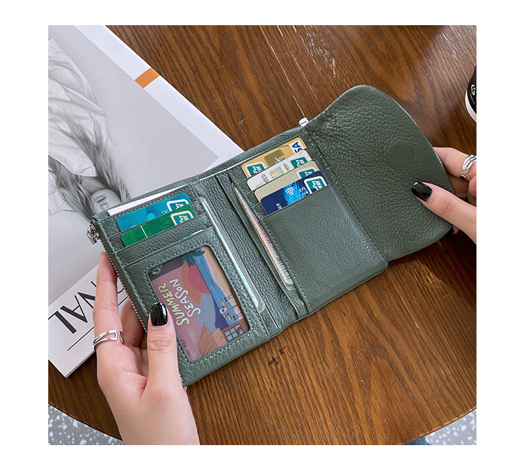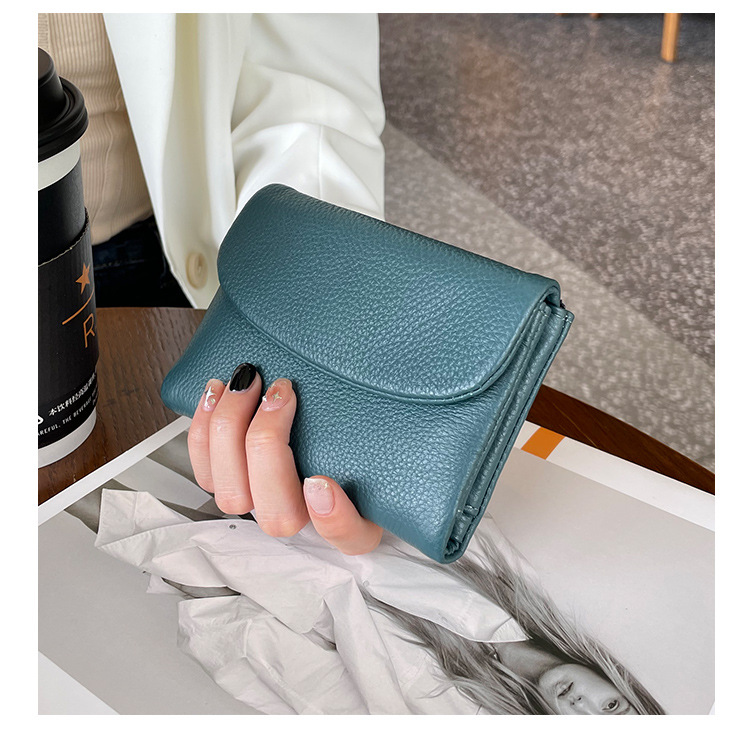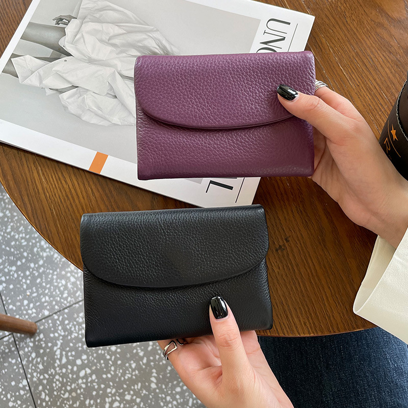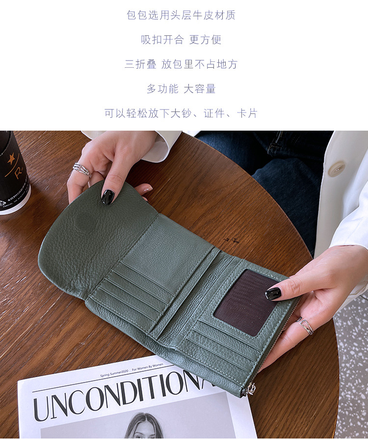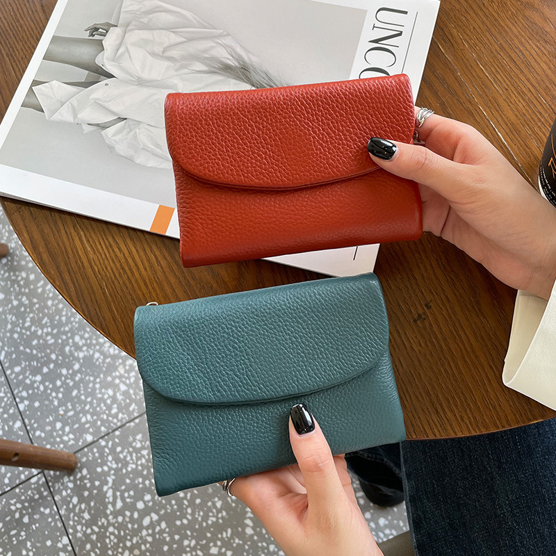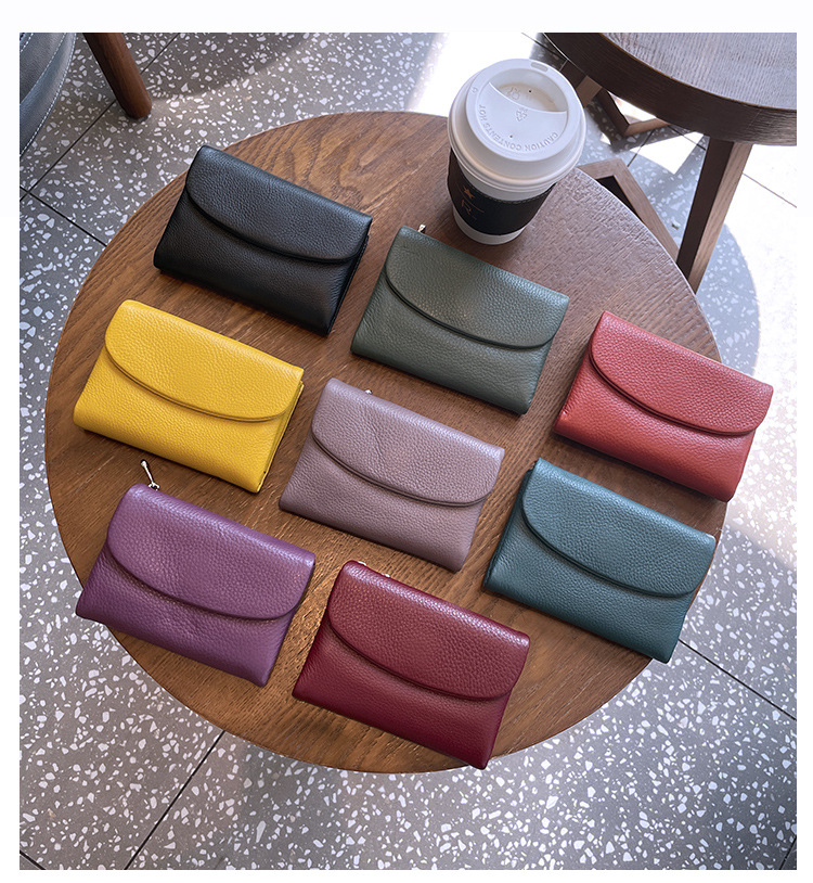 새로운 가죽 지갑 여성용 짧은 접이식 탑 레이어 가죽 지갑 대용량 카드 가방 해외 무역 국경 도매