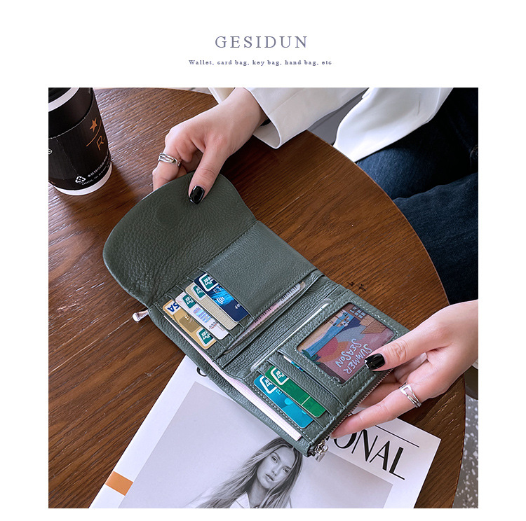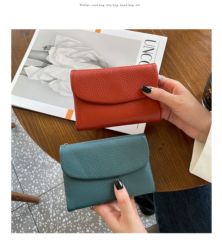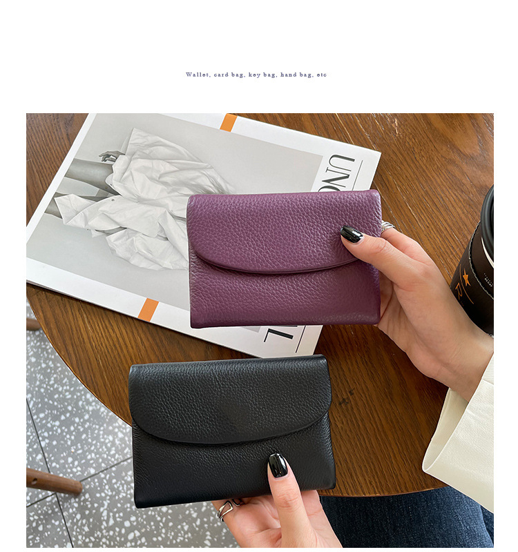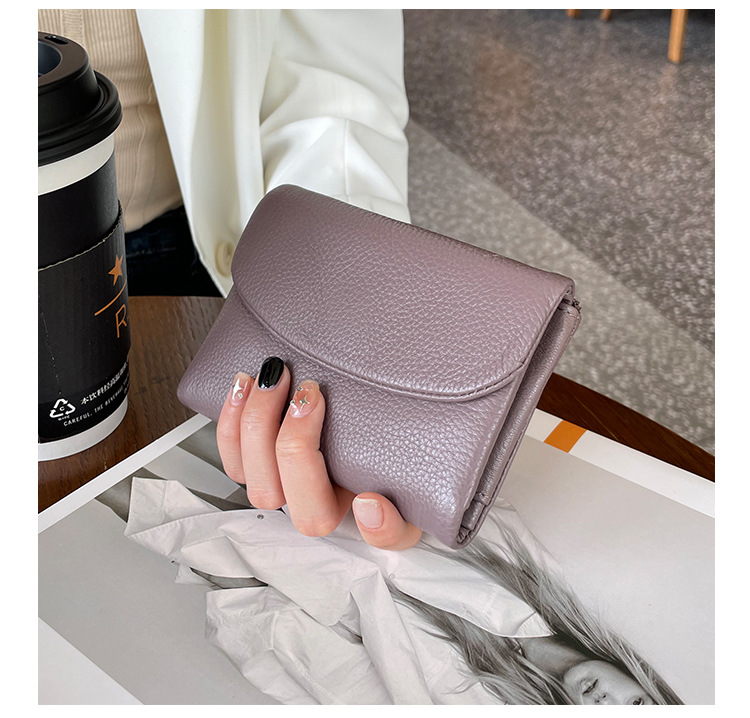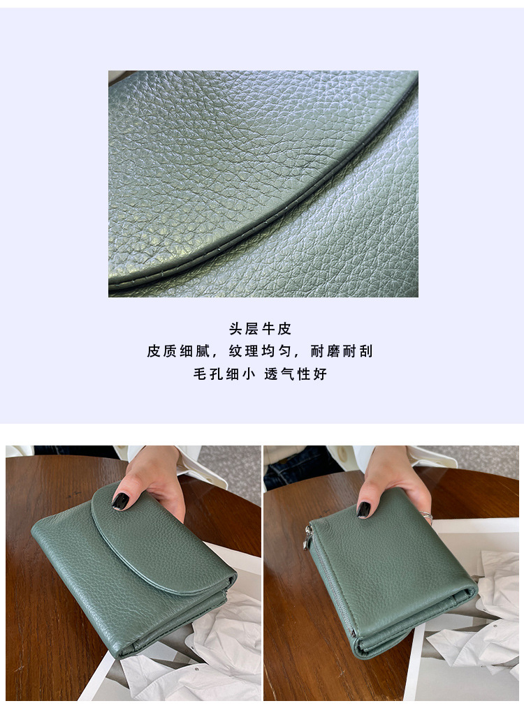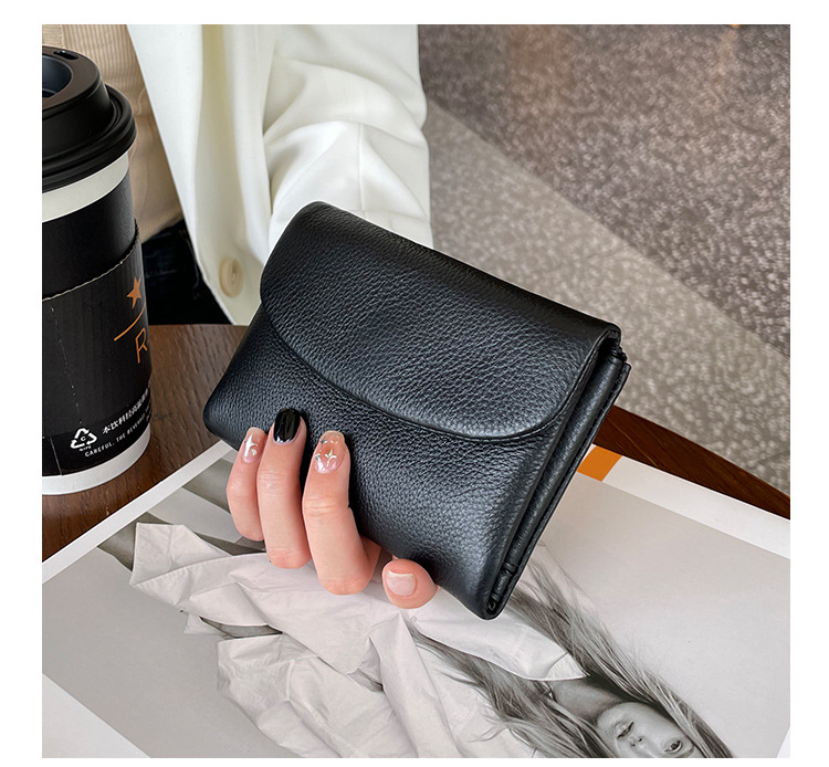 새로운 가죽 지갑 여성용 짧은 접이식 탑 레이어 가죽 지갑 대용량 카드 가방 해외 무역 국경 도매