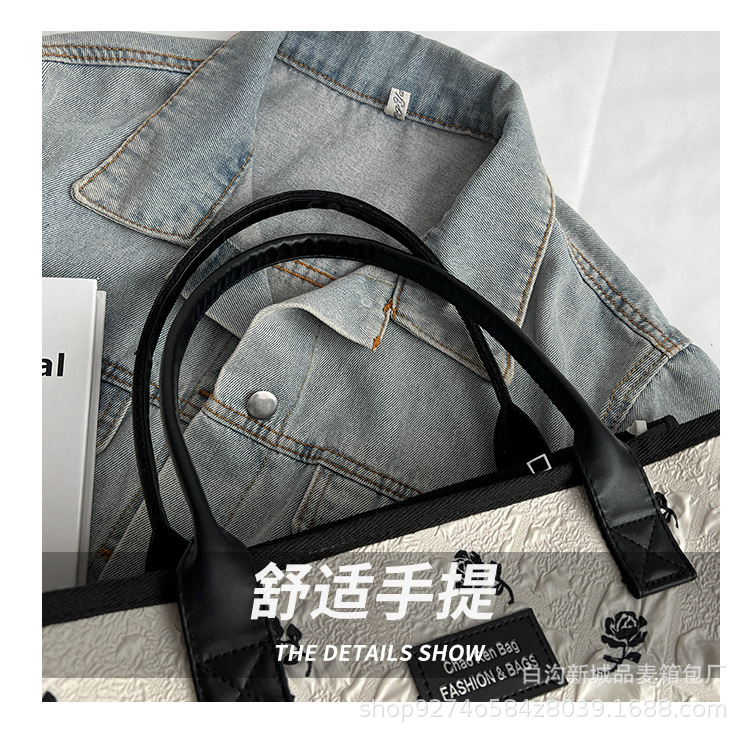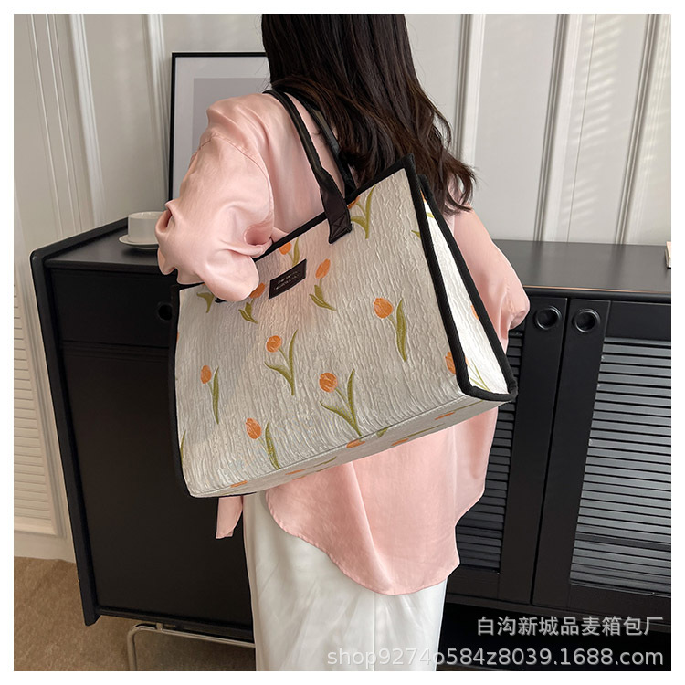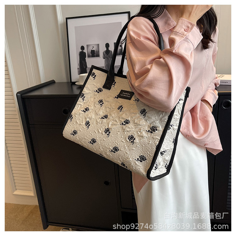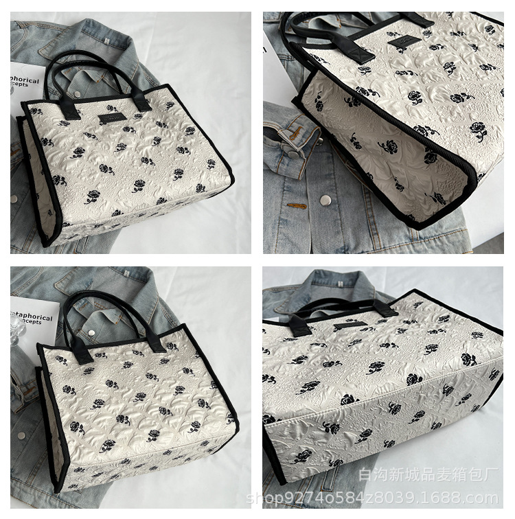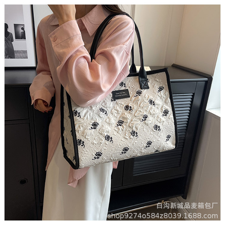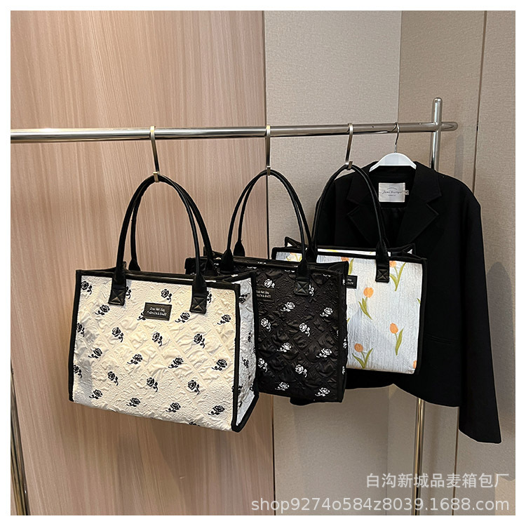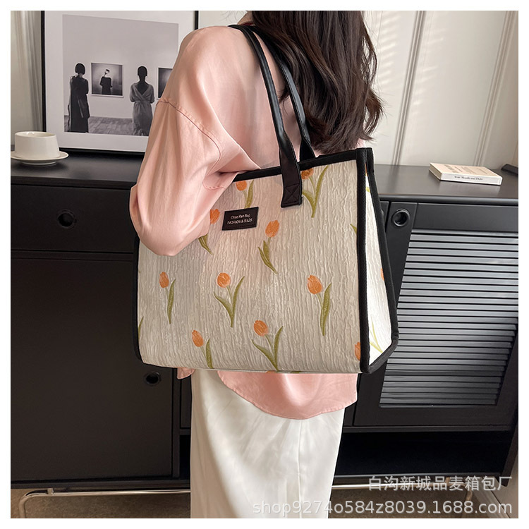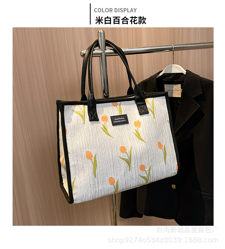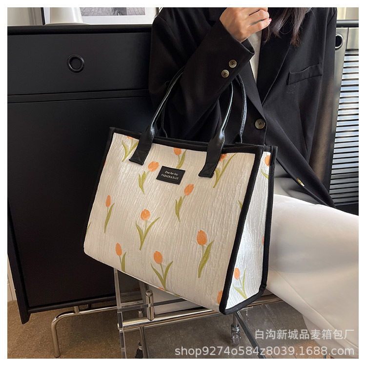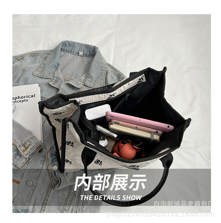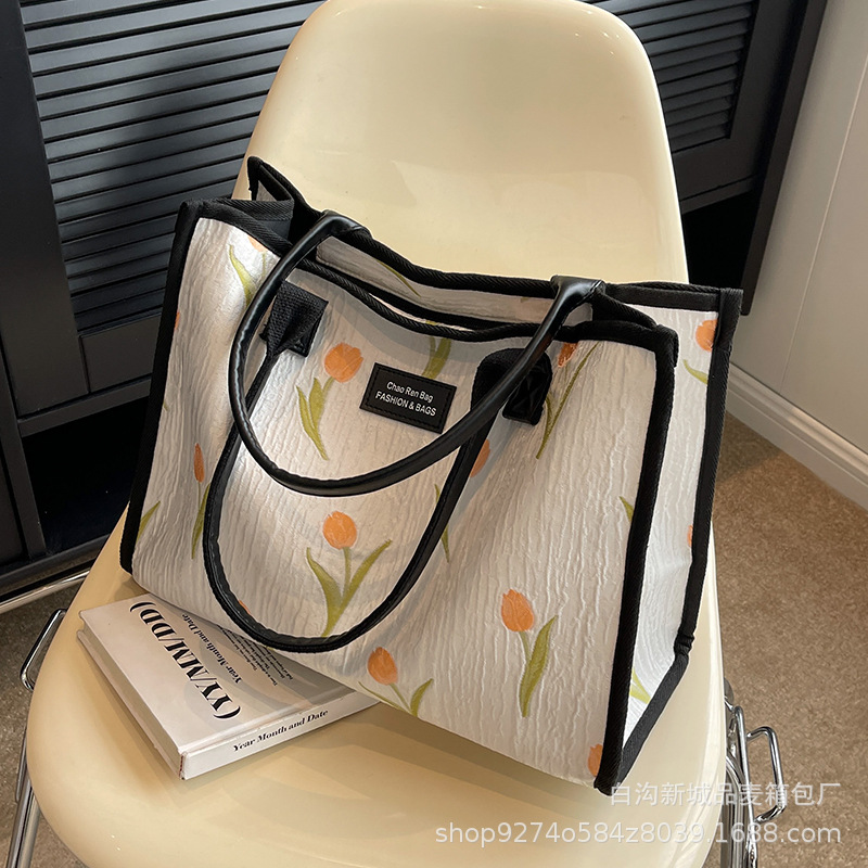 한국 스타일 여성용 가방 2024 여름 신작 패션 프린트 겨드랑이 가방 대용량 캐주얼 토트 캔버스 가방