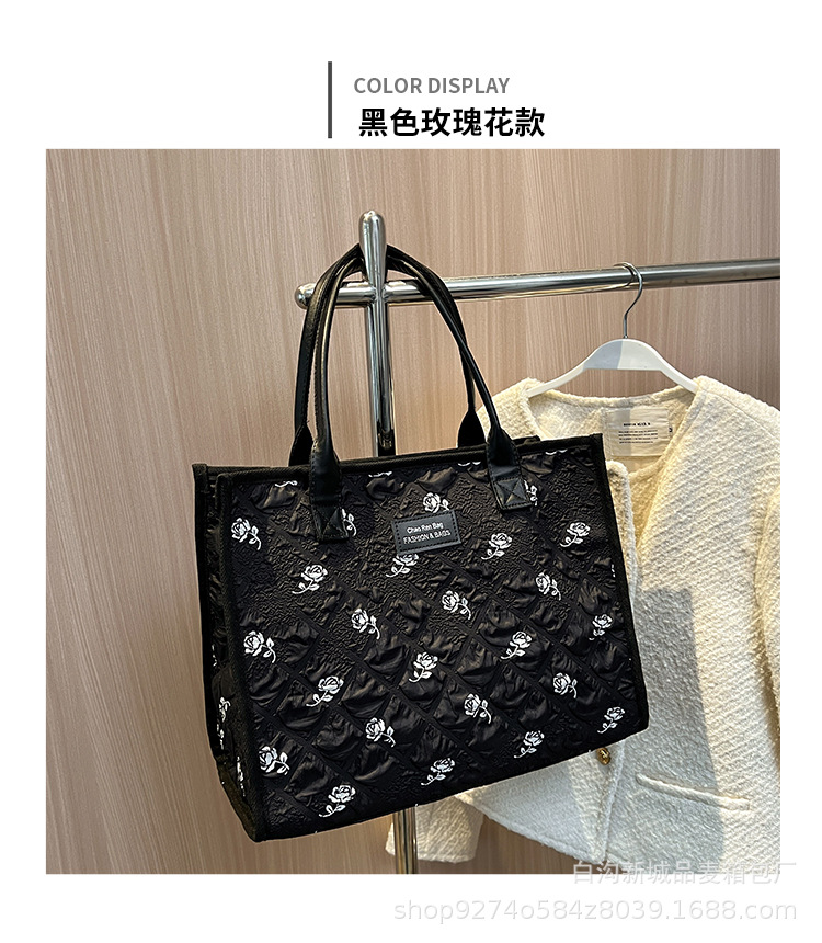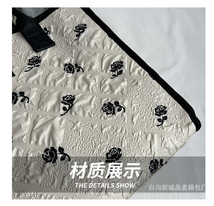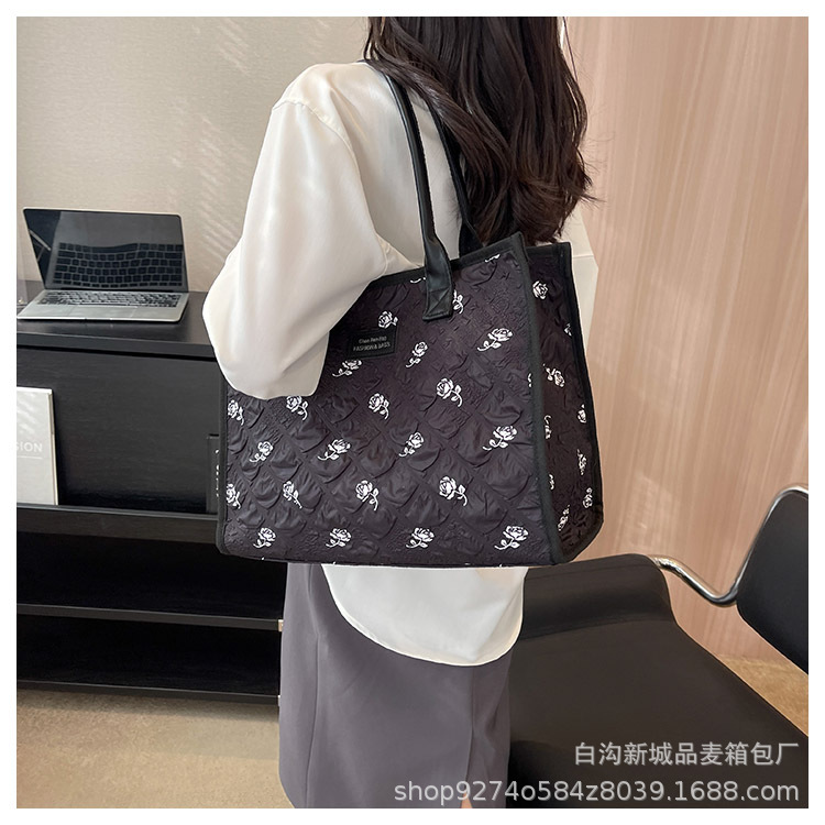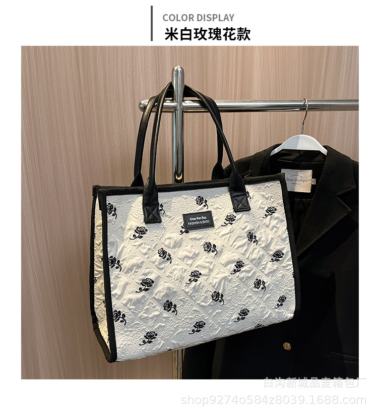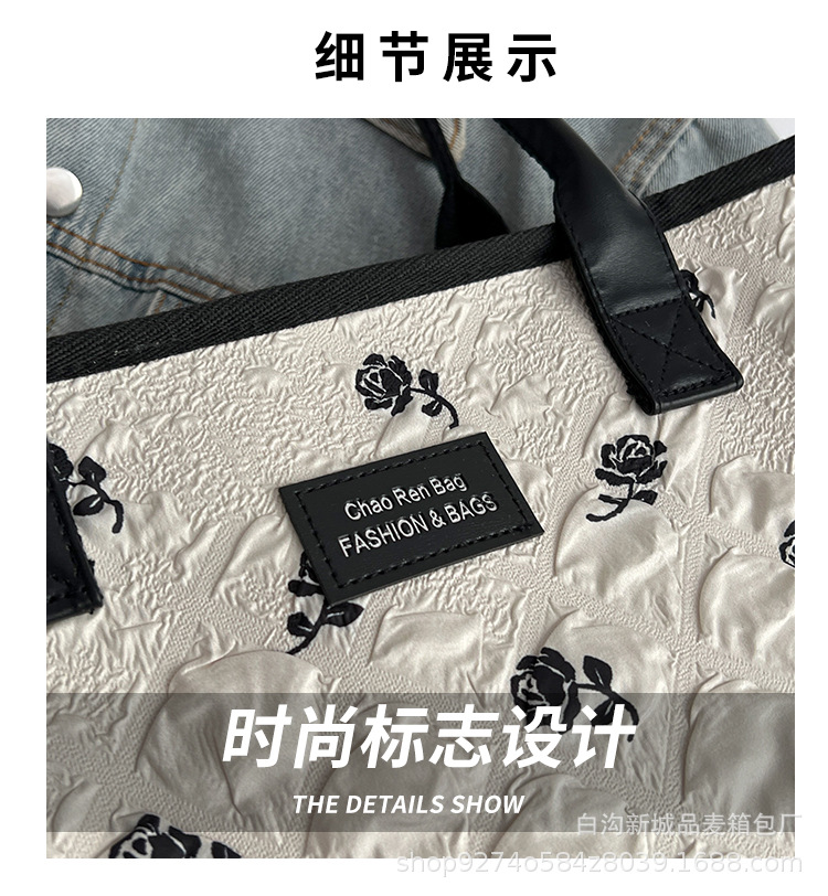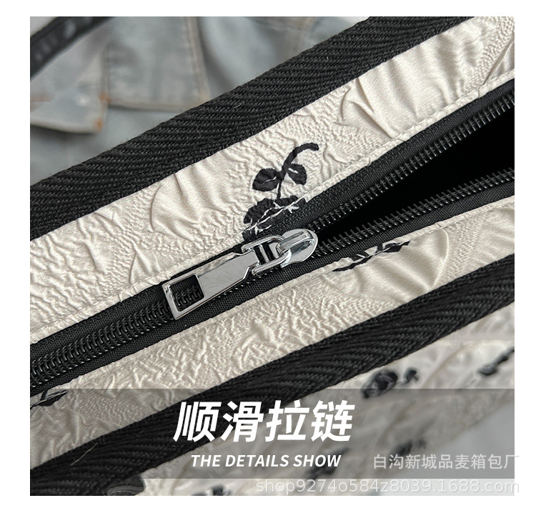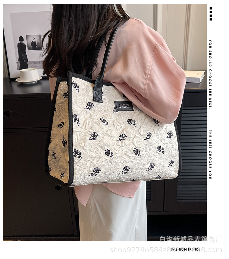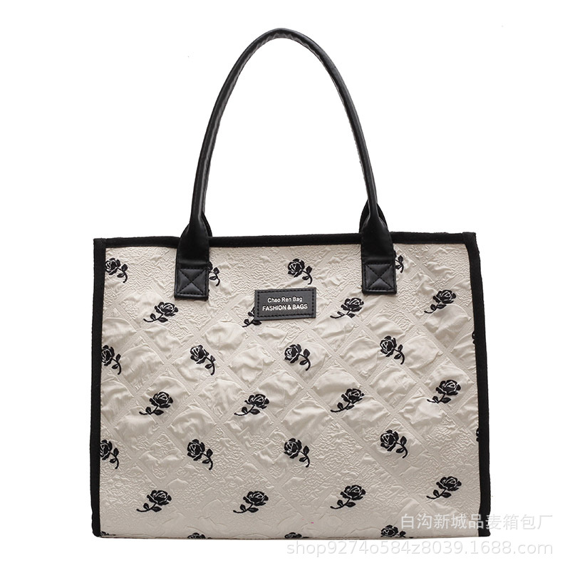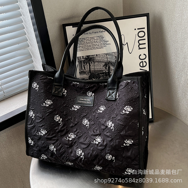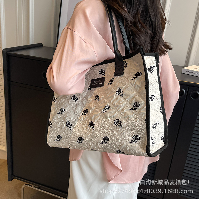 한국 스타일 여성용 가방 2024 여름 신작 패션 프린트 겨드랑이 가방 대용량 캐주얼 토트 캔버스 가방