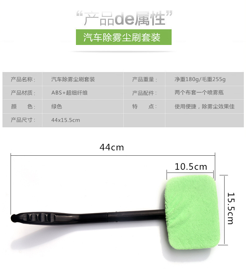 【产品配置】:可折叠玻璃刷*1+绿色超细纤维吸水布套*2+喷雾瓶*1