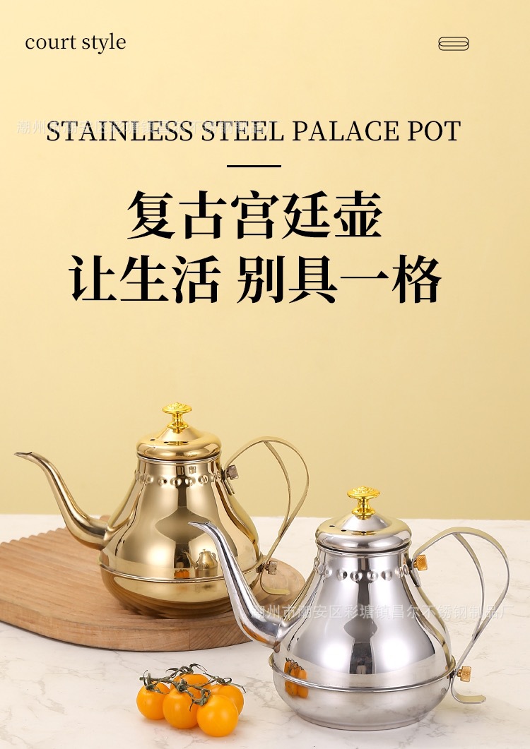 스트레이너가있는 스테인레스 스틸 주전자 빈티지 팰리스 포트 인덕션 쿠커 주전자 핸드 커피 포트 테파냐키 오일 포트