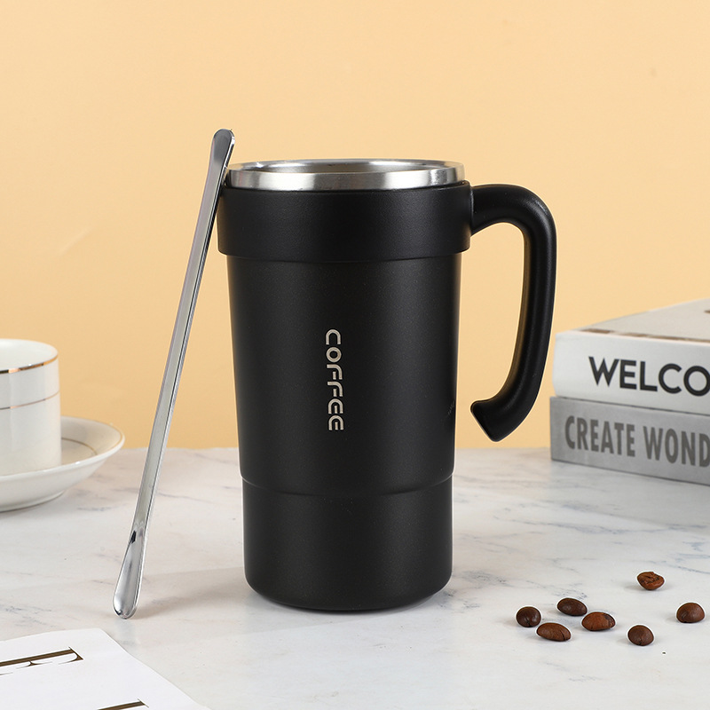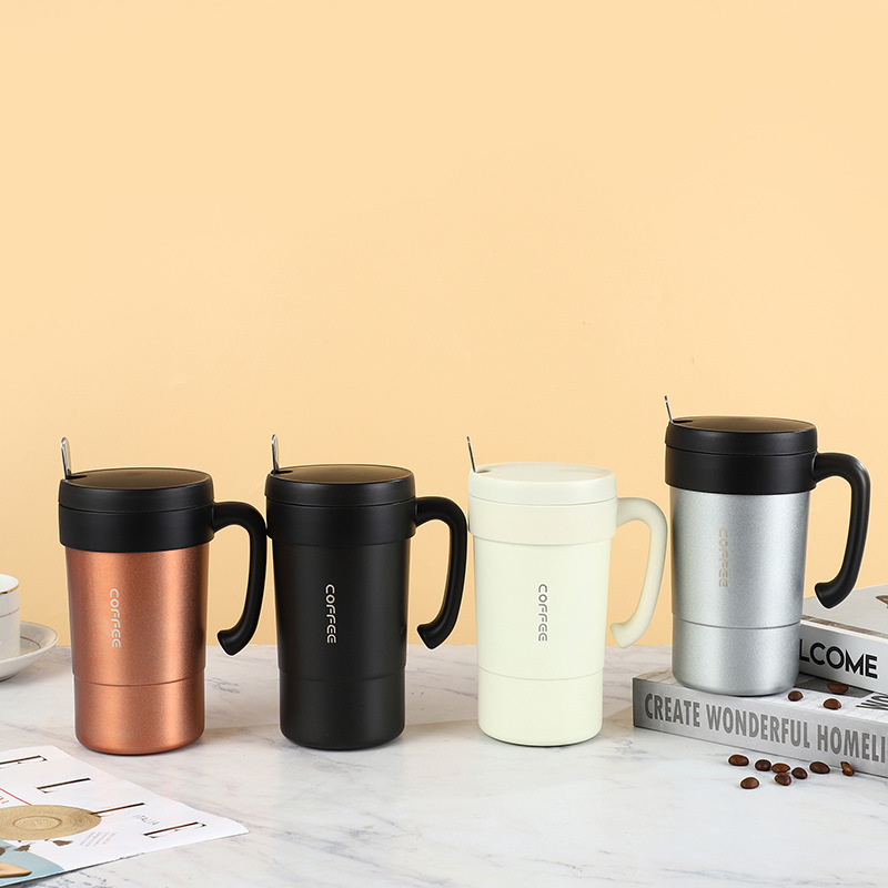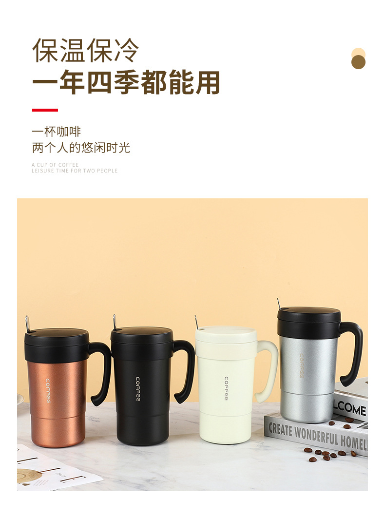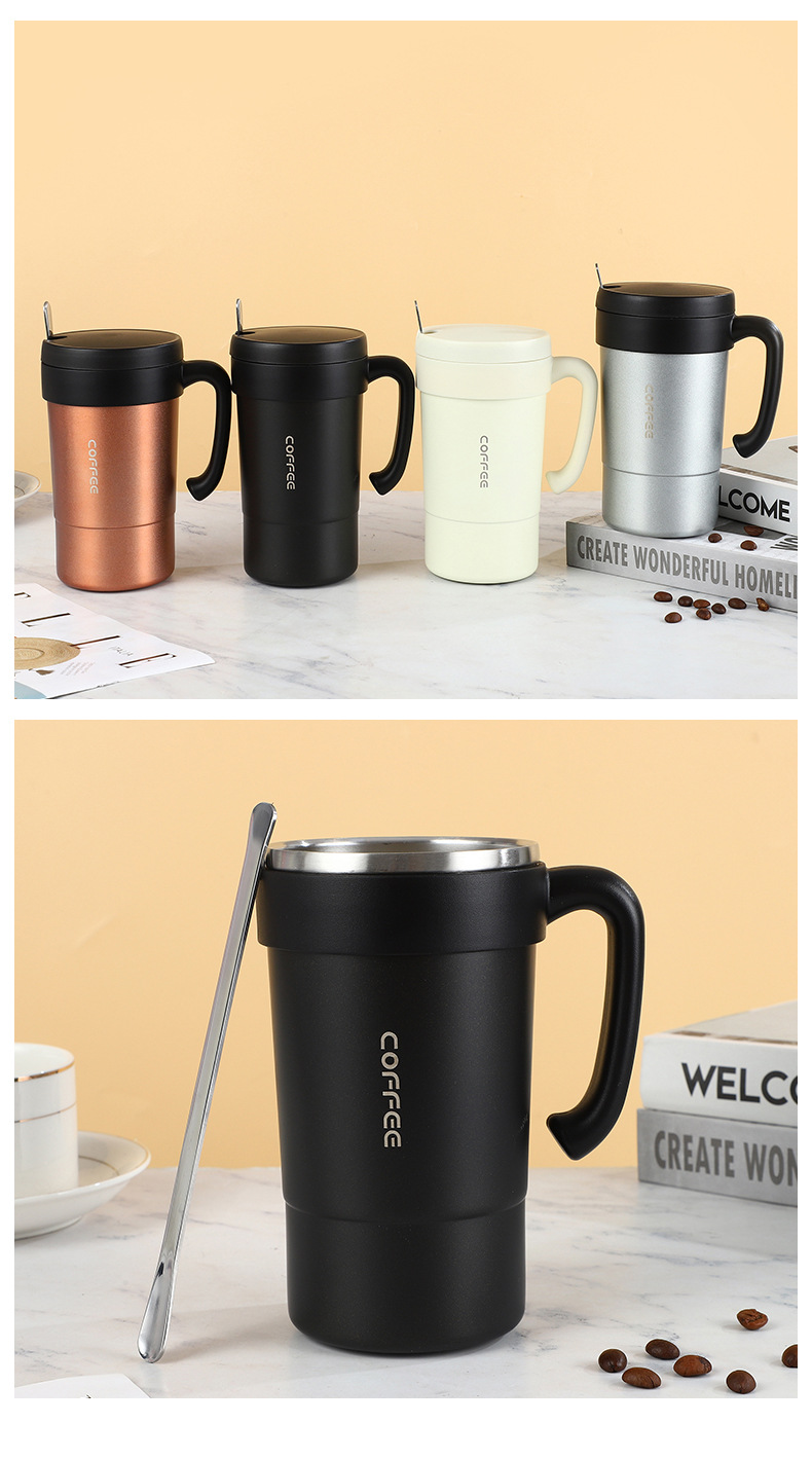 믹싱 스푼 핸들이있는 커피 컵 304 스테인레스 스틸 보온병 컵 가정용 휴대용 머그 비즈니스 사무실 물 컵