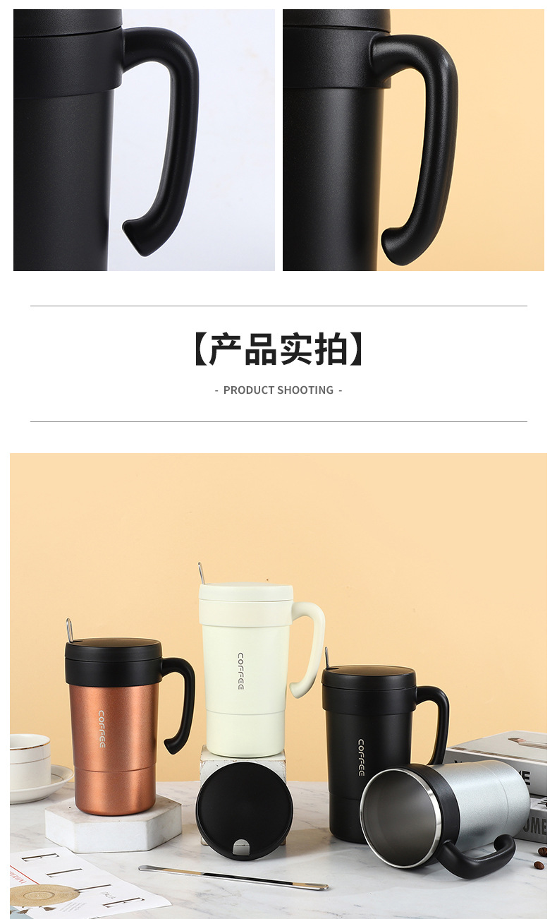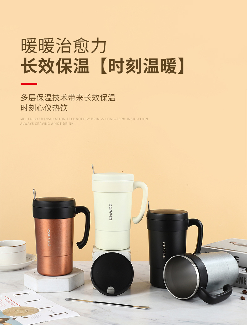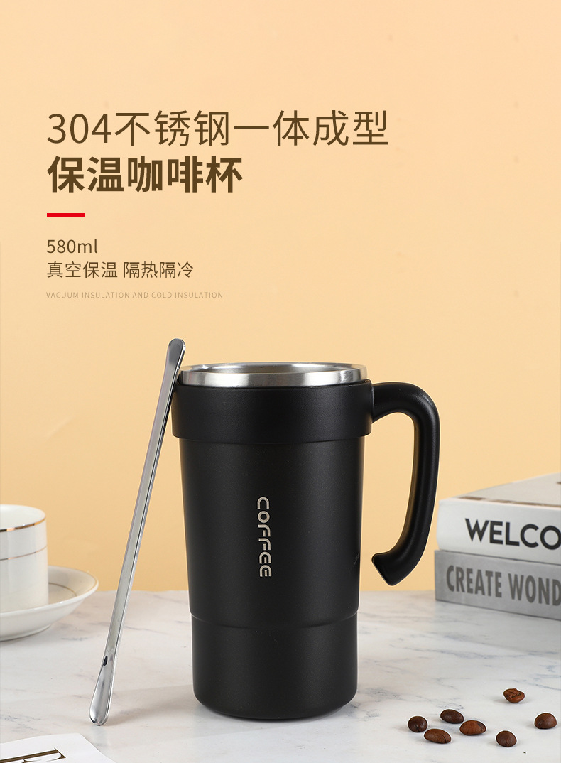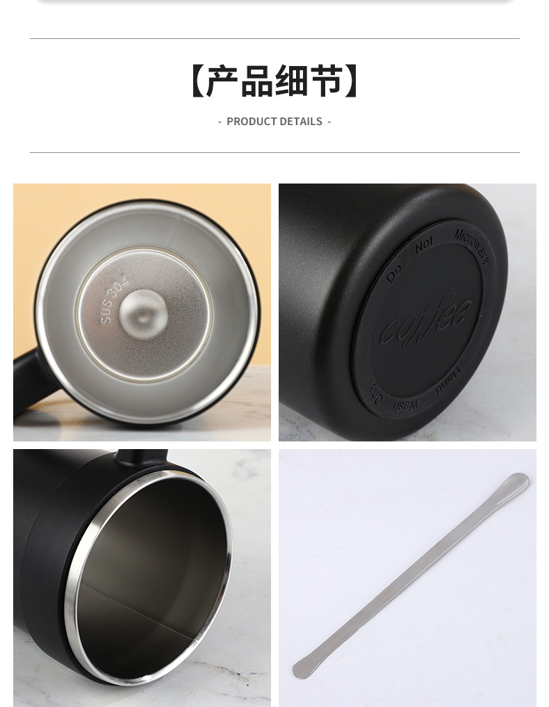 믹싱 스푼 핸들이있는 커피 컵 304 스테인레스 스틸 보온병 컵 가정용 휴대용 머그 비즈니스 사무실 물 컵