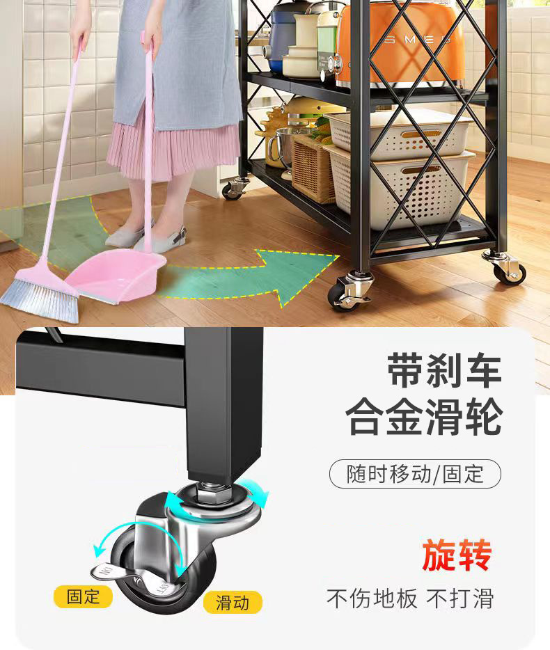 설치 무료 접이식 모바일 멀티 레이어 선반 회전 스토리지 랙 주방 스토리지 랙 침실 및 거실을위한 바닥 스토리지 랙