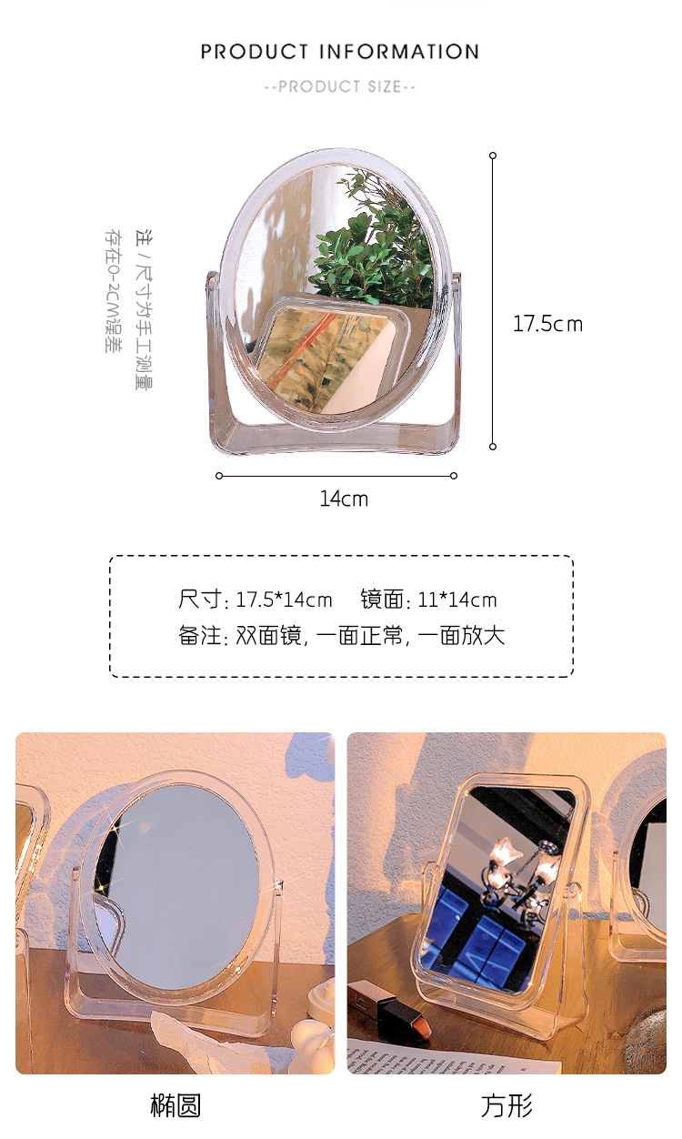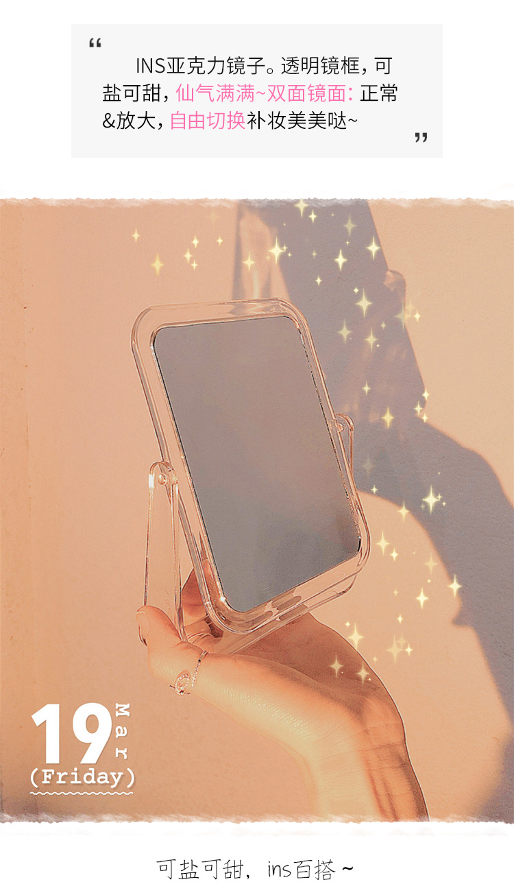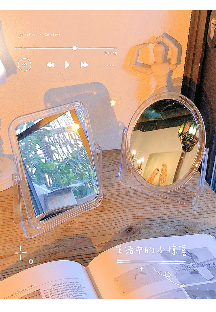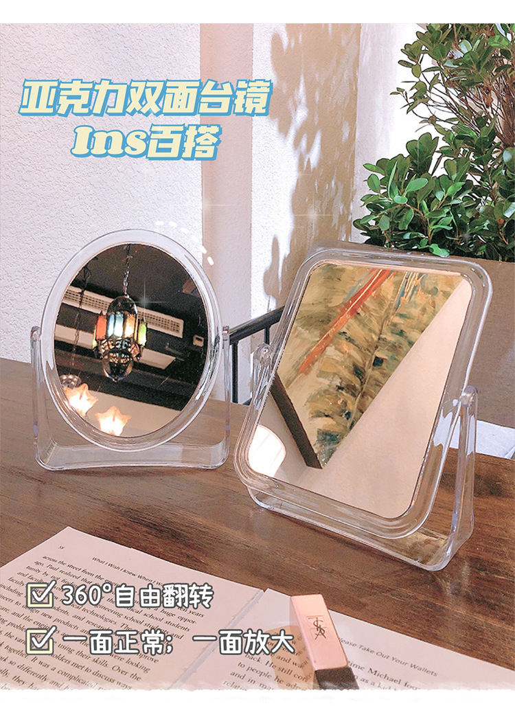 투명 뒤집을 수있는 거울 사진 메이크업 거울 창조적 인 장식품 데스크탑 양면 데스크탑 드레싱 거울 도매