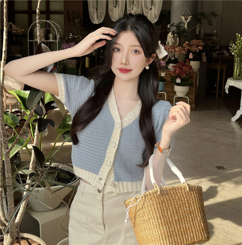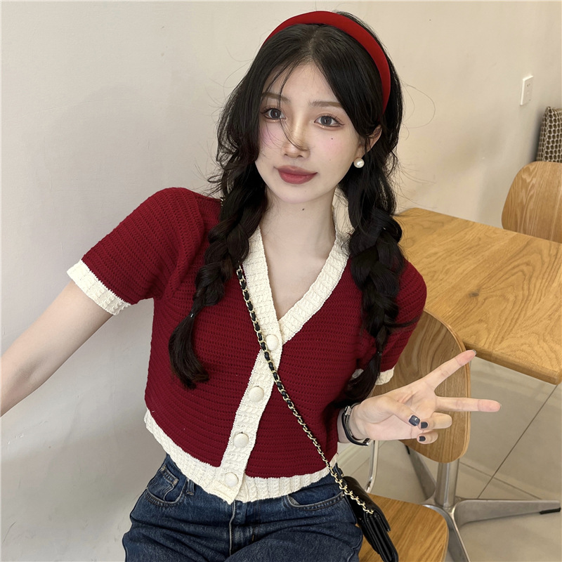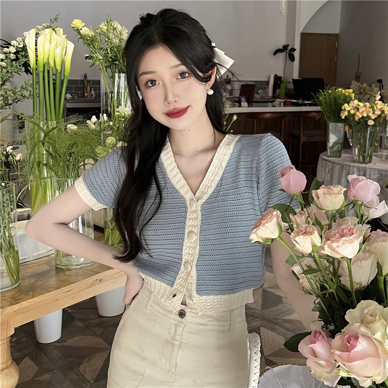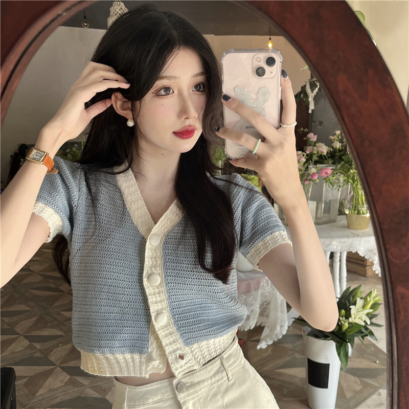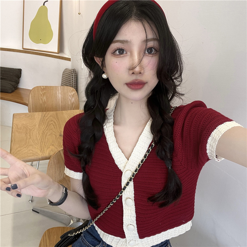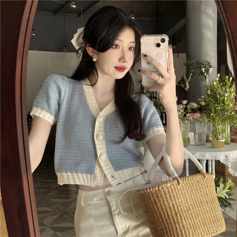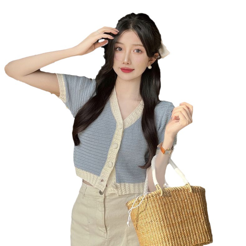 프렌치 스위트 샤넬 스타일 반팔 스웨터 여성용 여름 코트 카디건 틈새 젠틀 한국 쇼트 탑