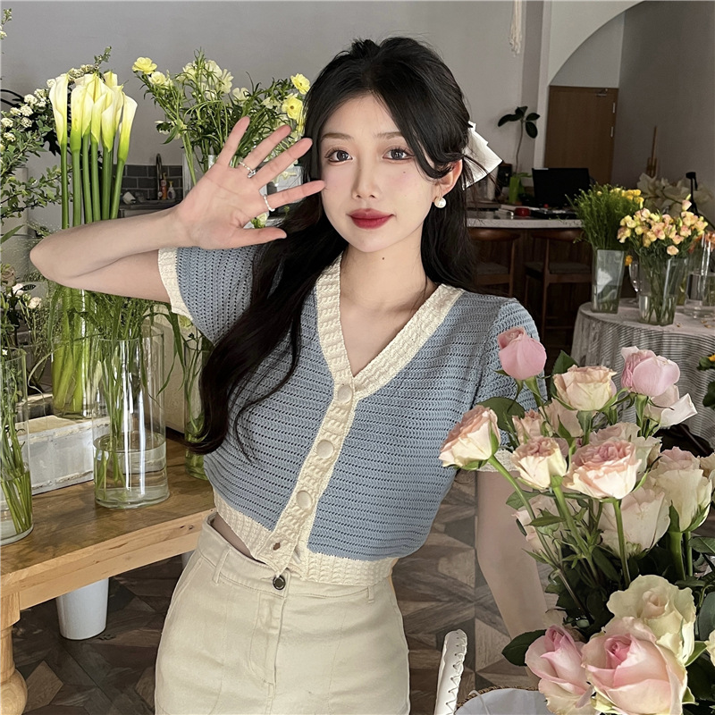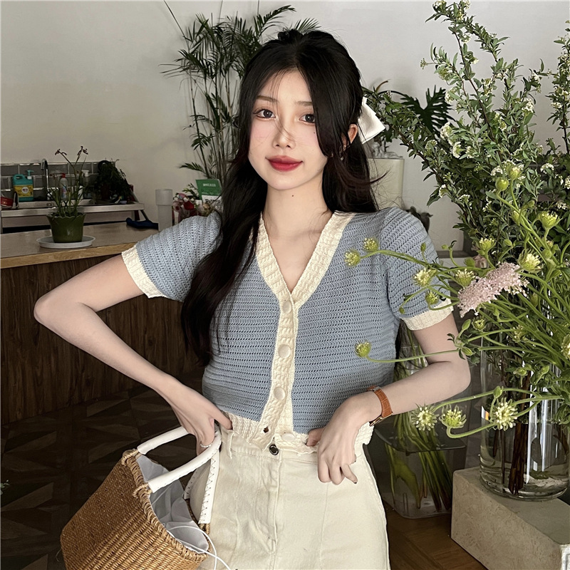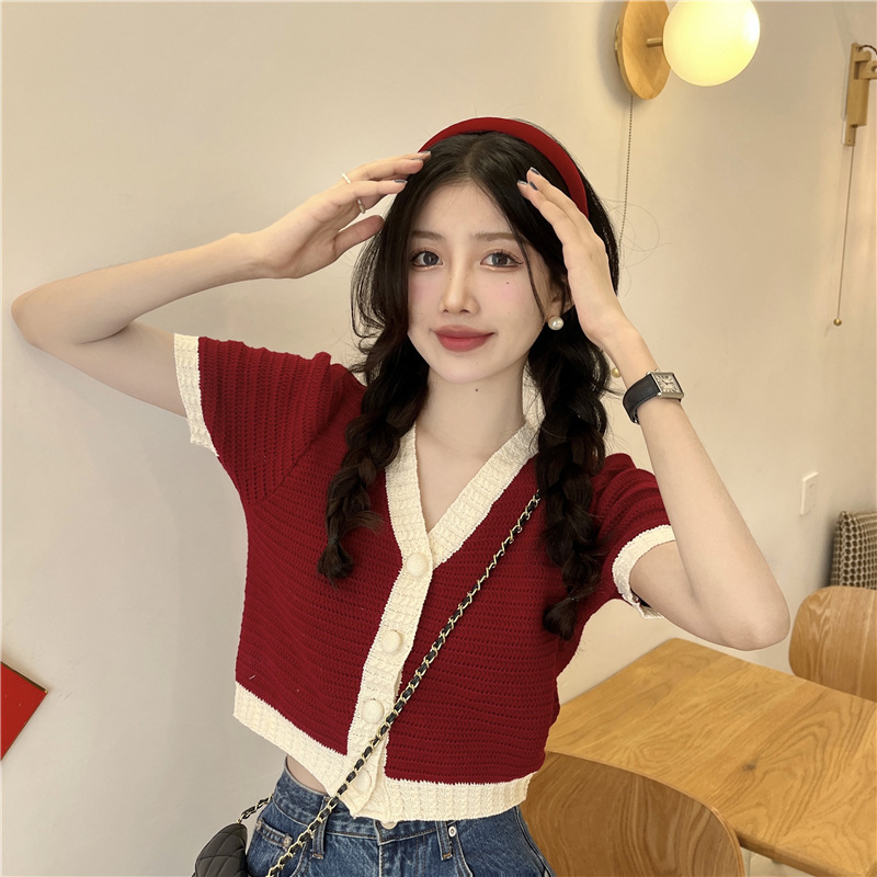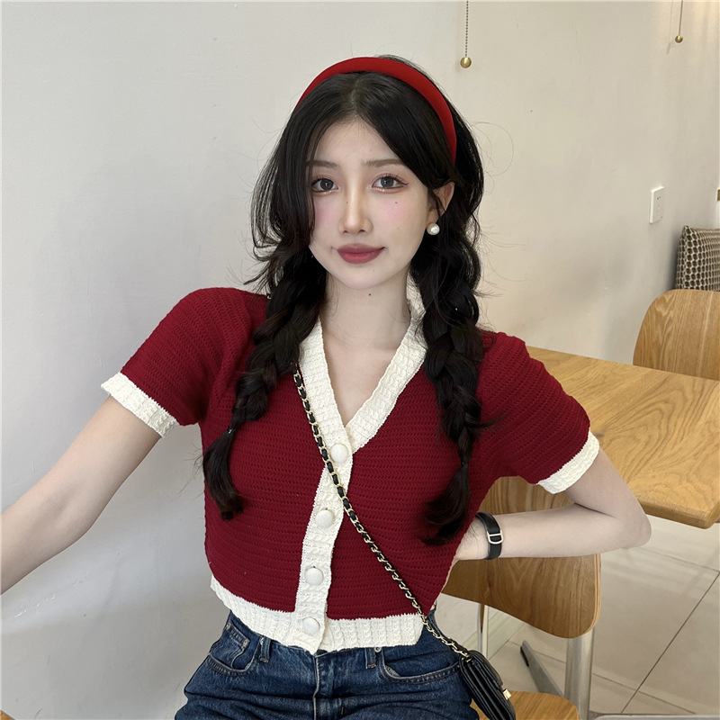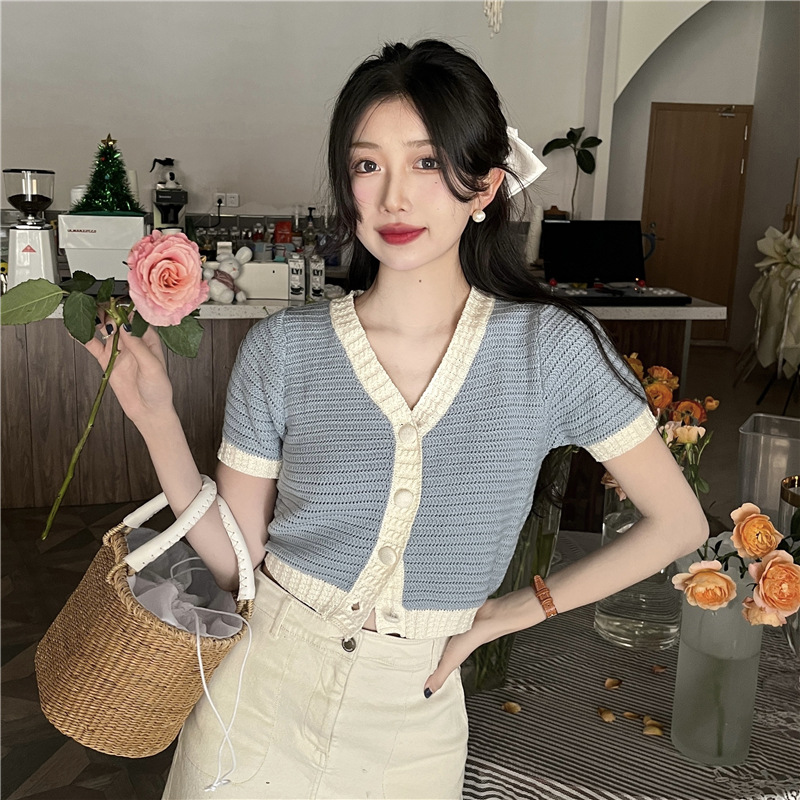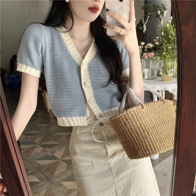 프렌치 스위트 샤넬 스타일 반팔 스웨터 여성용 여름 코트 카디건 틈새 젠틀 한국 쇼트 탑