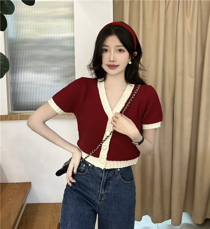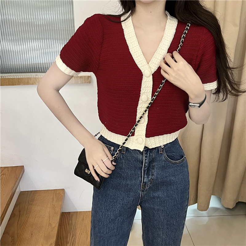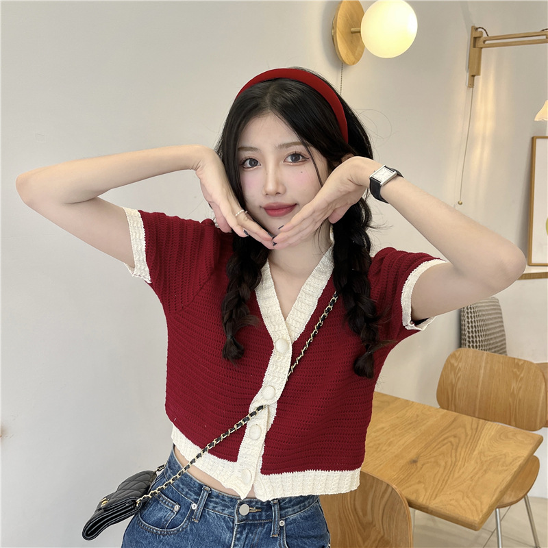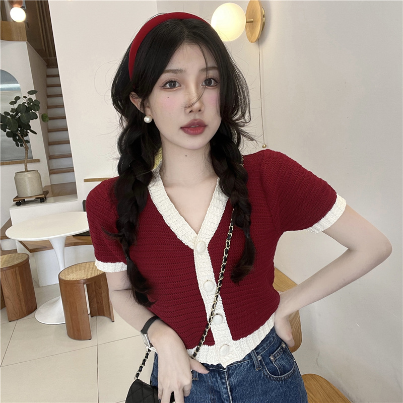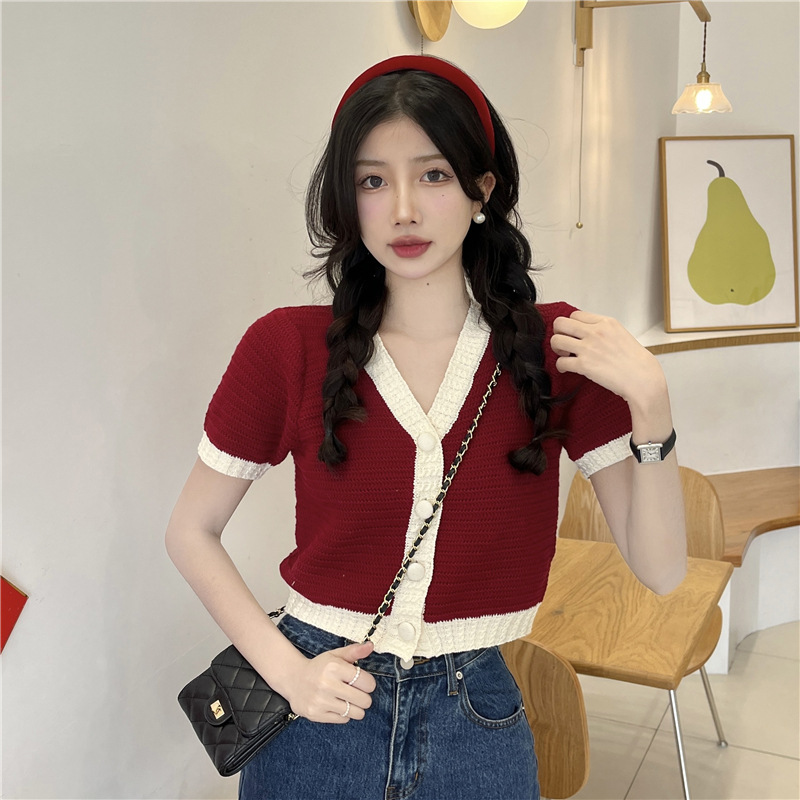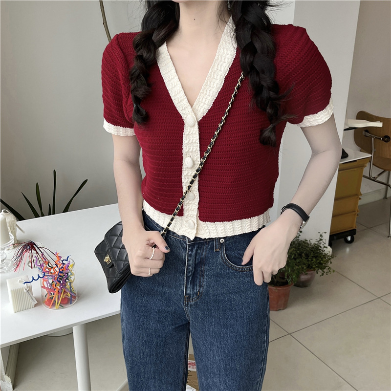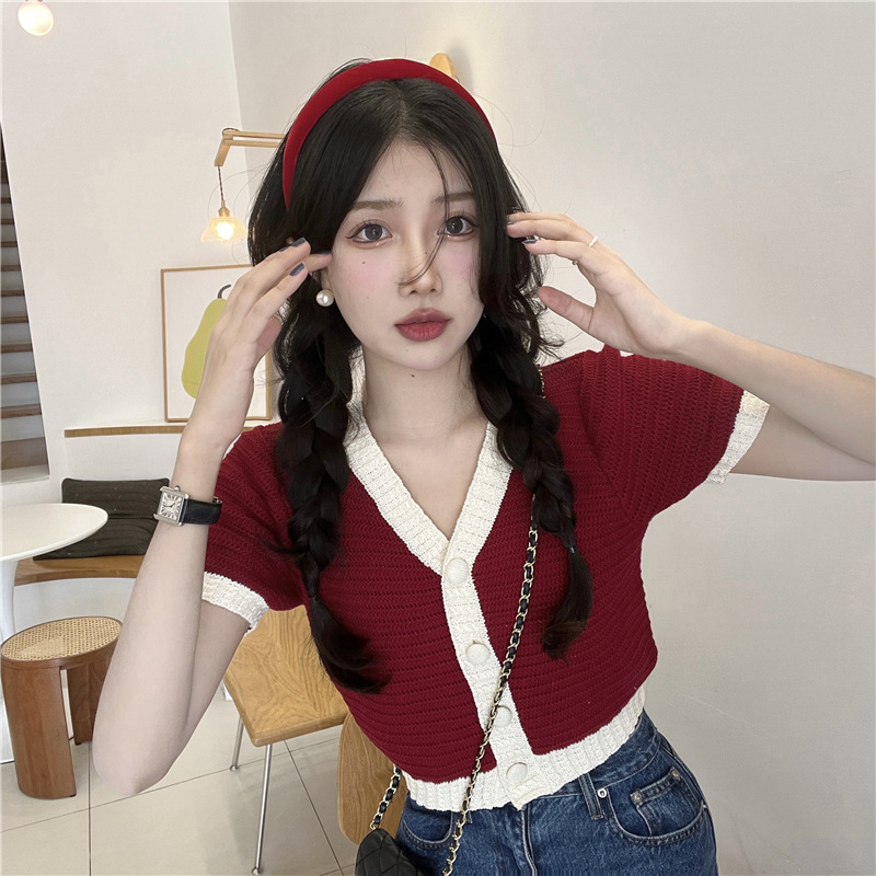 프렌치 스위트 샤넬 스타일 반팔 스웨터 여성용 여름 코트 카디건 틈새 젠틀 한국 쇼트 탑