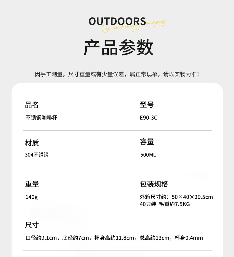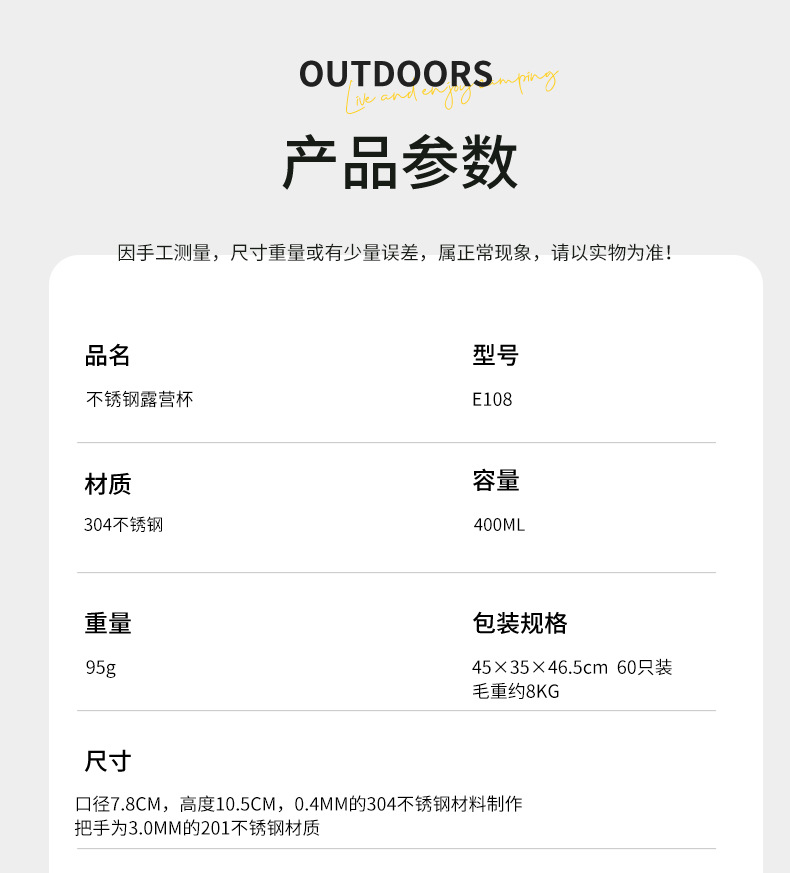 야외 화상 방지 캠핑 컵 304 스테인레스 스틸 물 컵 휴대용 고온 커피 컵 캠핑 장비 맥주 컵