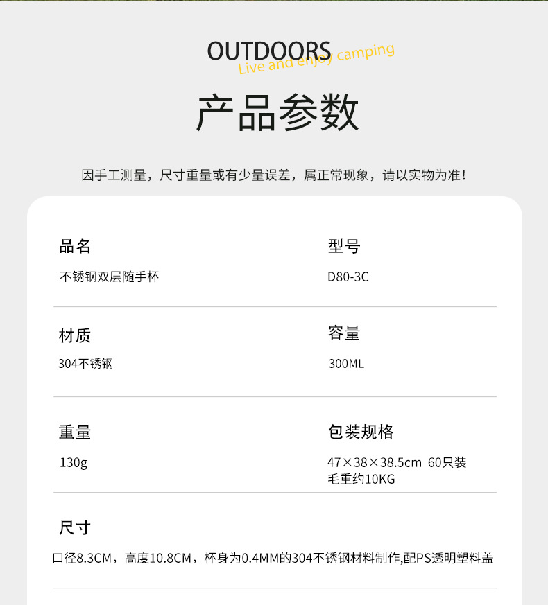 D80-3C 오리지널 컬러 300ml (더블 레이어 캠핑컵)