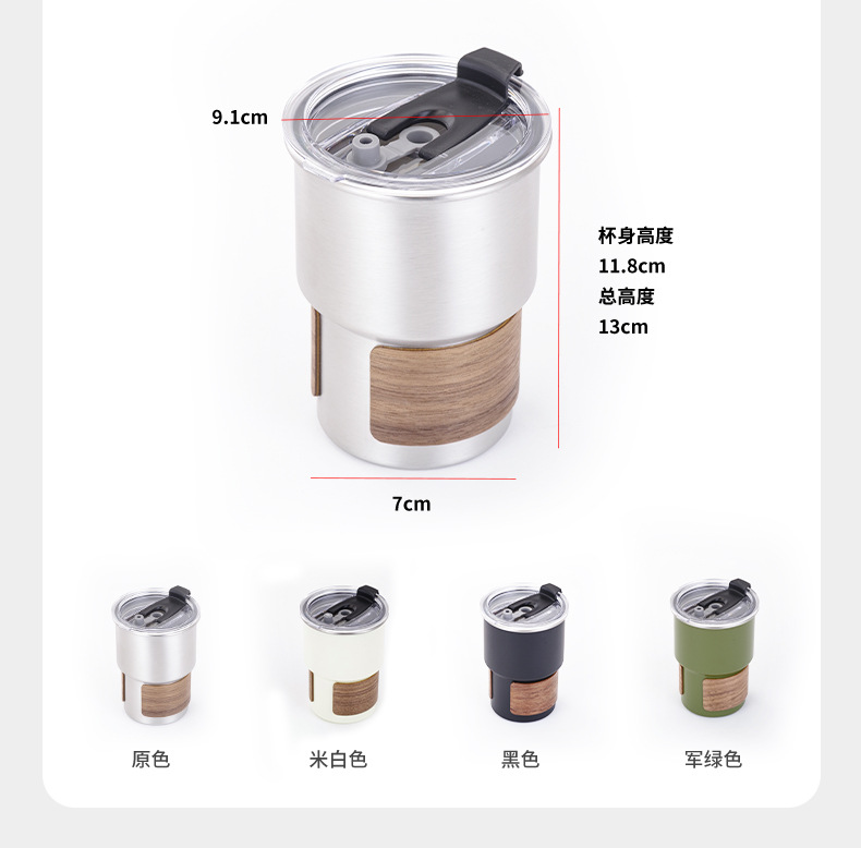 접이식 손잡이 물컵 레트로 컬러 300ml (뚜껑 및 호두나무 포함)