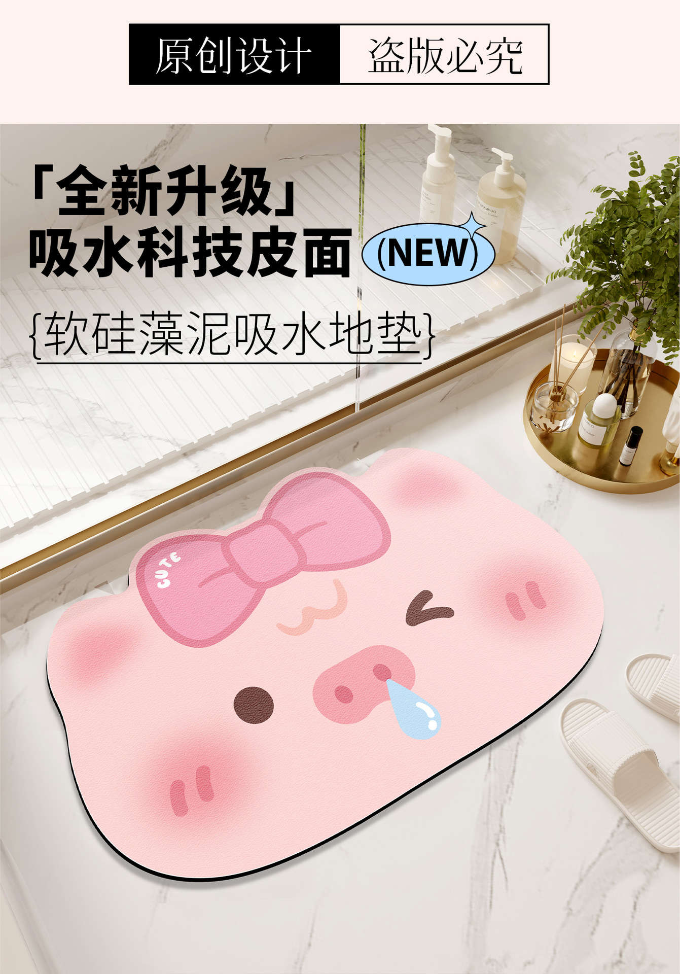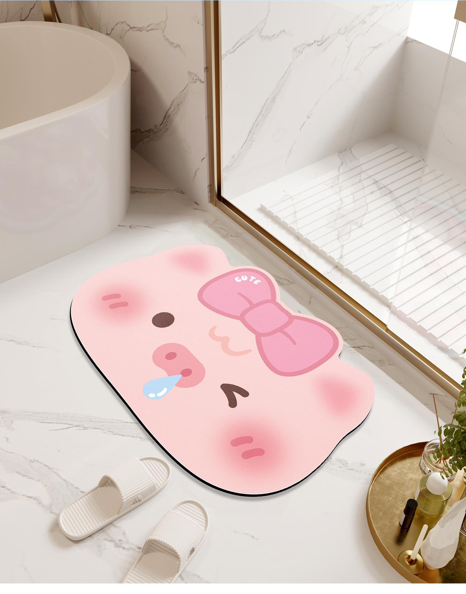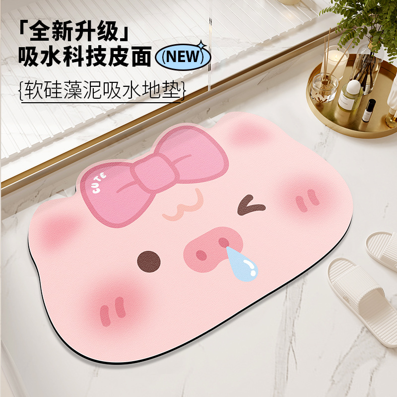 Nai Si 규조 진흙 흡수 매트 귀여운 만화 발 매트 화장실 문 미끄럼 방지 욕실 흡수 매트