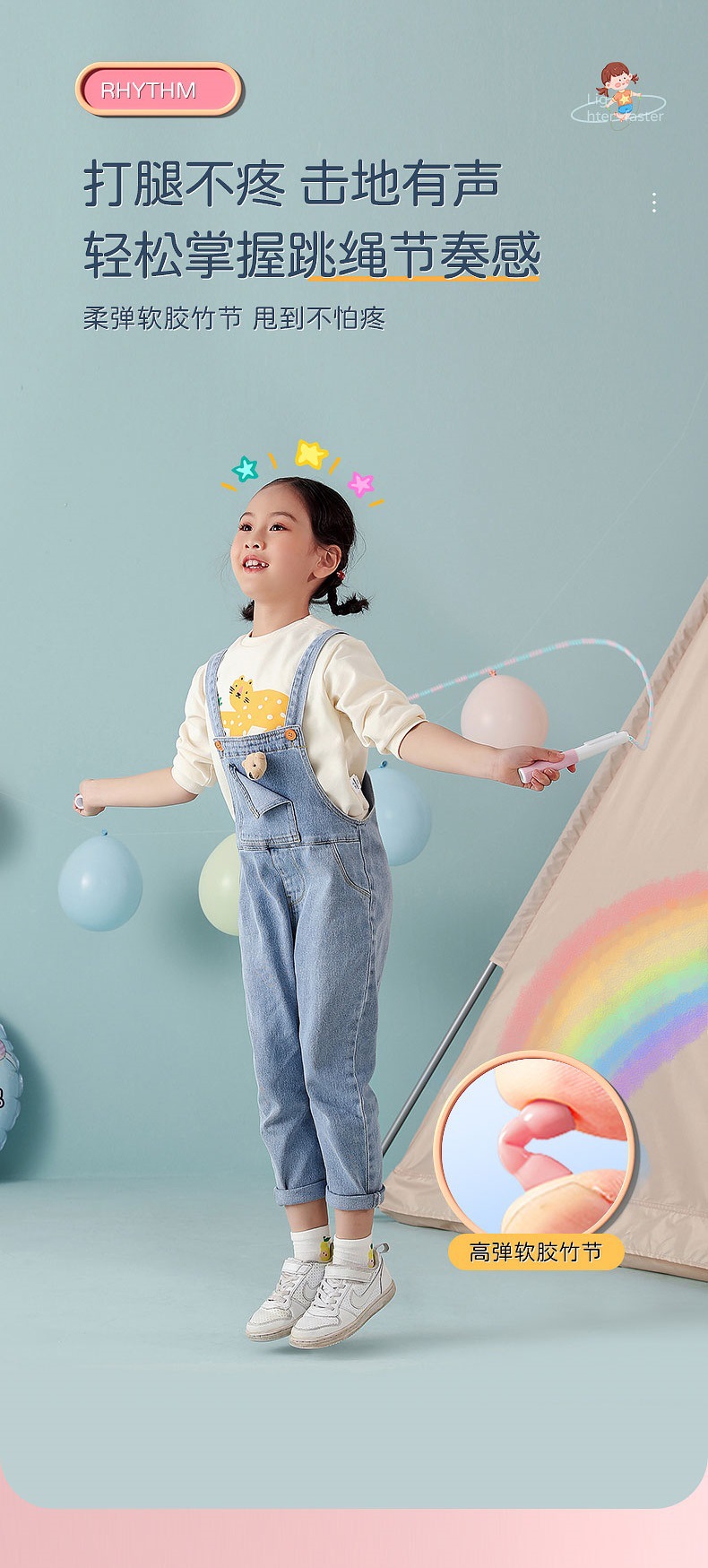 엄선된 대나무 줄넘기, 어린이 초등학생 1학년 입문용, 부드러운 구슬, 조절 가능, 체육용품, 카운팅 전용